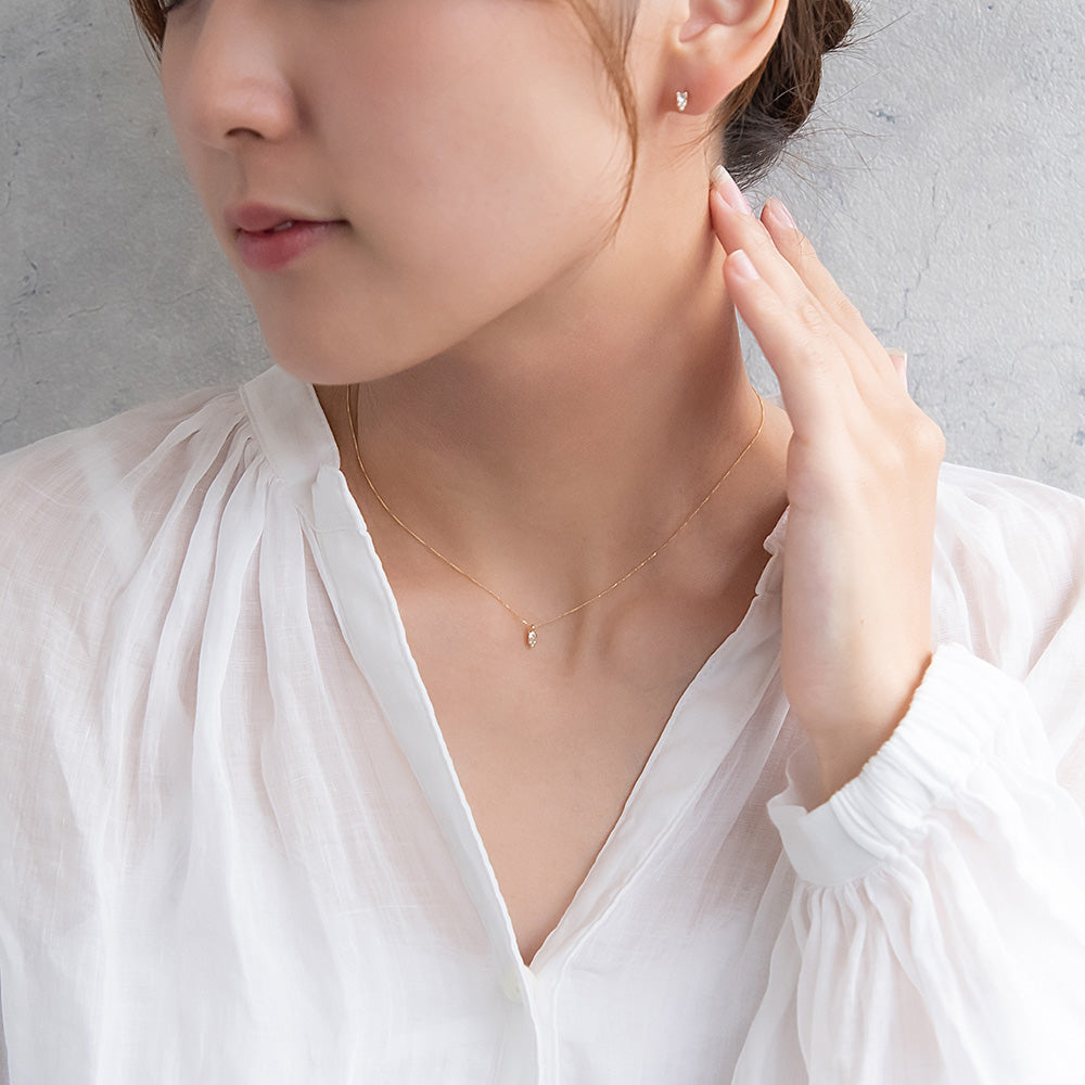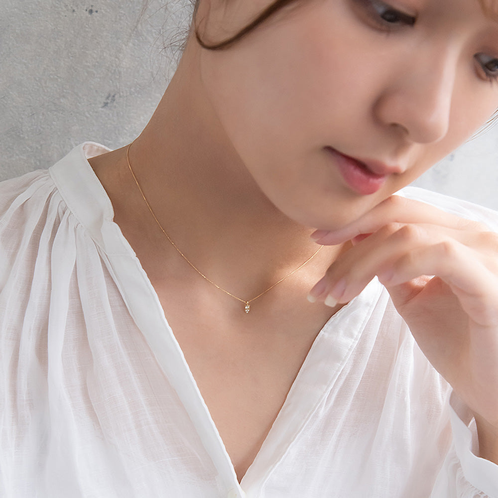 ネックレス tiny. ニッケルフリー メタル ストーン トリプル パール 小粒 超極細 チェーン プチネックレス