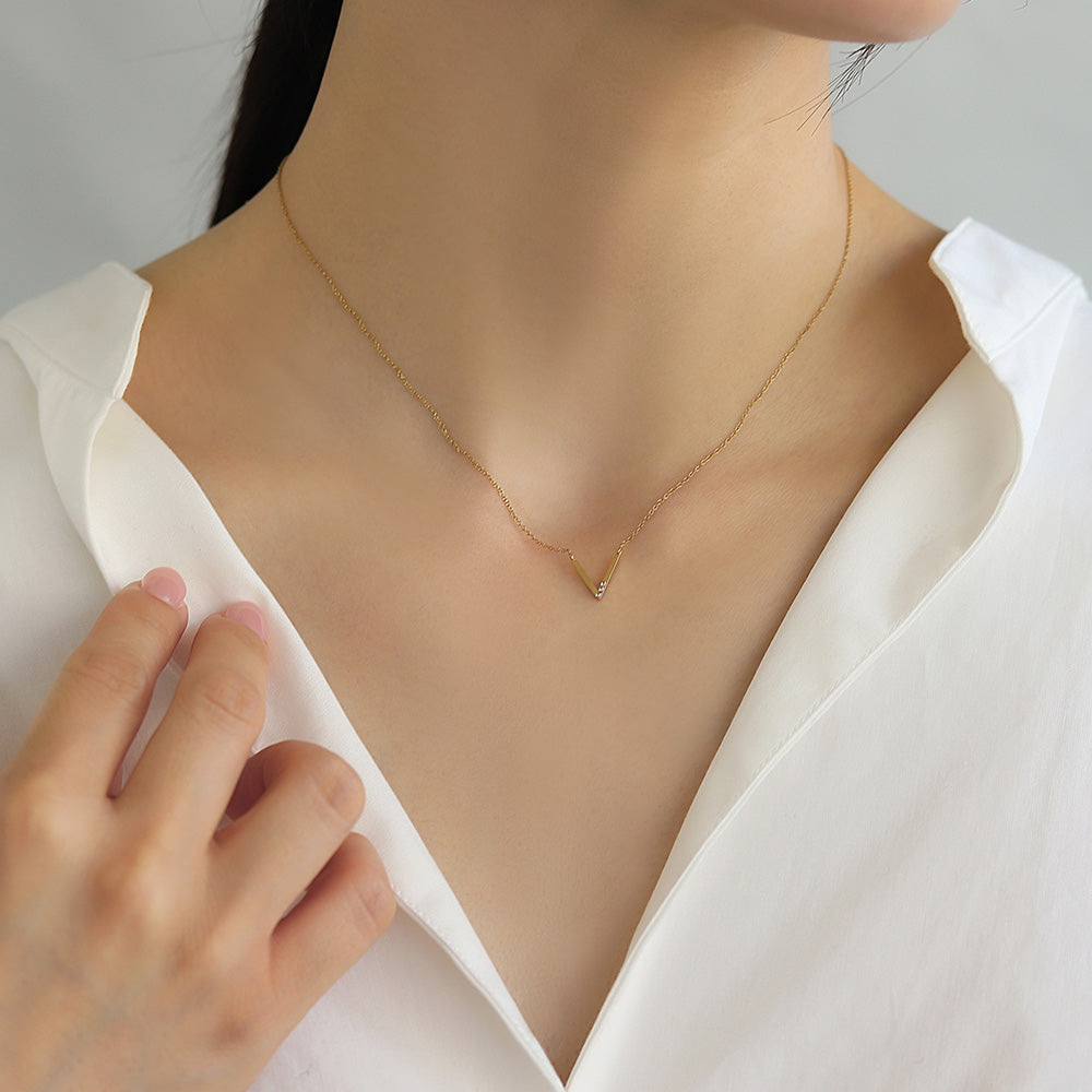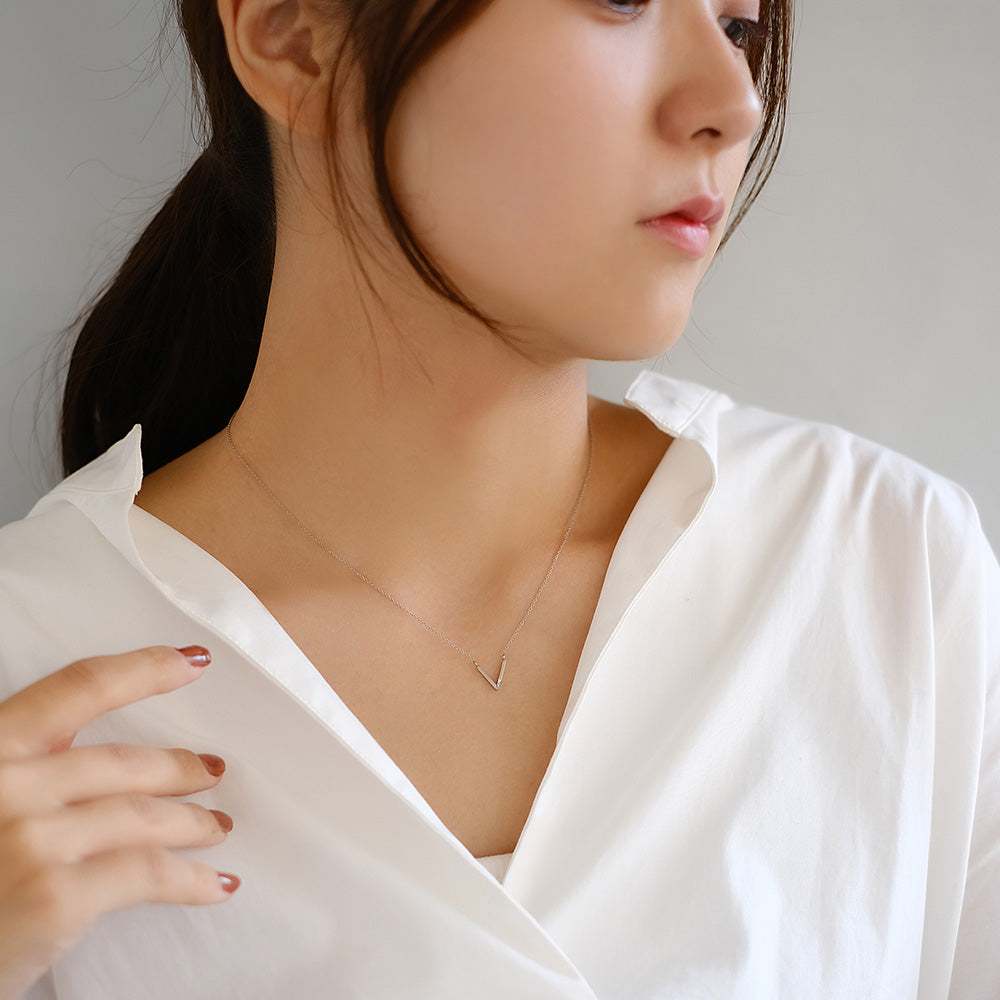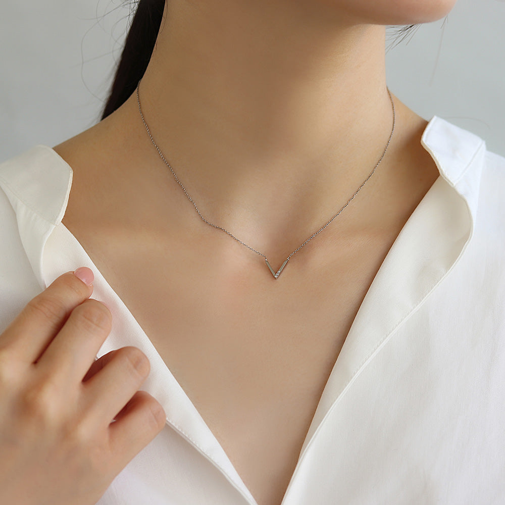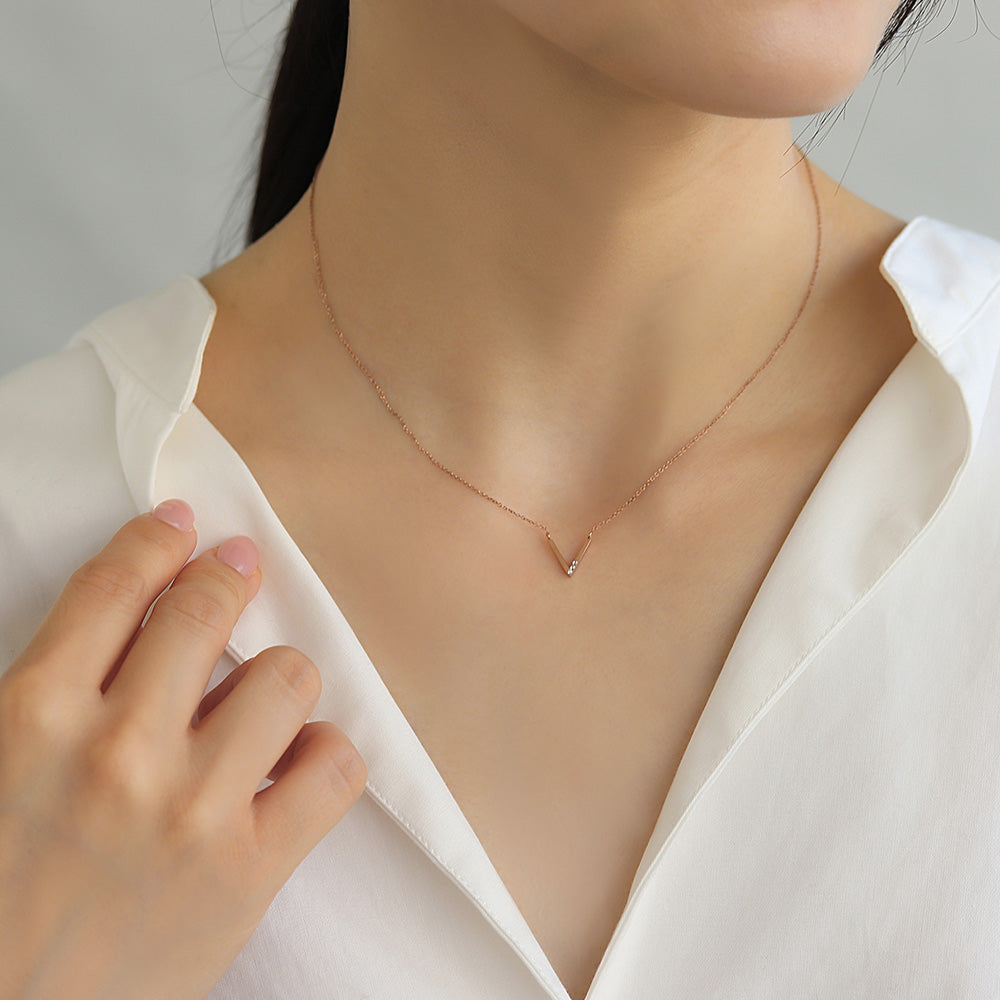 ネックレス ステンレス メタル V字 ライン トリプル ストーン 超極細 チェーン マグネット プチネックレス