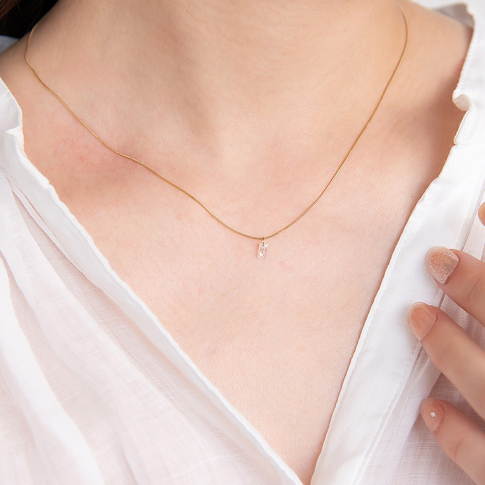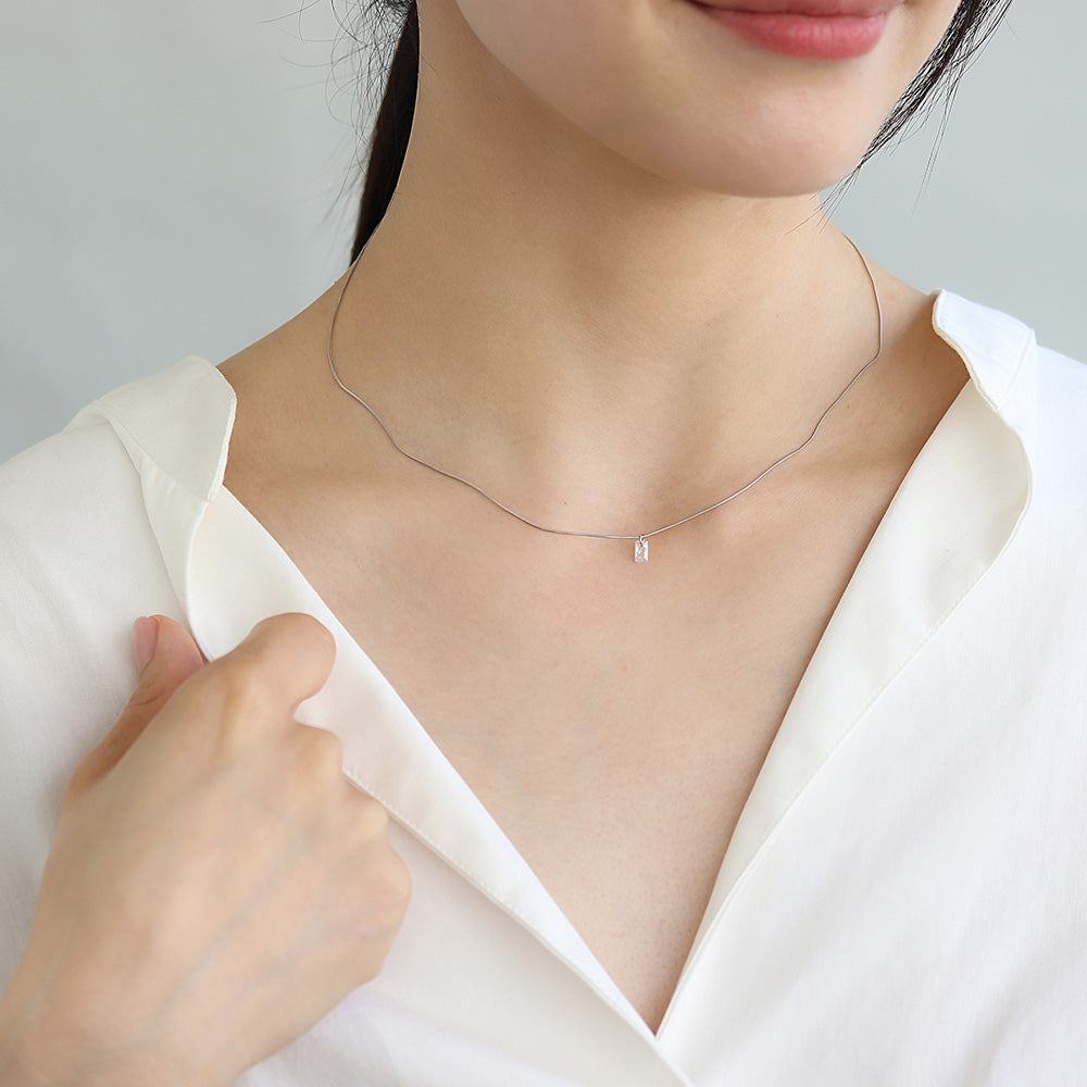 ネックレス ステンレス メタル キュービックジルコニア レクタングル 超極細 チェーン マグネット プチネックレス