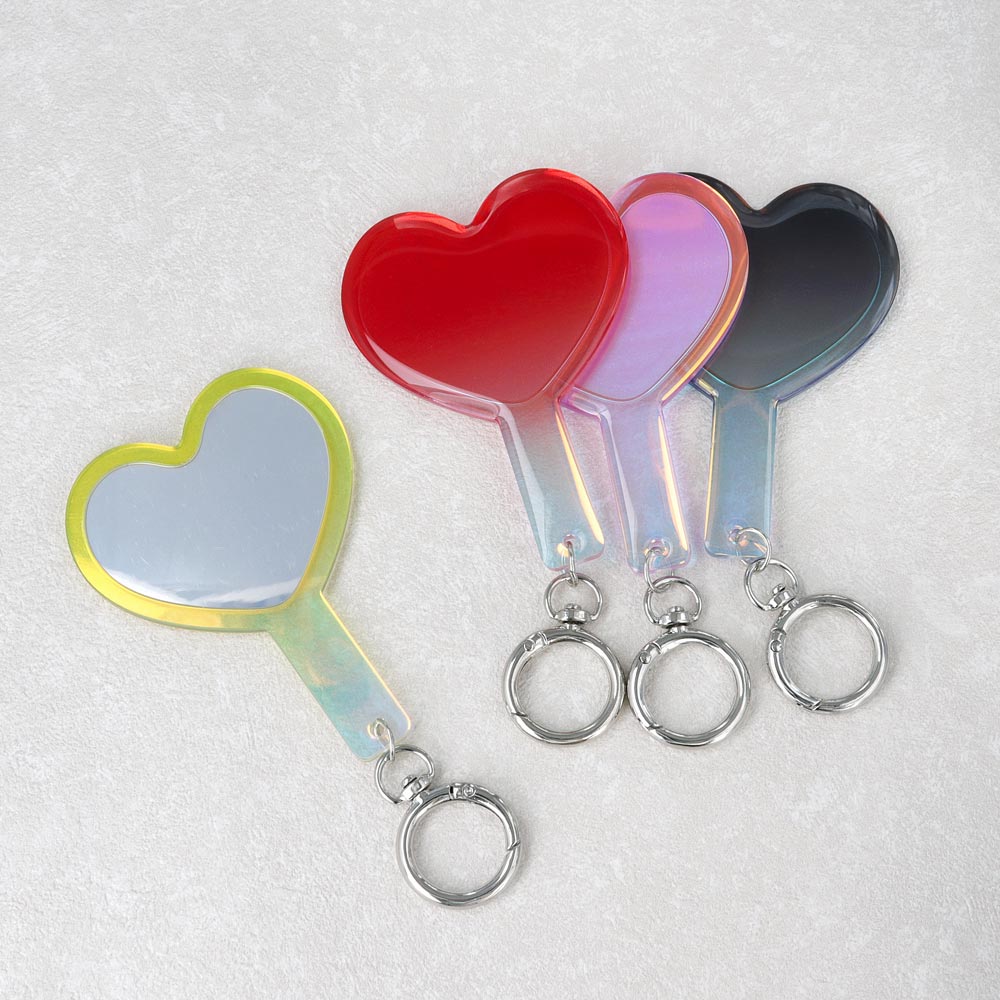ミラーチャーム ハート オーロラ カラー カラビナ リング 丸型 ミニミラー 鏡 手鏡 ハンドミラー