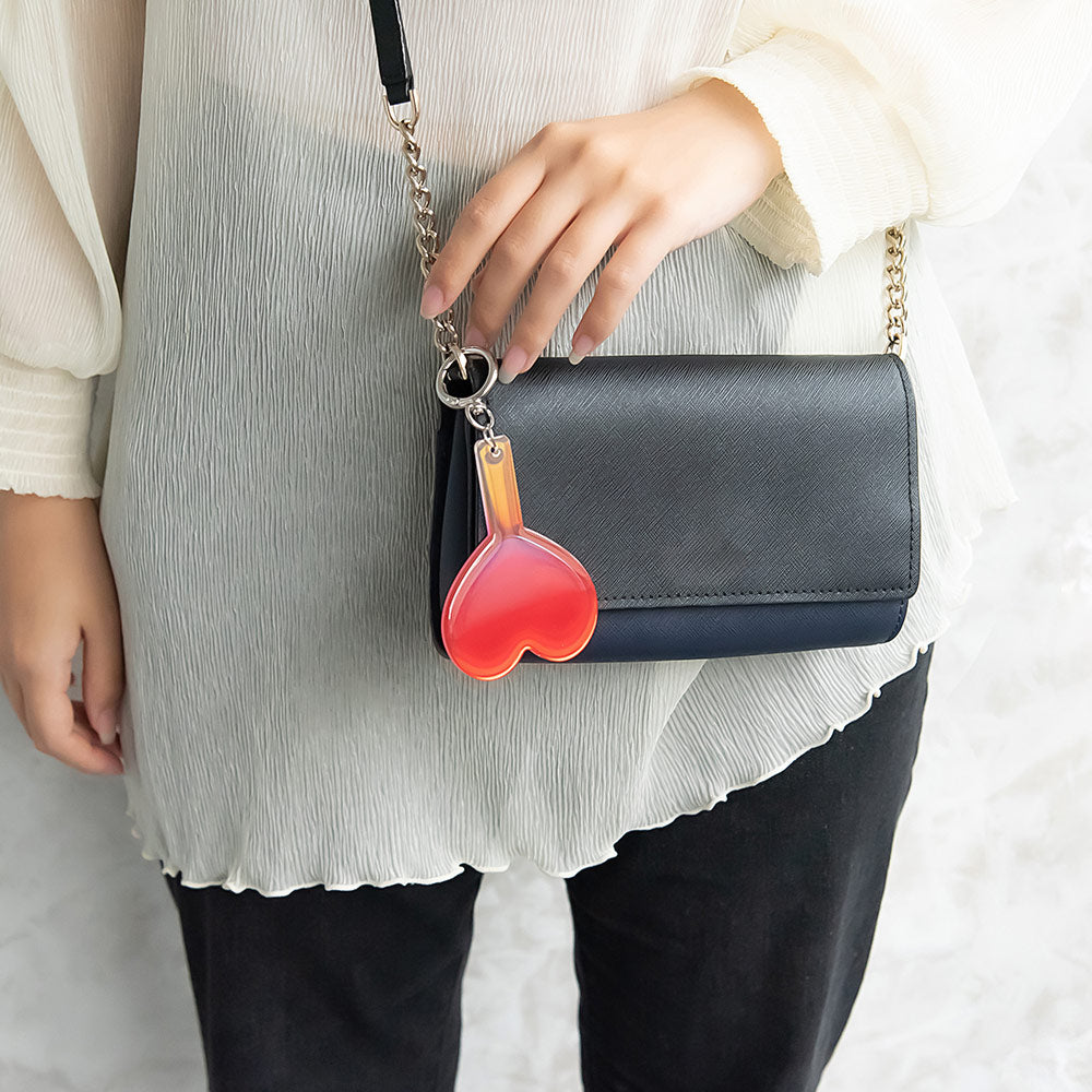 ot0187持ち運びに便利なミラーチャーム。手のひらに収まりやすいサイズ感で外出先でのメイク直しやエチケットケアのお供に最適です。日常使いはもちろん、イベントや推し活コーデのバッグにちょうどいいサイズ感で使い勝手抜群。手に取るたびに気分が上がる、デザインでお友達へのプレゼントにもおすすめです。お友達と色違いでも◎