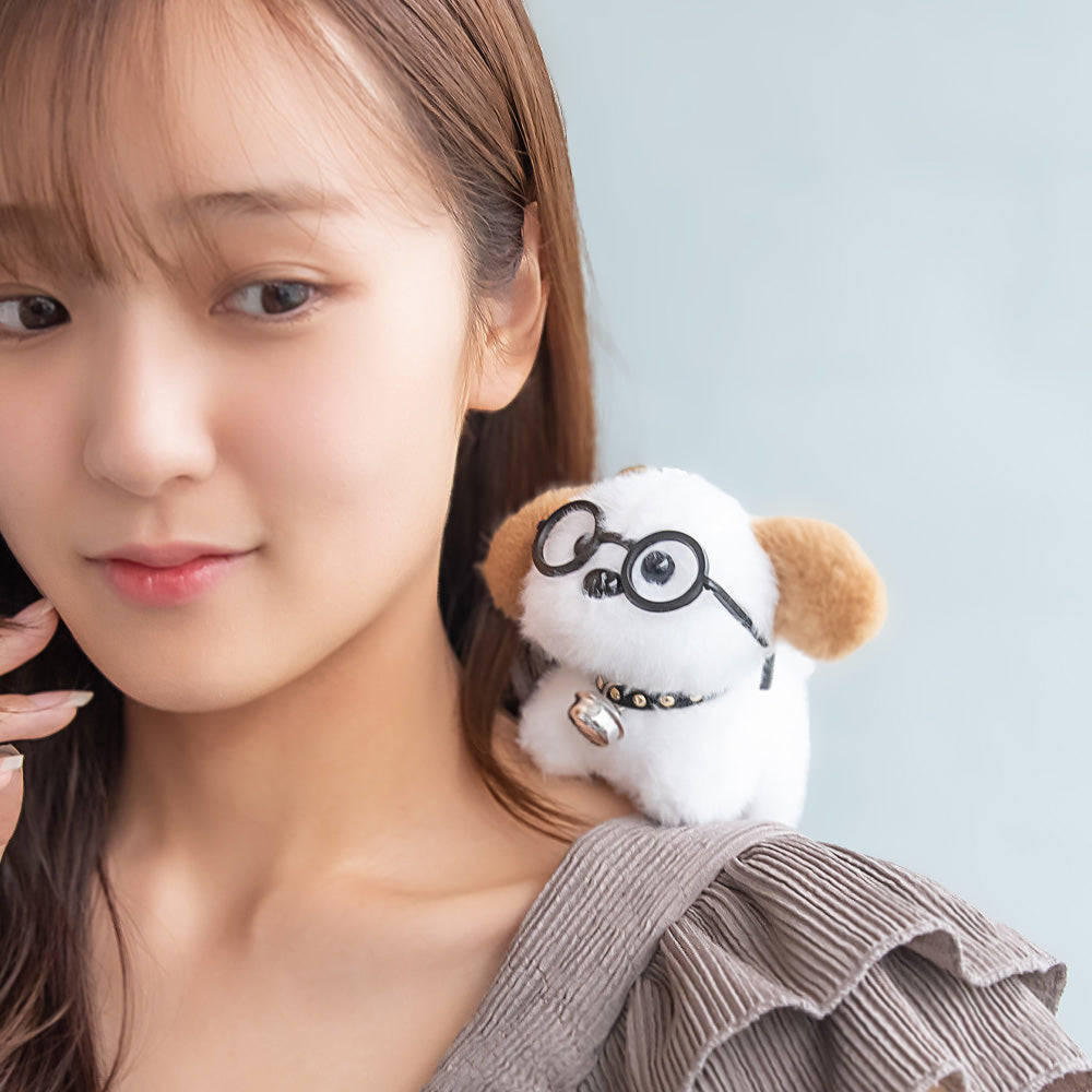 ot0199おしゃれ眼鏡をかけた愛らしい表情をしたワンちゃんのバッグチャーム。ふわっと触り心地のいい、人気のアニマルぬいぐるみシリーズ。お気に入りのトートバッグやリュック、大切な鍵などに付けて小物おしゃれを楽しみましょう。ゆるっとした表情に癒されときめくアイテムは、プレゼントにもおすすめです。お友だちや姉妹、親子でお揃いでつけるのも◎