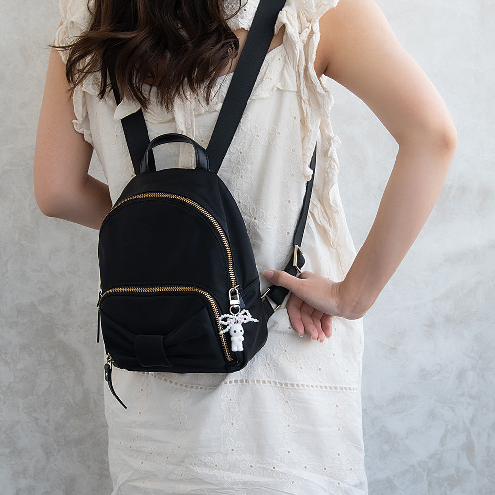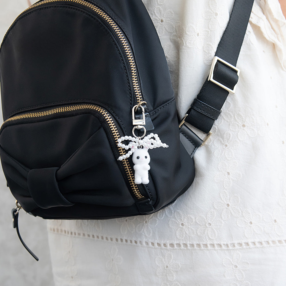 バッグチャーム ウサギ リボン パール フロッキー キーホルダー