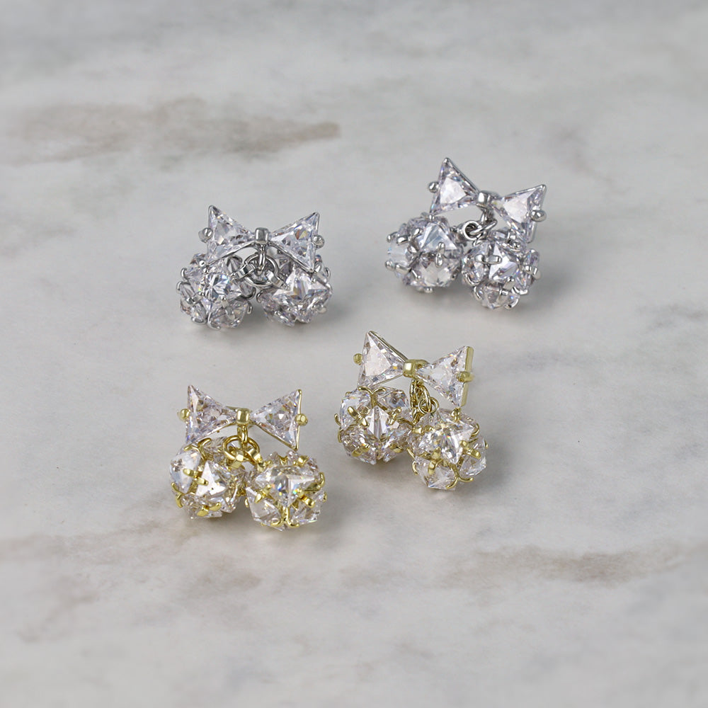 カットが美しいキュービックジルコニアを贅沢にあしらったきらびやかなピアス。