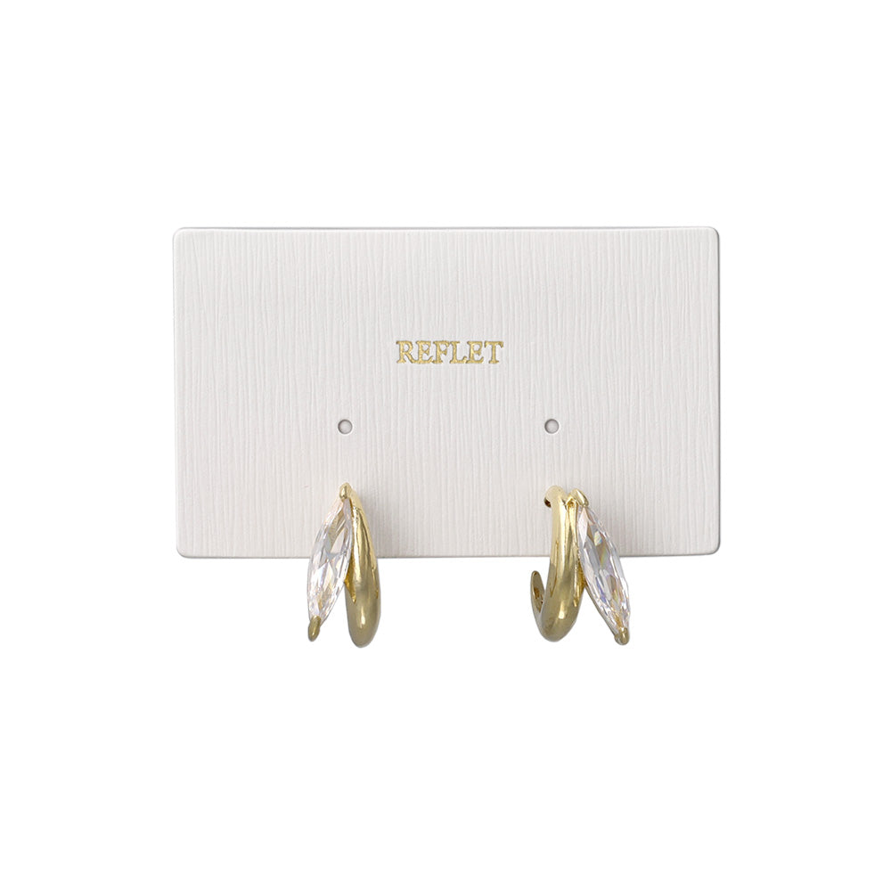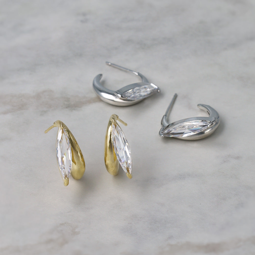きらめくキュービックジルコニアが目を引く三日月タイプのフープ風ピアス。