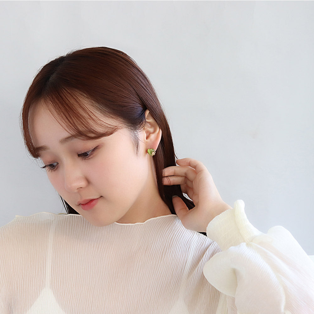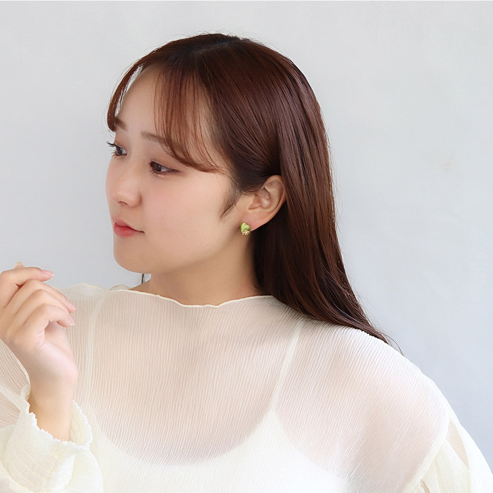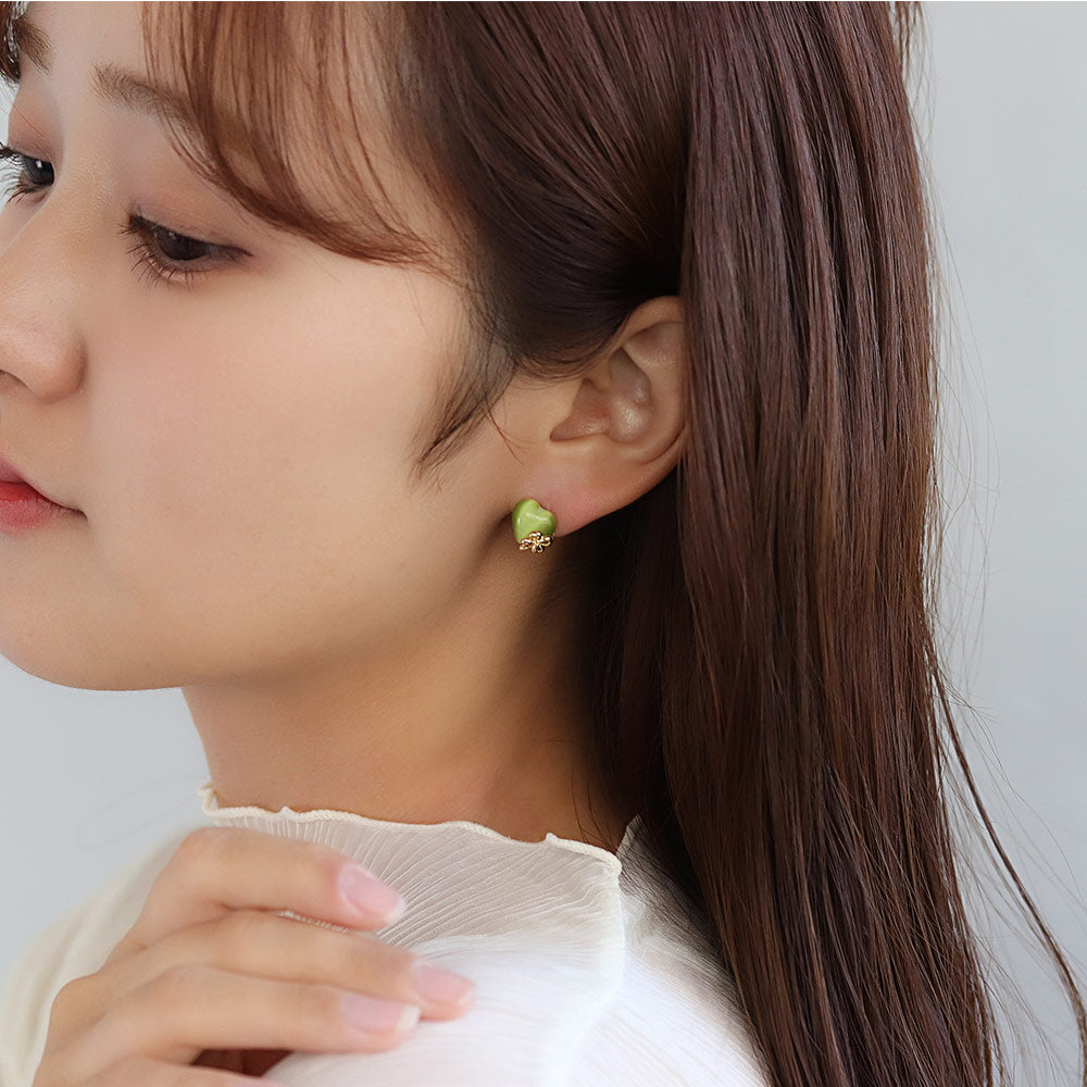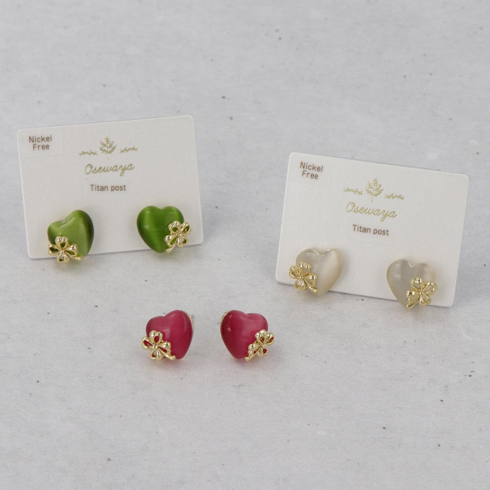 pc1913ちいさめハートで品よく、ちょっと甘めでレディなコーディネートに。耳元に色のワンポイントをプラス。添えられたクローバーモチーフで可愛さUP。