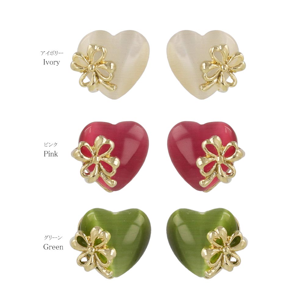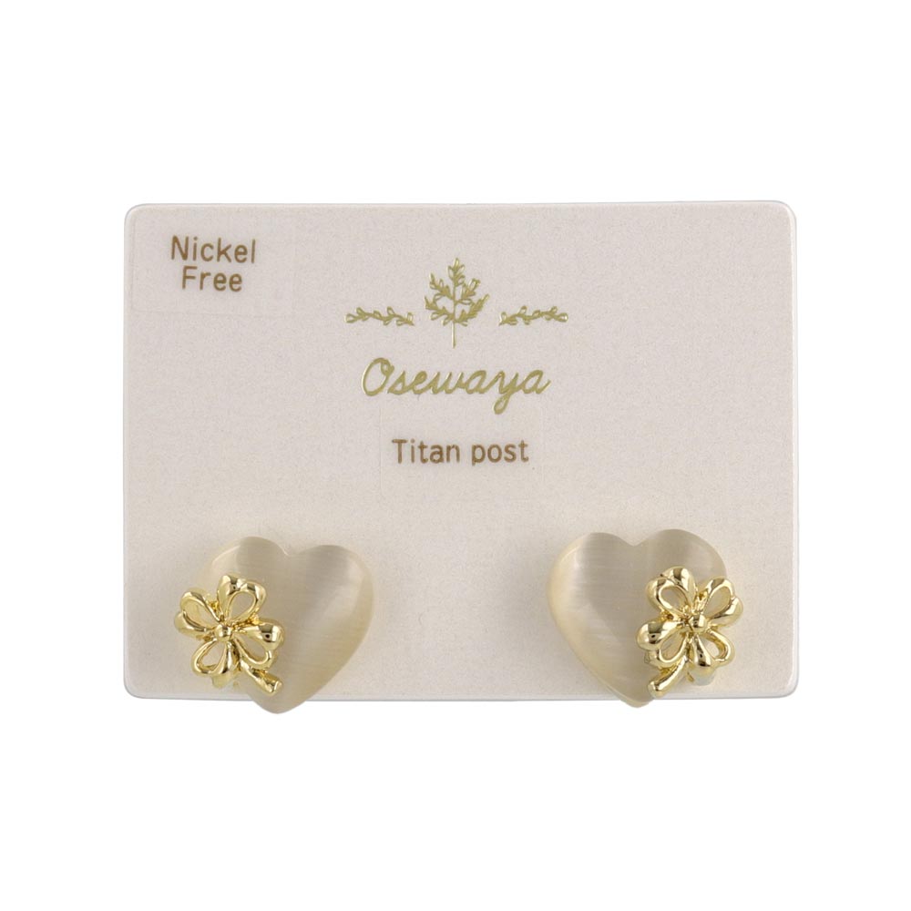 ピアス ニッケルフリー メタル 合成キャッツアイ ハート ミニ クローバー 四つ葉 チタンポスト スタッドピアス