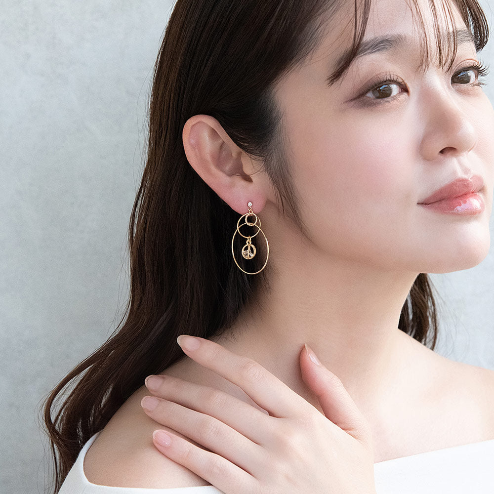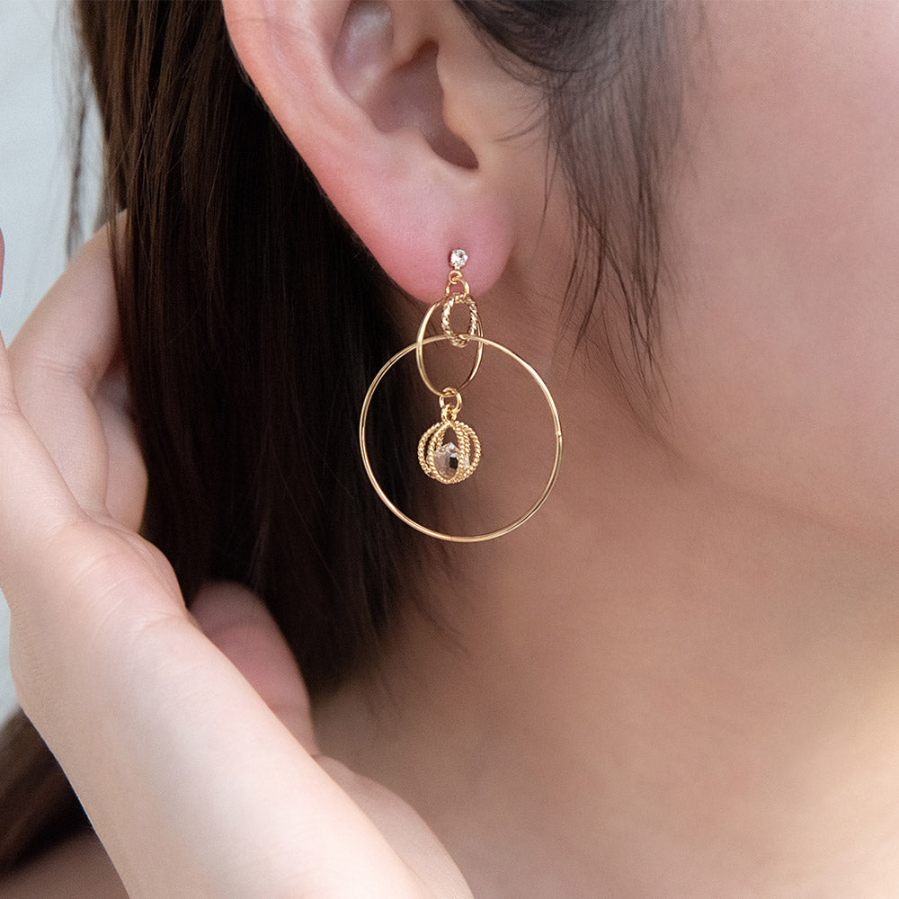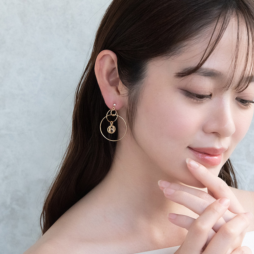 pc1924”ゆれる”の動作が美しさをつくりだす、洒落たバランス感のアクセサリー。立体感のあるフォルムにきらりと輝く色のワンポイントがコーデの質を上げる、きれいめピアス。
