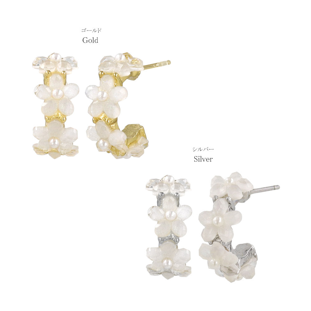 ピアス メタル ミニ フラワー 花 パール ステンレスポスト C型 スタッドピアス