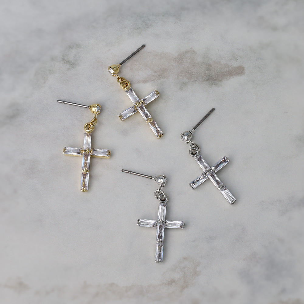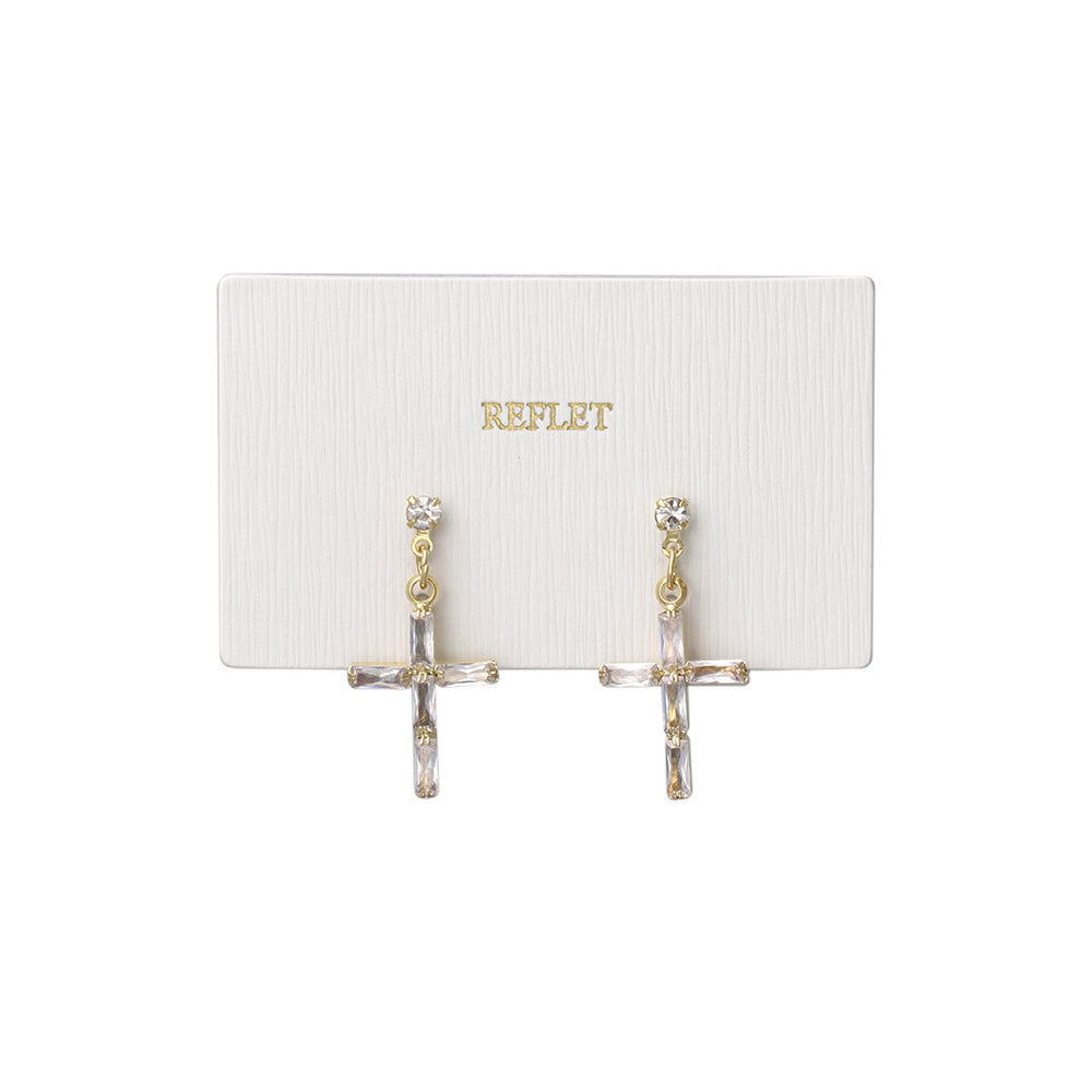 きらりと美しく輝く、キュービックジルコニアのピアス。存在感もあってコーデ映え。シーズンレス・ジェンダーレスな十字架デザイン。