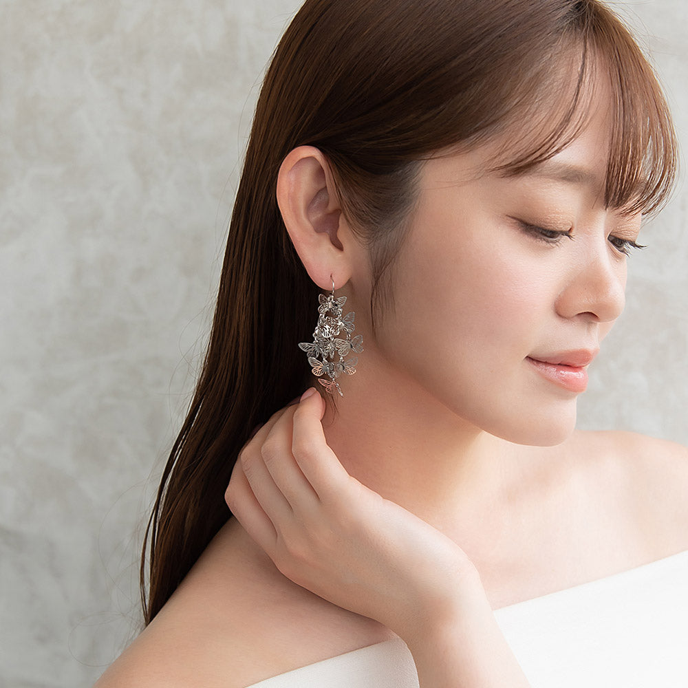pc1969どこから見てもかわいい。光の透け感がきれいな透かしメタルの蝶モチーフピアス。