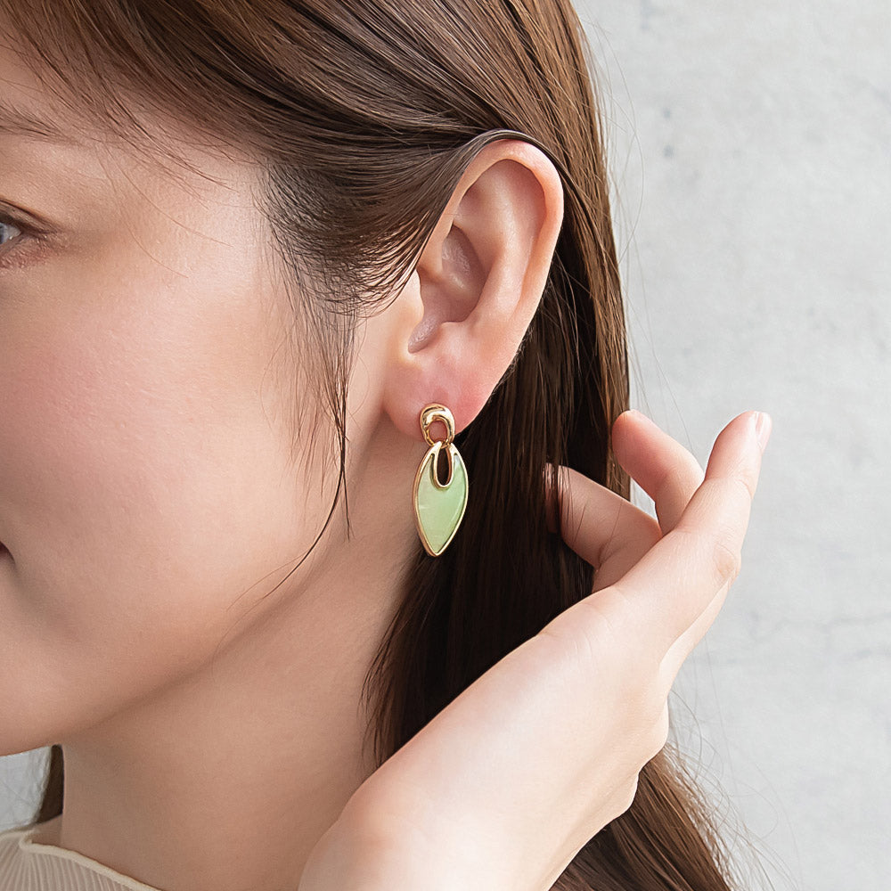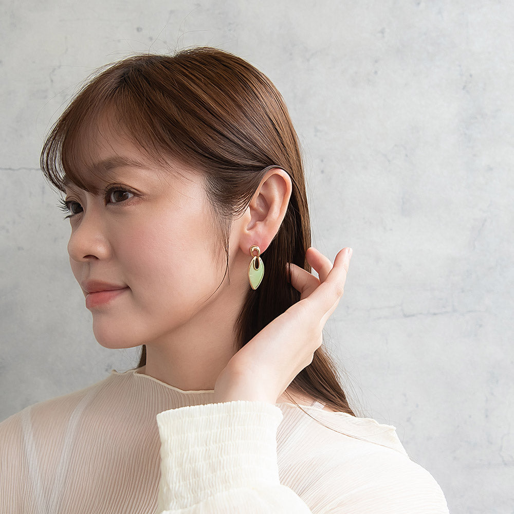 ピアス ニッケルフリー メタル オーバル リーフ シェル カラー チタンポスト スタッドピアス