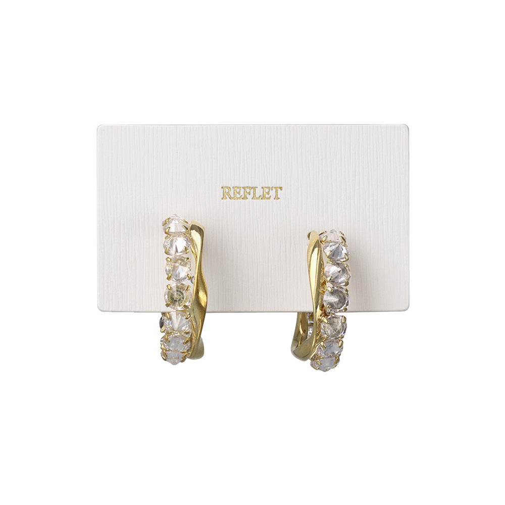 贅沢にあしらわれたキュービックジルコニアが煌めく、高見え華やかデザイン。きれいに、品よく。存在感もあってコーデ映え、もっと気さくに取り入れたいキラキラ感のあるピアス。