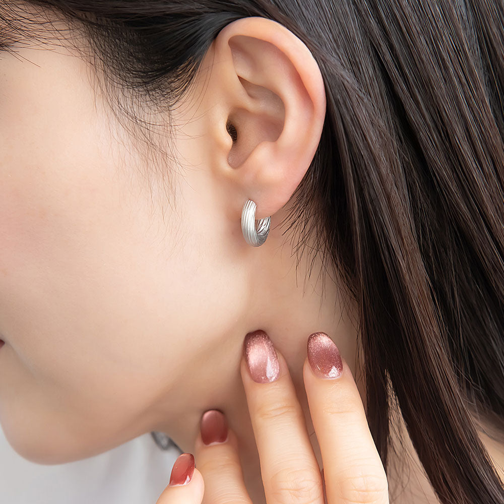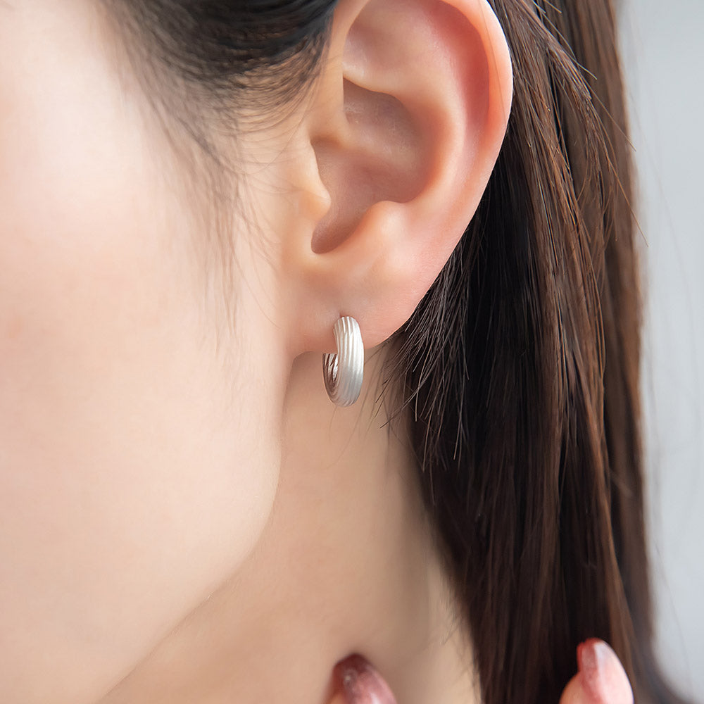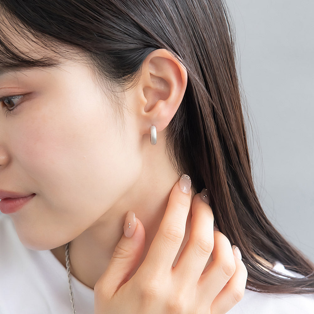 ピアス sable silver メタル ライン テクスチャー C型 スタッドピアス