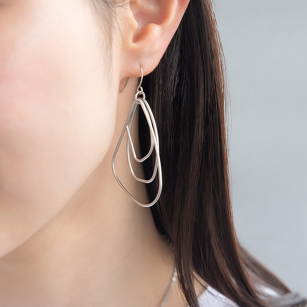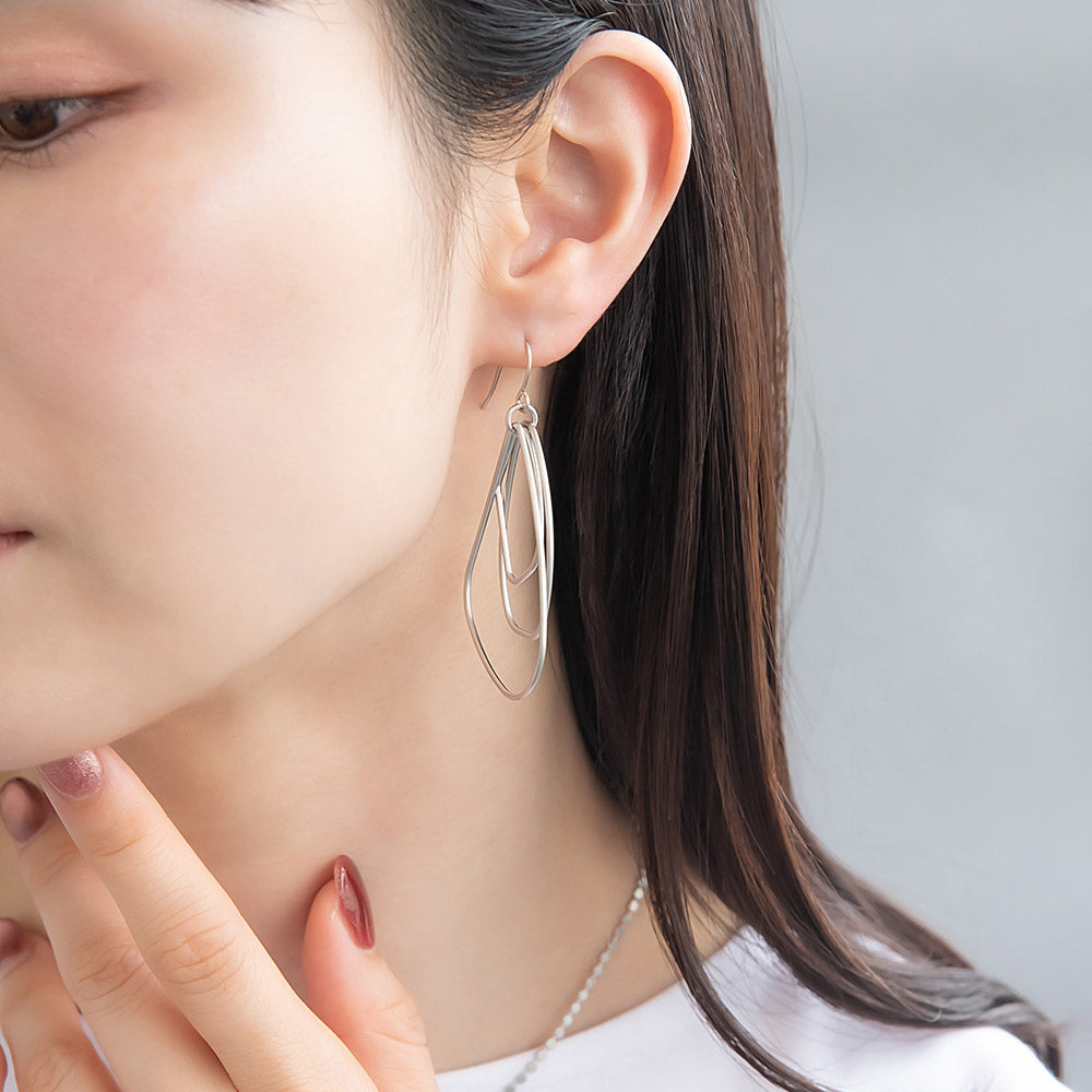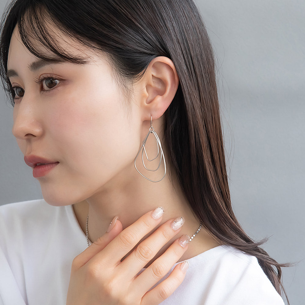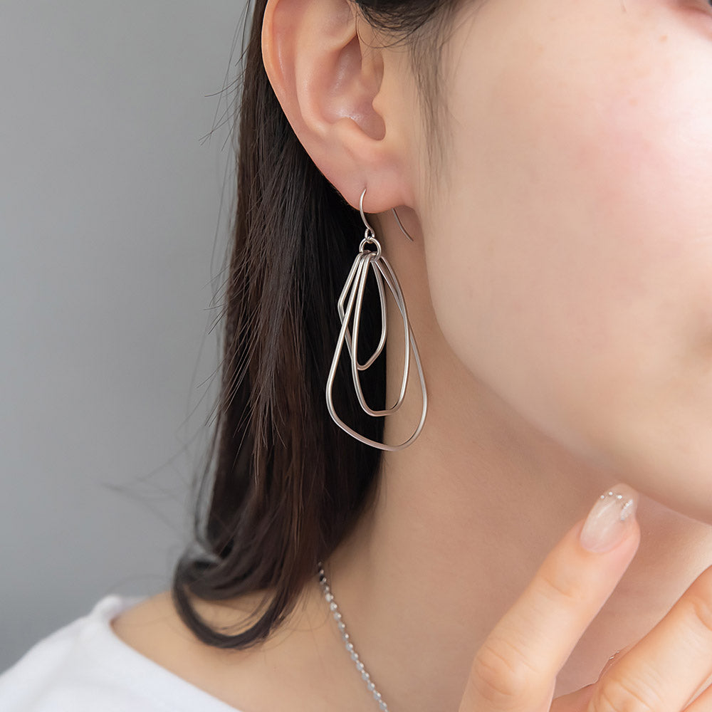 ピアス ニッケルフリー sable silver メタル トリプル レイヤード マルチ 変形 ドロップ フックピアス