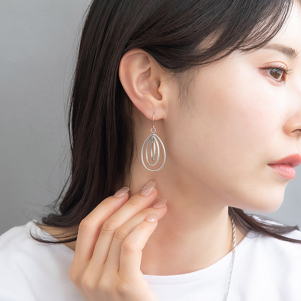 ピアス ニッケルフリー sable silver メタル トリプル ドロップ 梨地 フックピアス