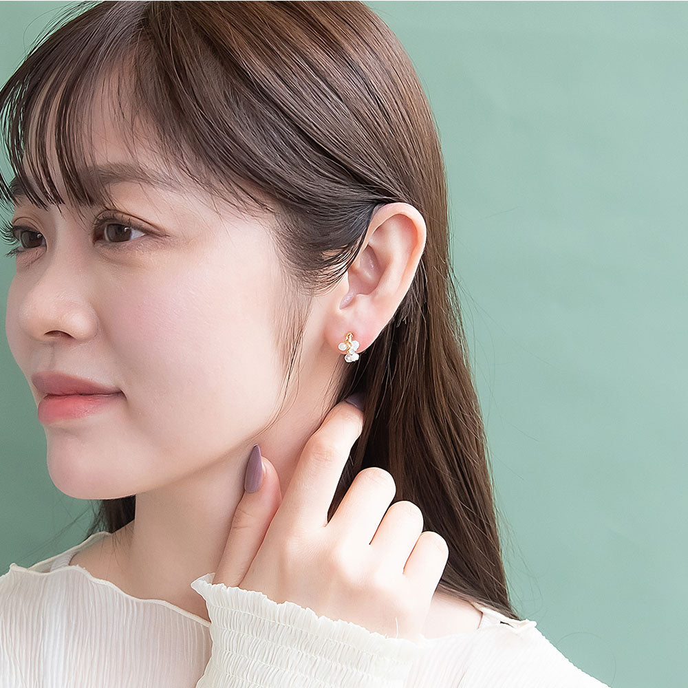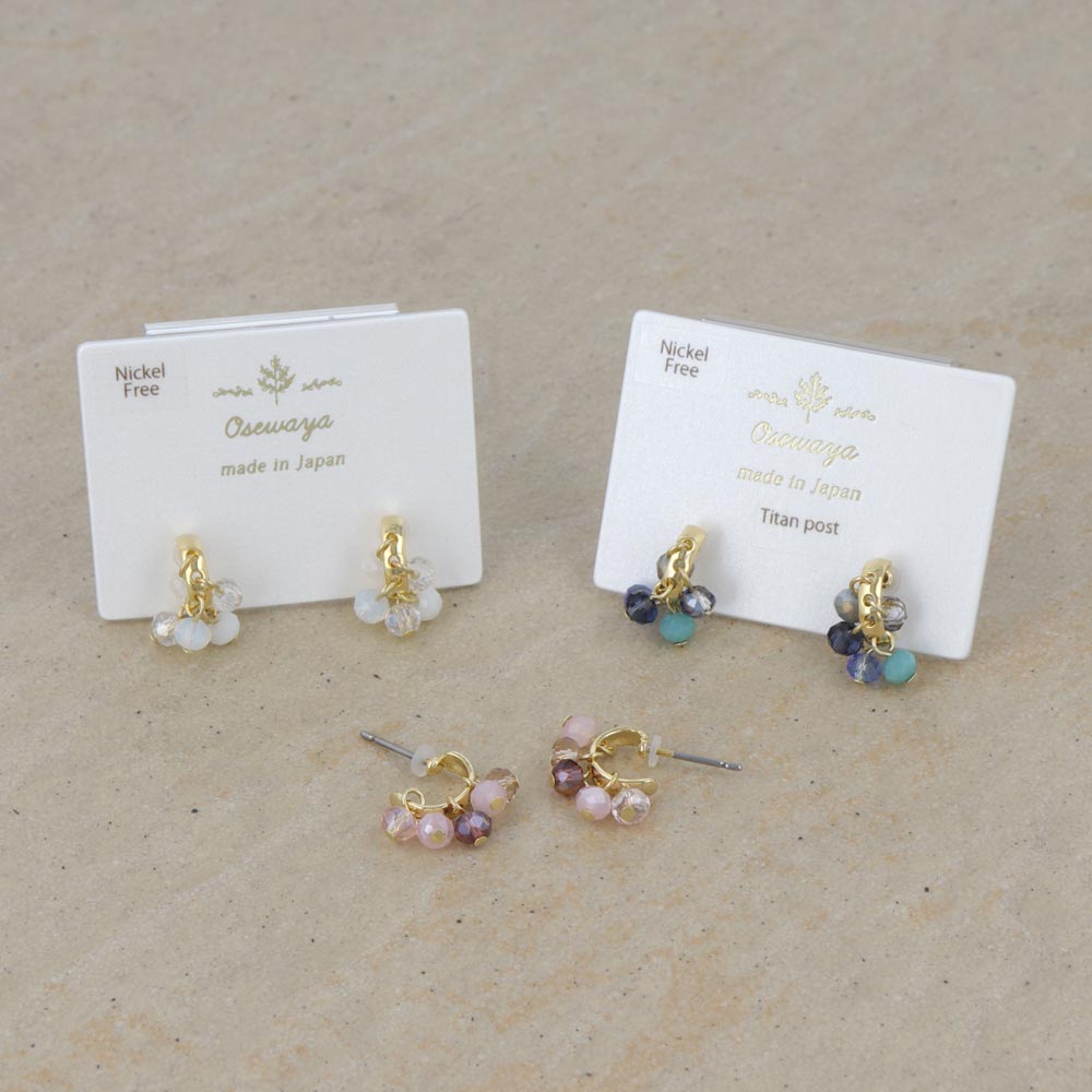 pc2028色のワンポイントがコーデの質を上げる、オンオフともに使えるきれいめピアス。派手すぎない気品あるカラーリングのガラスビーズで重たくならずに差し色が楽しめるアイテム。使いやすさのある小さめのサイズ感も魅力的。