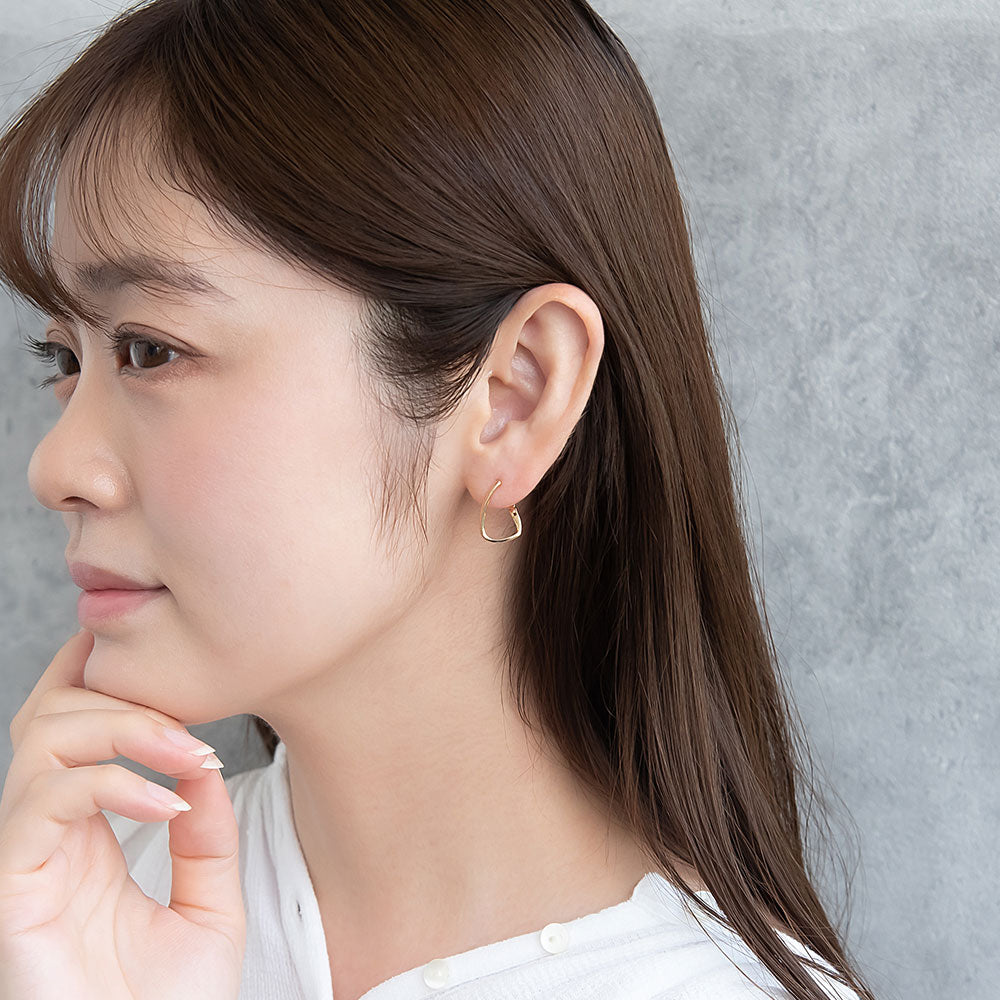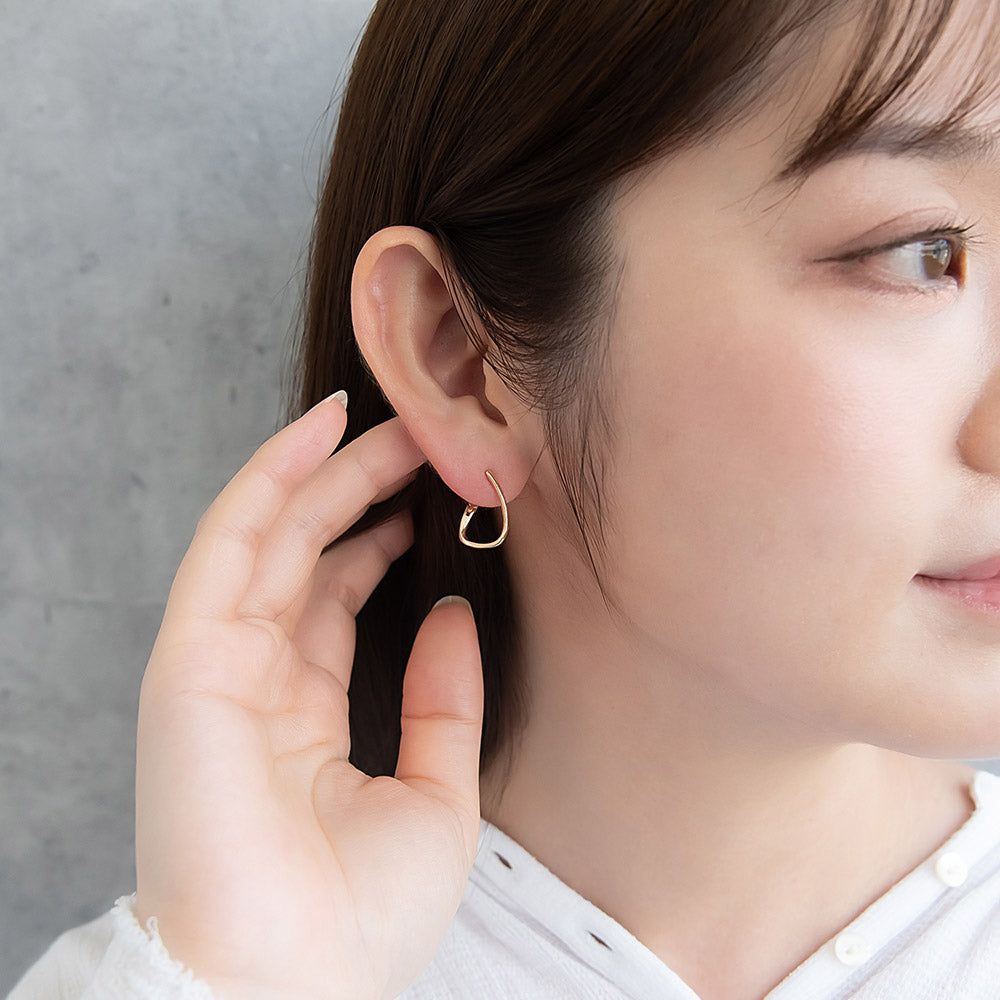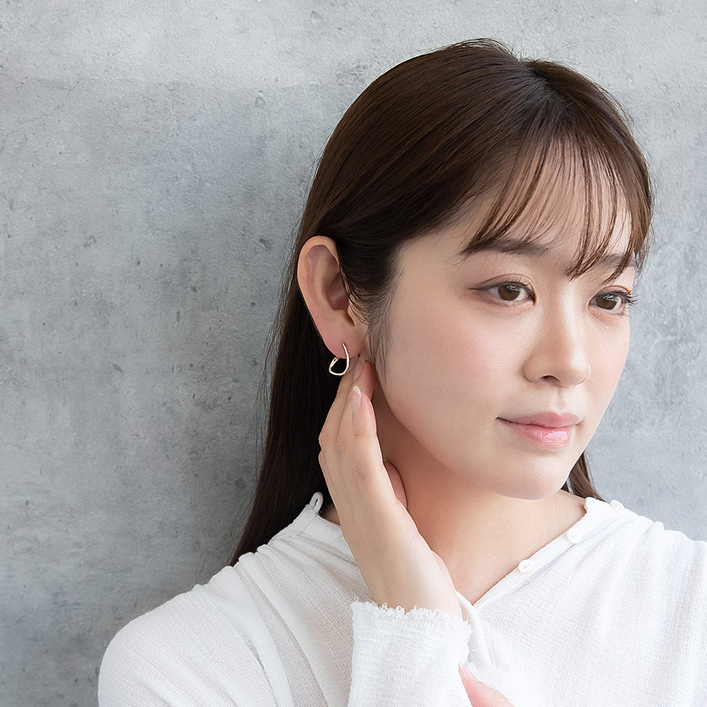ピアス ニッケルフリー メタル スリム ライン ドロップ ワンタッチ フープピアス