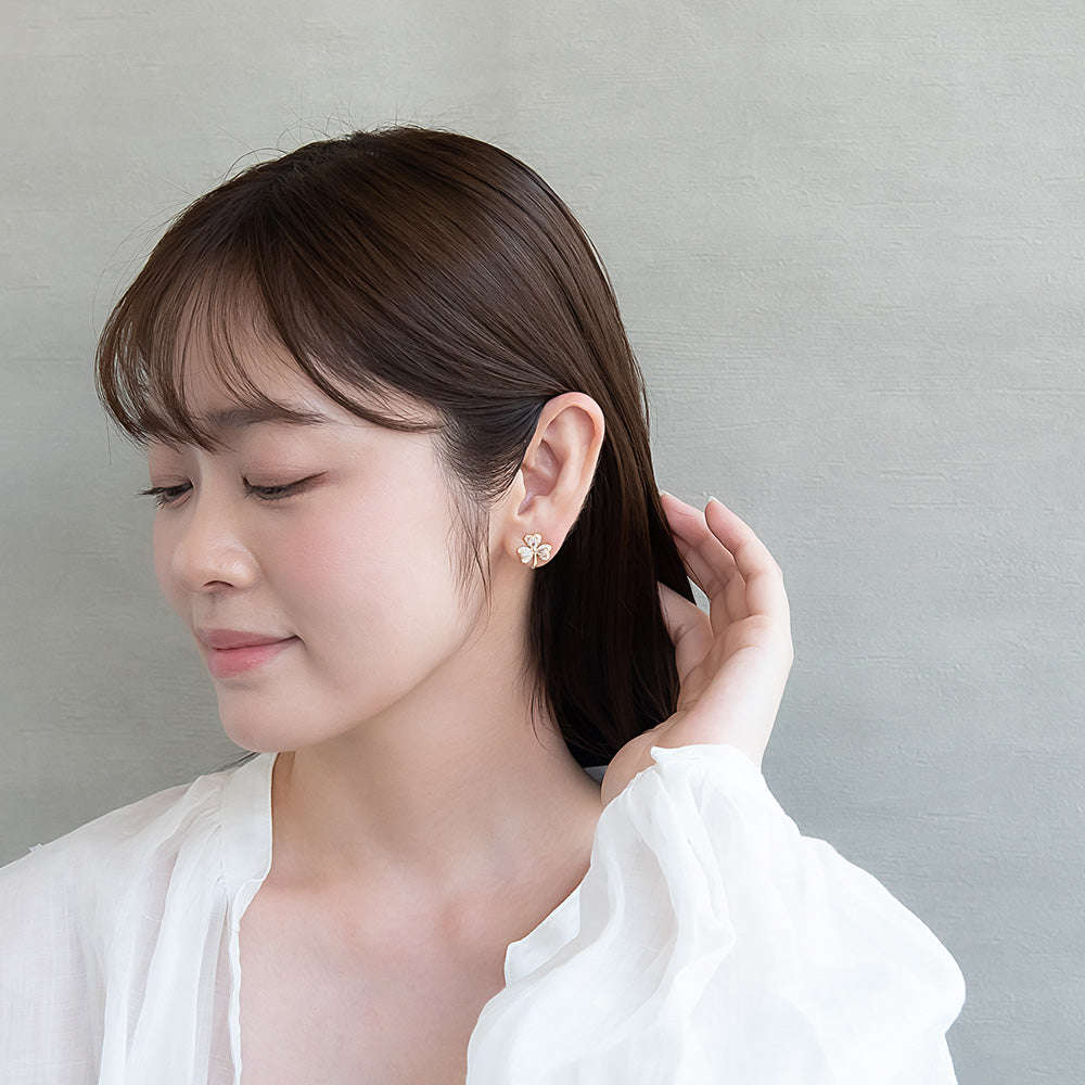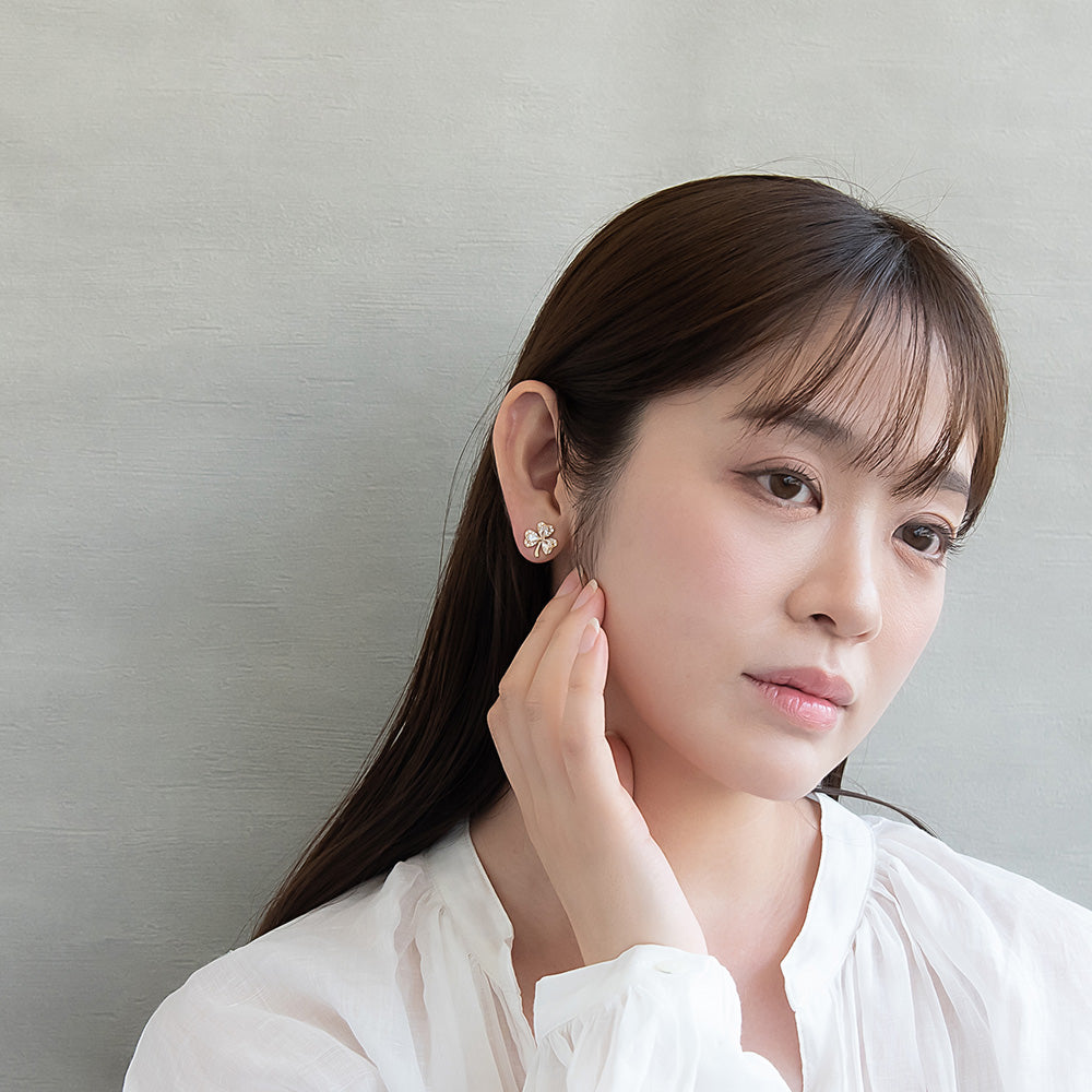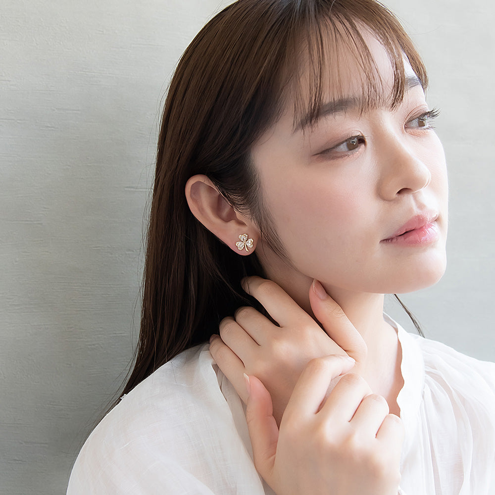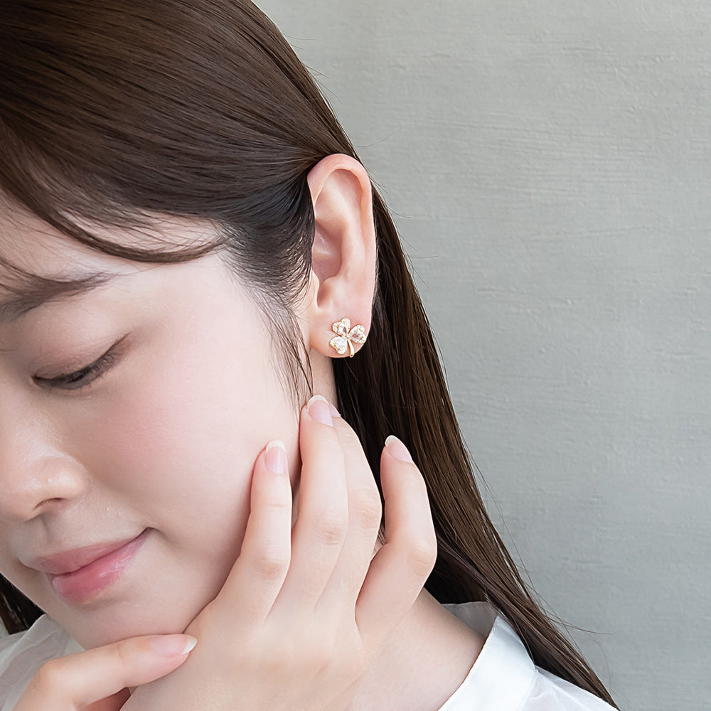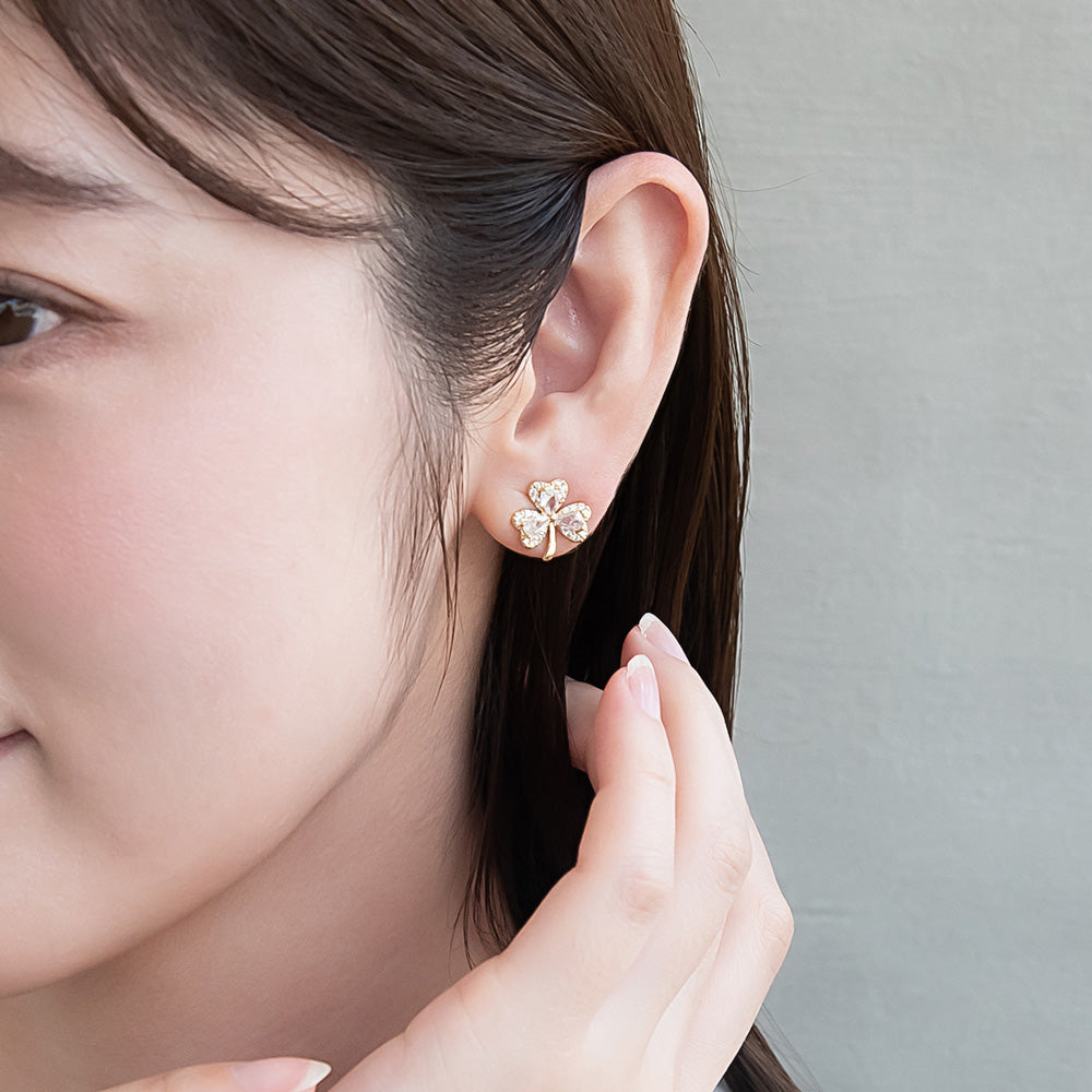 ピアス ニッケルフリー メタル キュービックジルコニア クローバー チタンポスト スタッドピアス