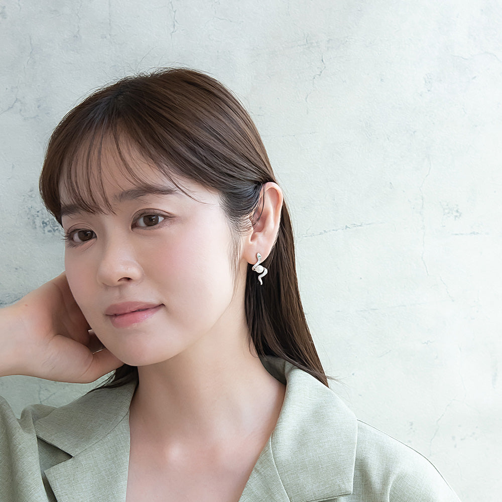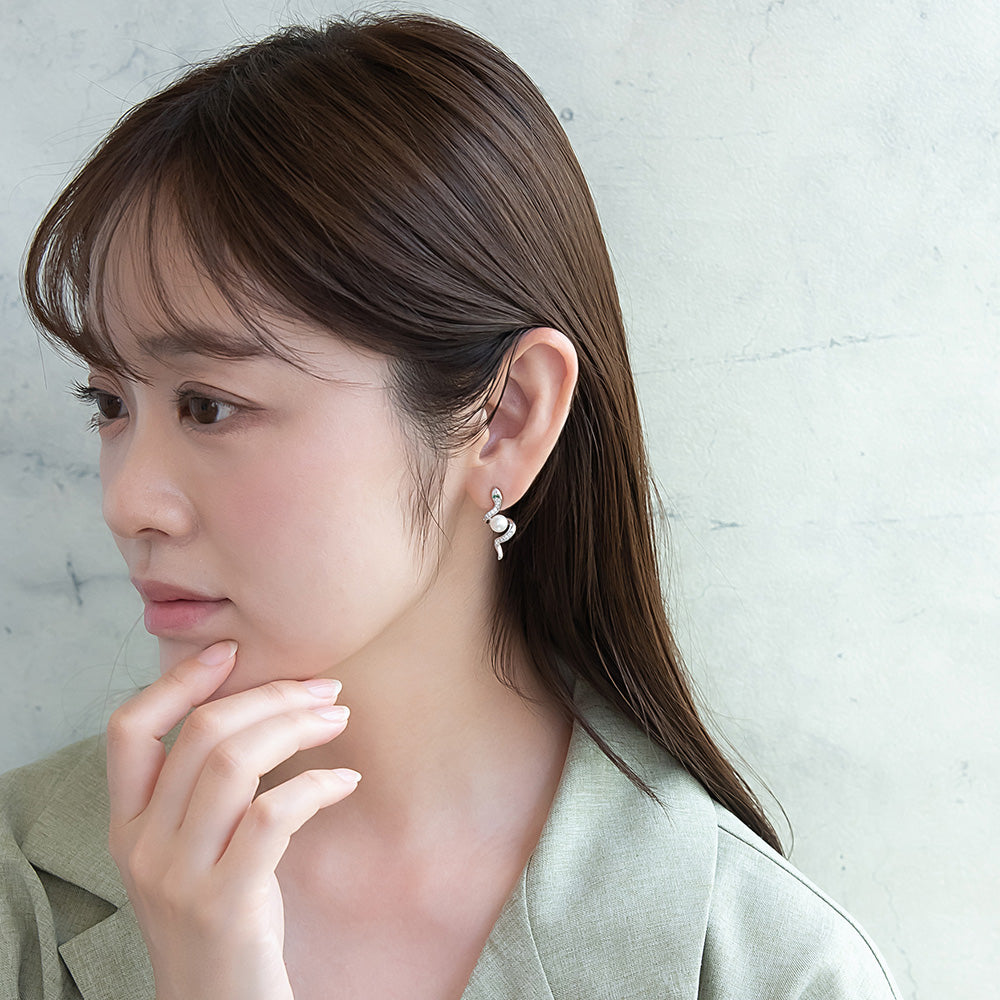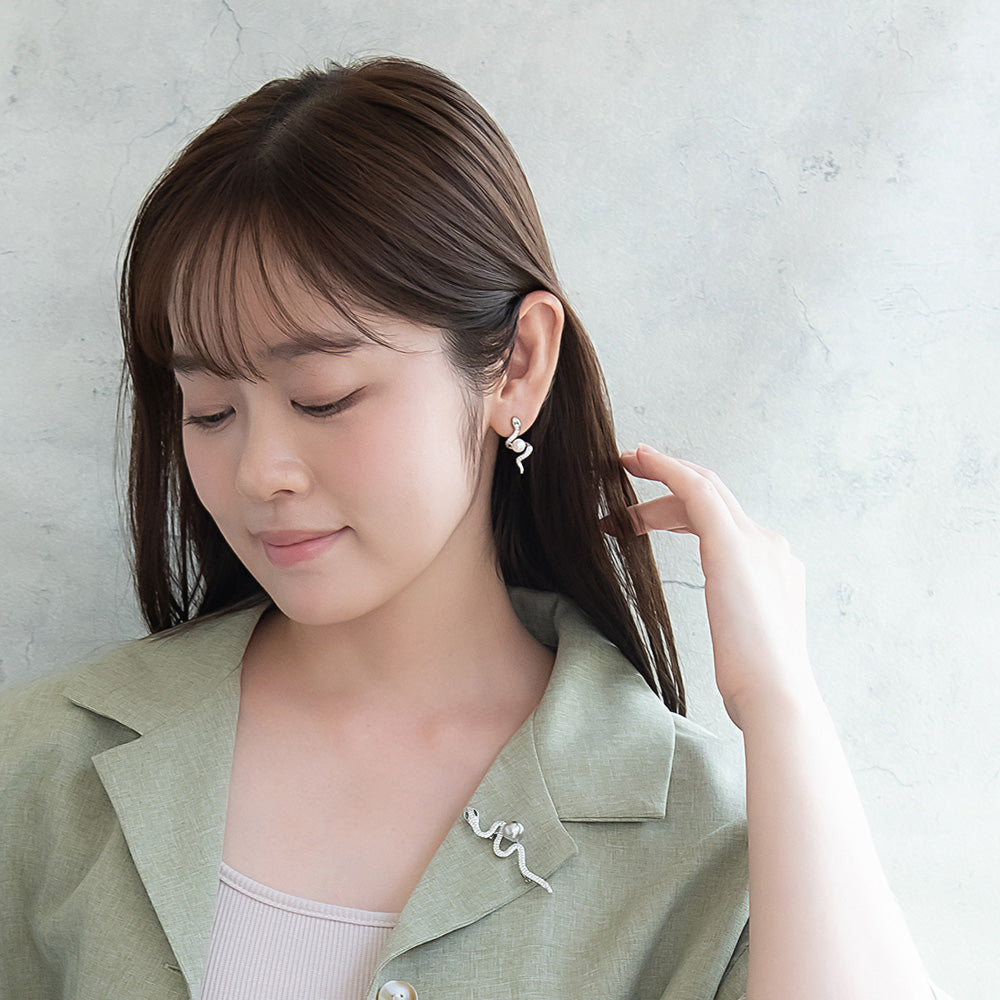 pc2062存在感抜群スネークデザインピアス。キュービックジルコニアの輝きにとっても綺麗な目元が魅力的。忘れたくない遊び心をアクセサリーで、”大人だからこそ”の感覚で選びたいおしゃれアイテム。