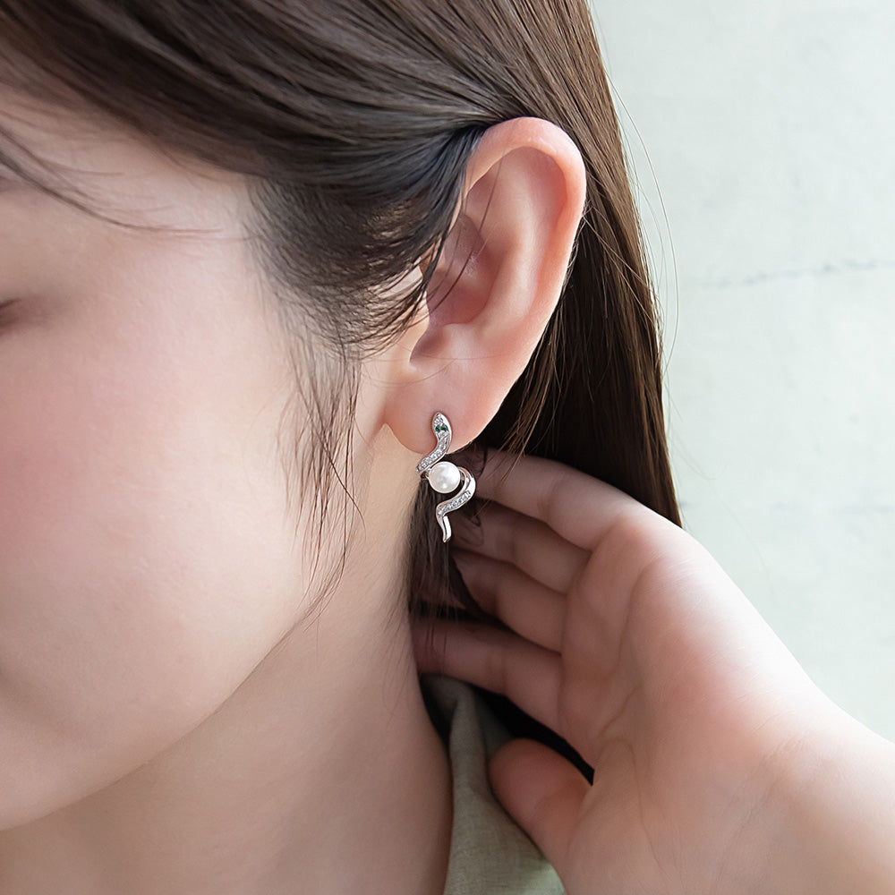 ピアス ニッケルフリー メタル キュービックジルコニア 淡水パール 蛇 チタンポスト スタッドピアス