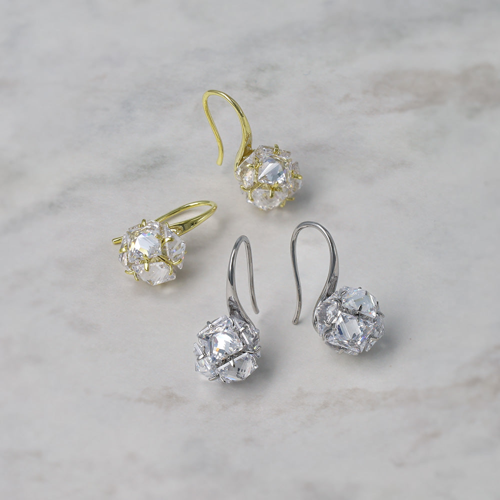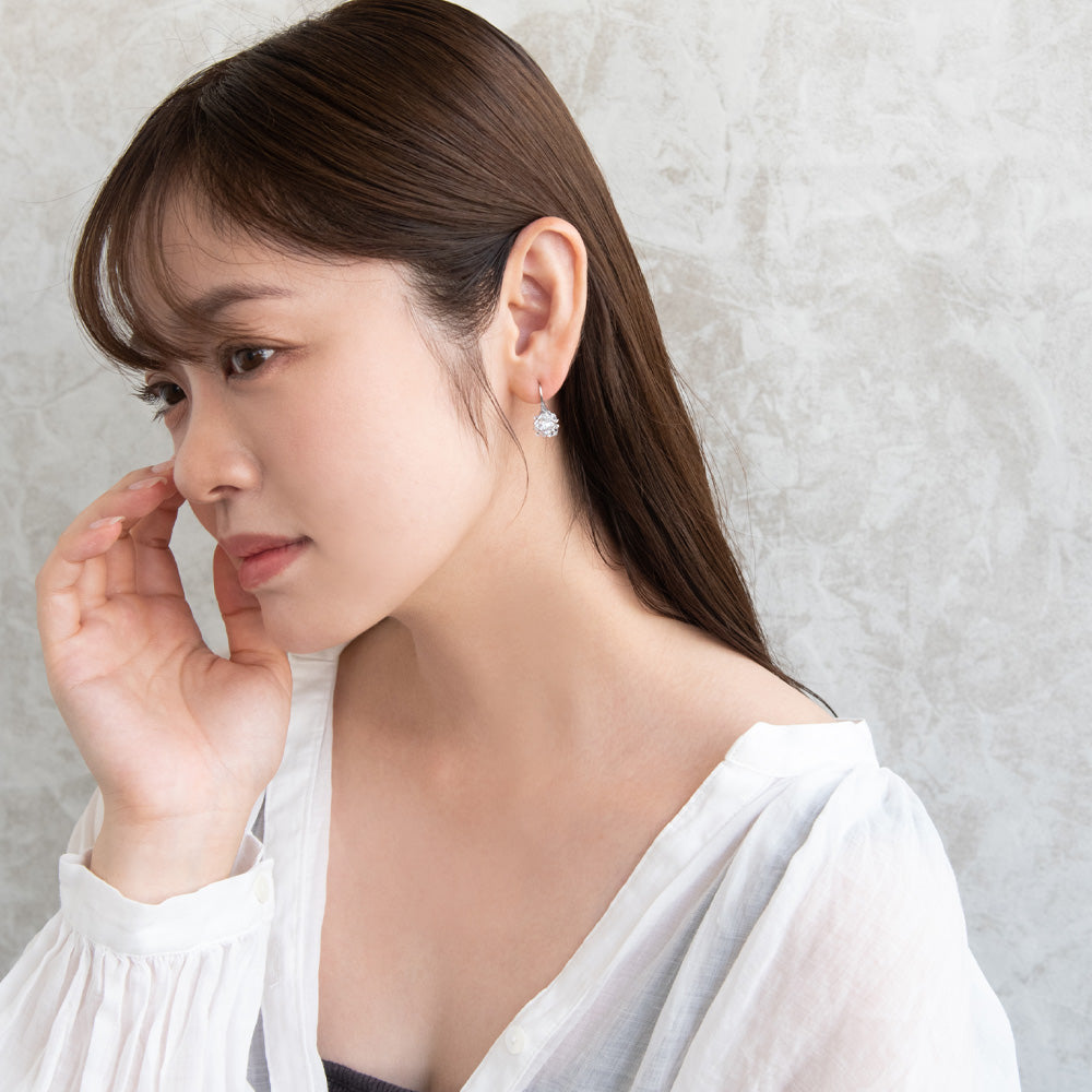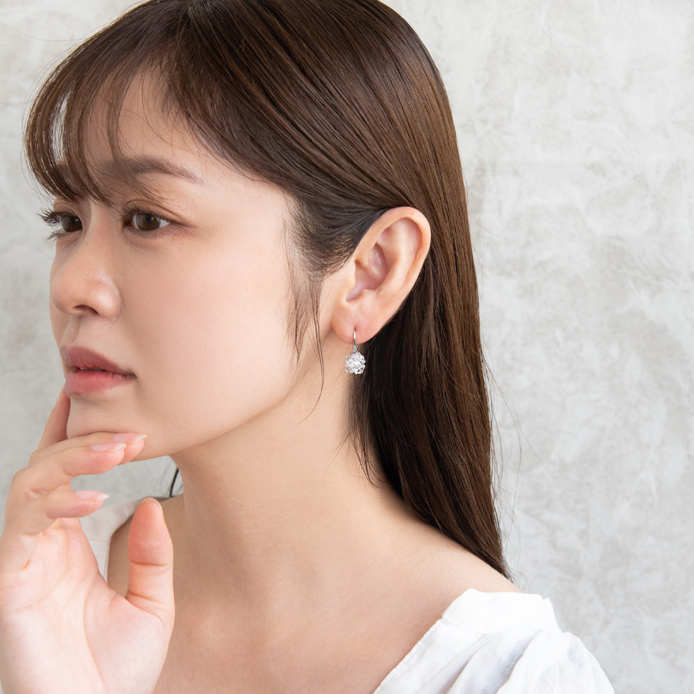 立体感からうまれるキュービックジルコニアの輝き、もっと気さくに取り入れたいキラキラ感のあるピアス。コーデのポイントになる高見え、キレイめデザイン。高級感漂う、輝きに品格のあるキュービックジルコニアがお顔まわりに彩りを添えてくれます。品よく華やかに、いつものスタイリングを格上げしてくれるアイテムです。