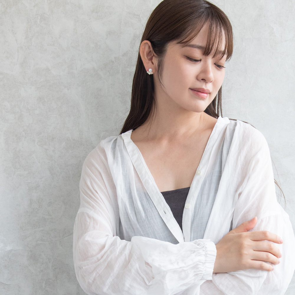 pc2078肌なじみよく優しい光沢のパールアクセサリー。華やかに品よく、いつものスタイリングを格上げしてくれるパールのピアス。日常使いからパーティーシーンなどの特別なオシャレをしたいときにも頼れる存在です。