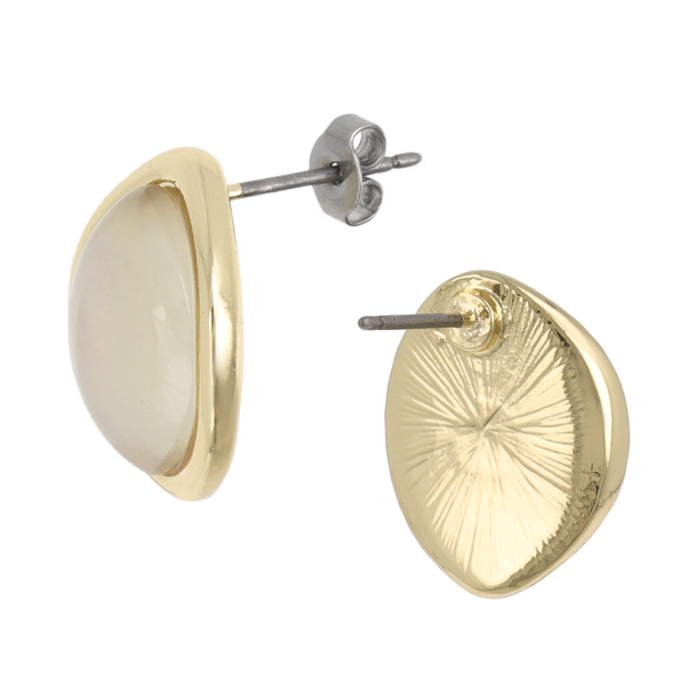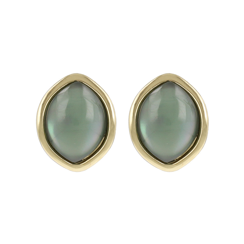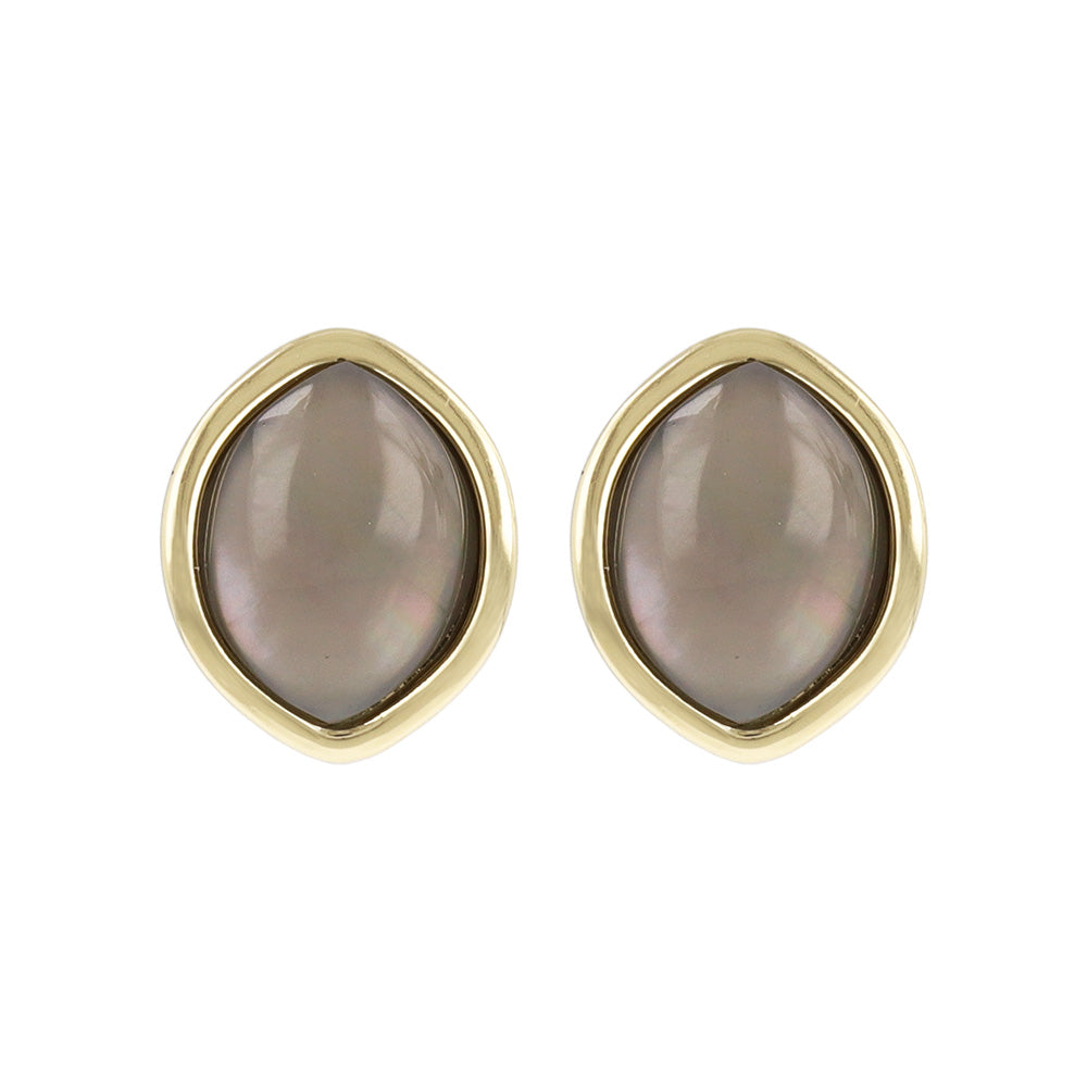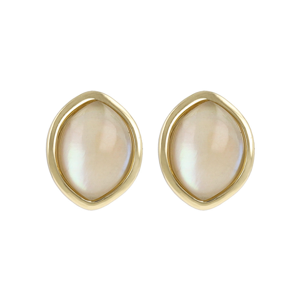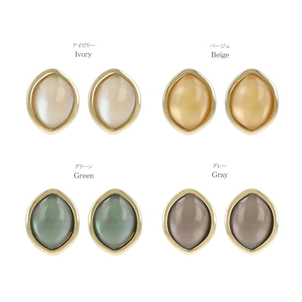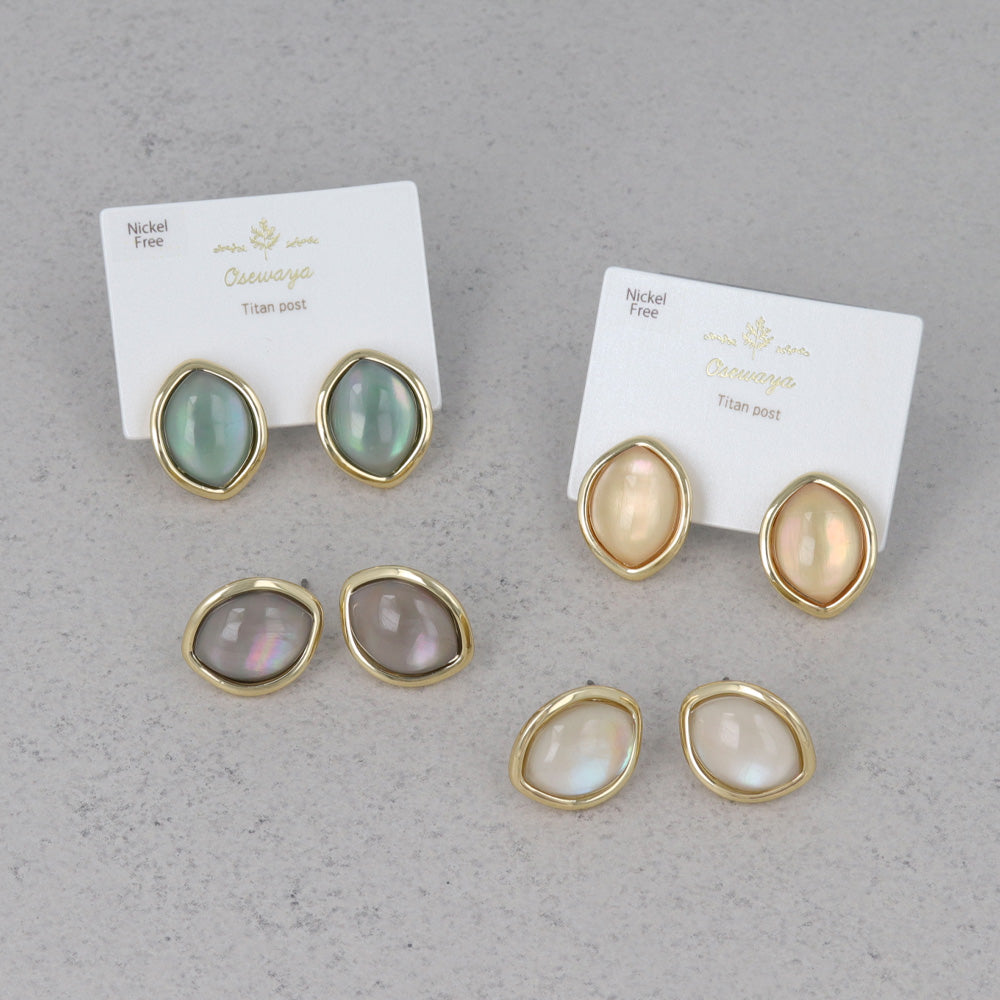 ピアス ニッケルフリー シェル メタルフレーム カラー オーバル チタンポスト スタッドピアス
