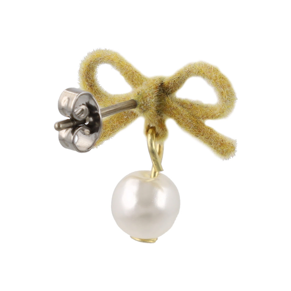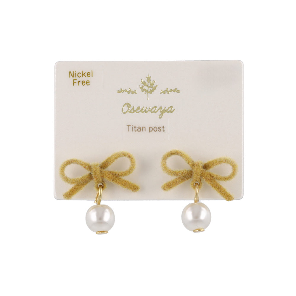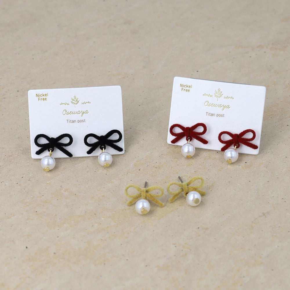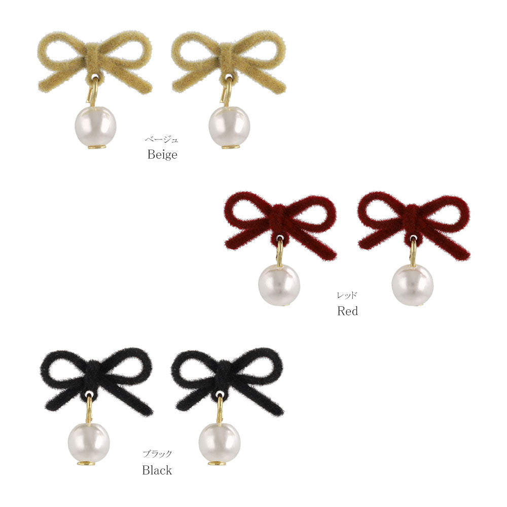 ピアス ニッケルフリー メタル フロッキー カラー リボン パール チタンポスト スタッドピアス