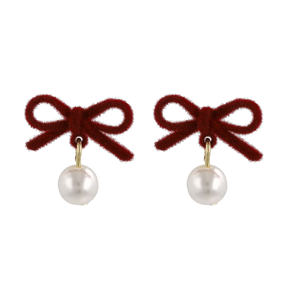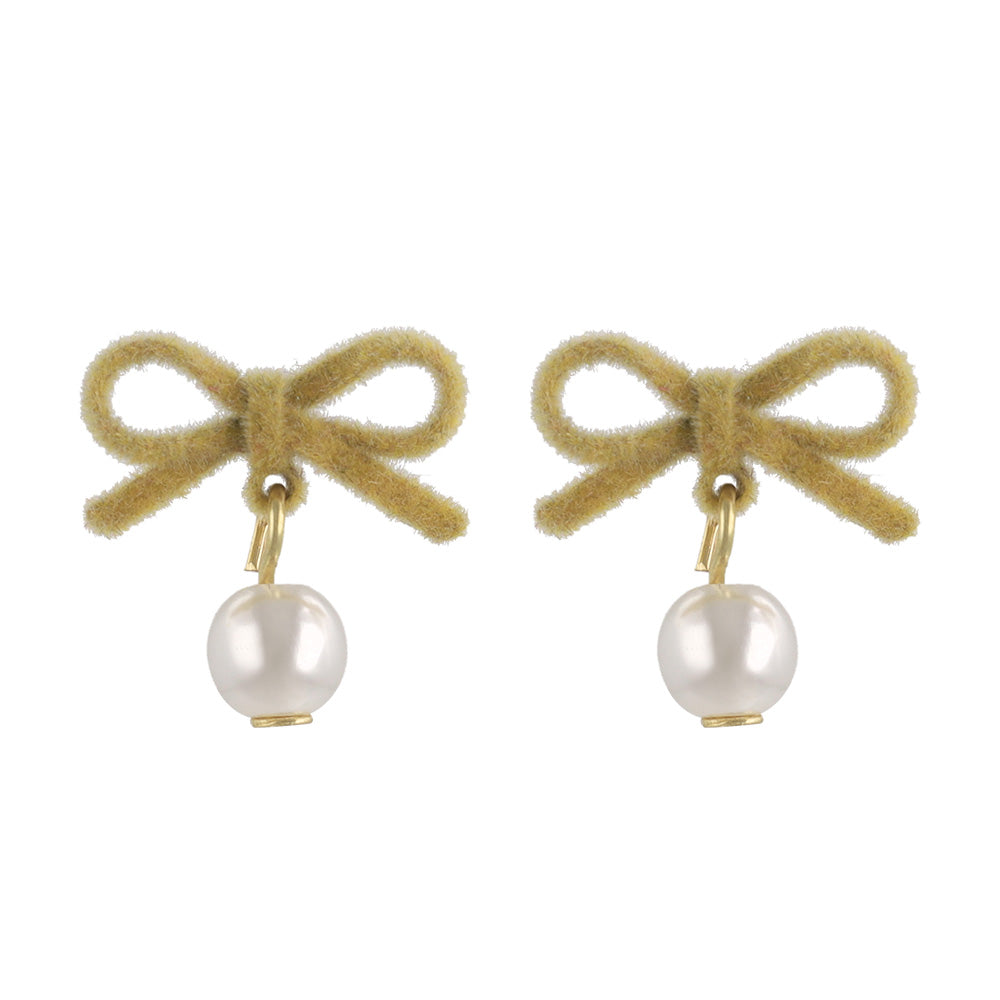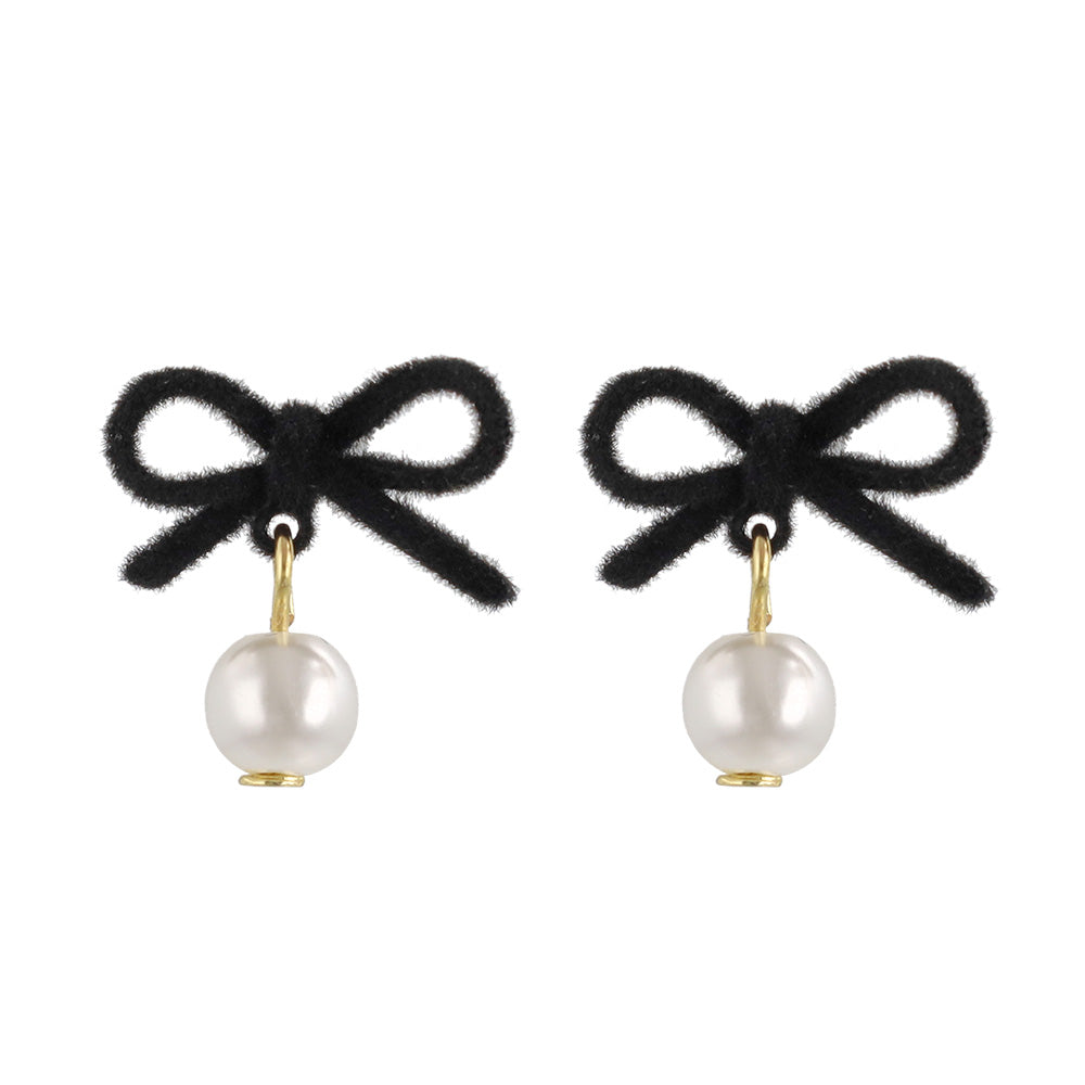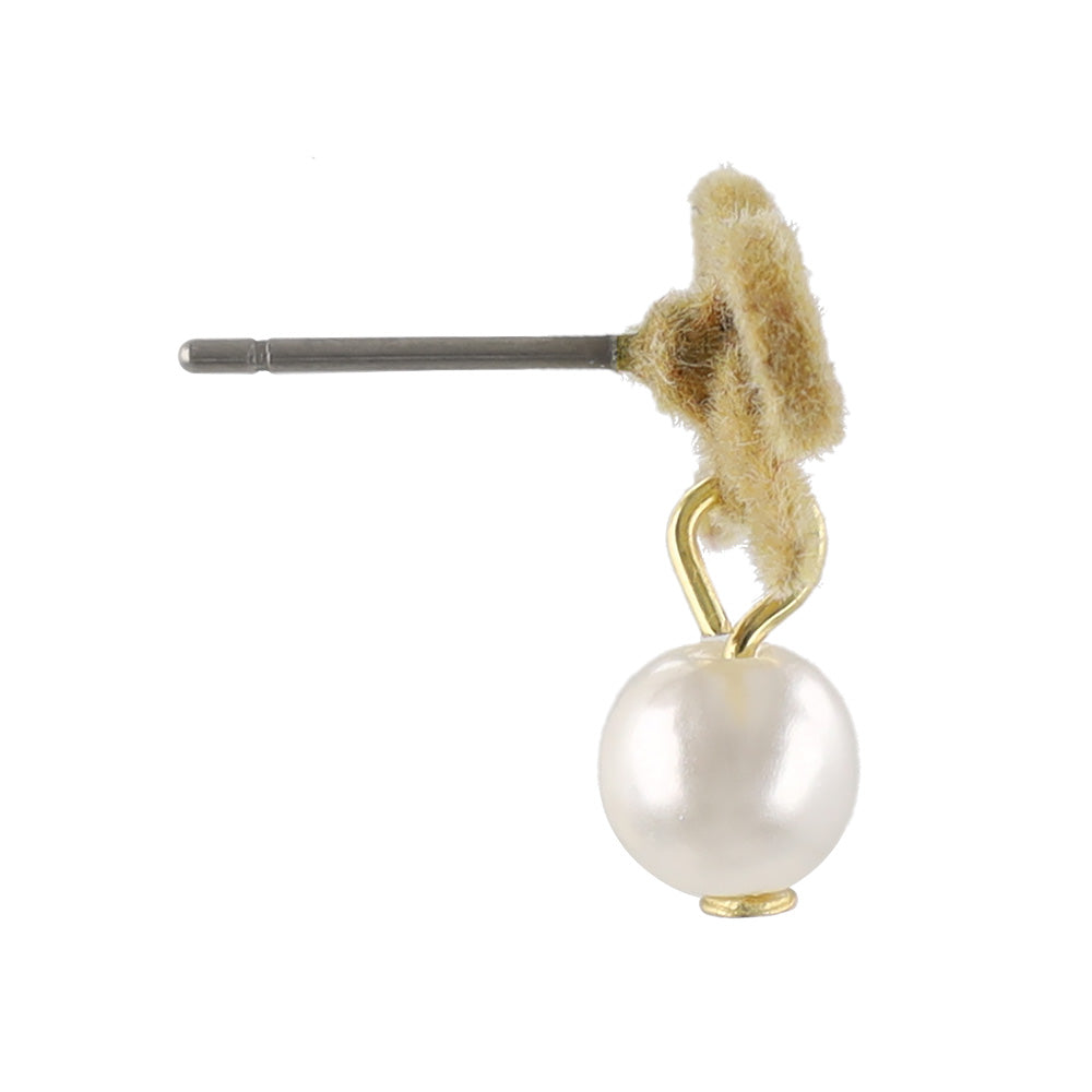 ピアス ニッケルフリー メタル フロッキー カラー リボン パール チタンポスト スタッドピアス