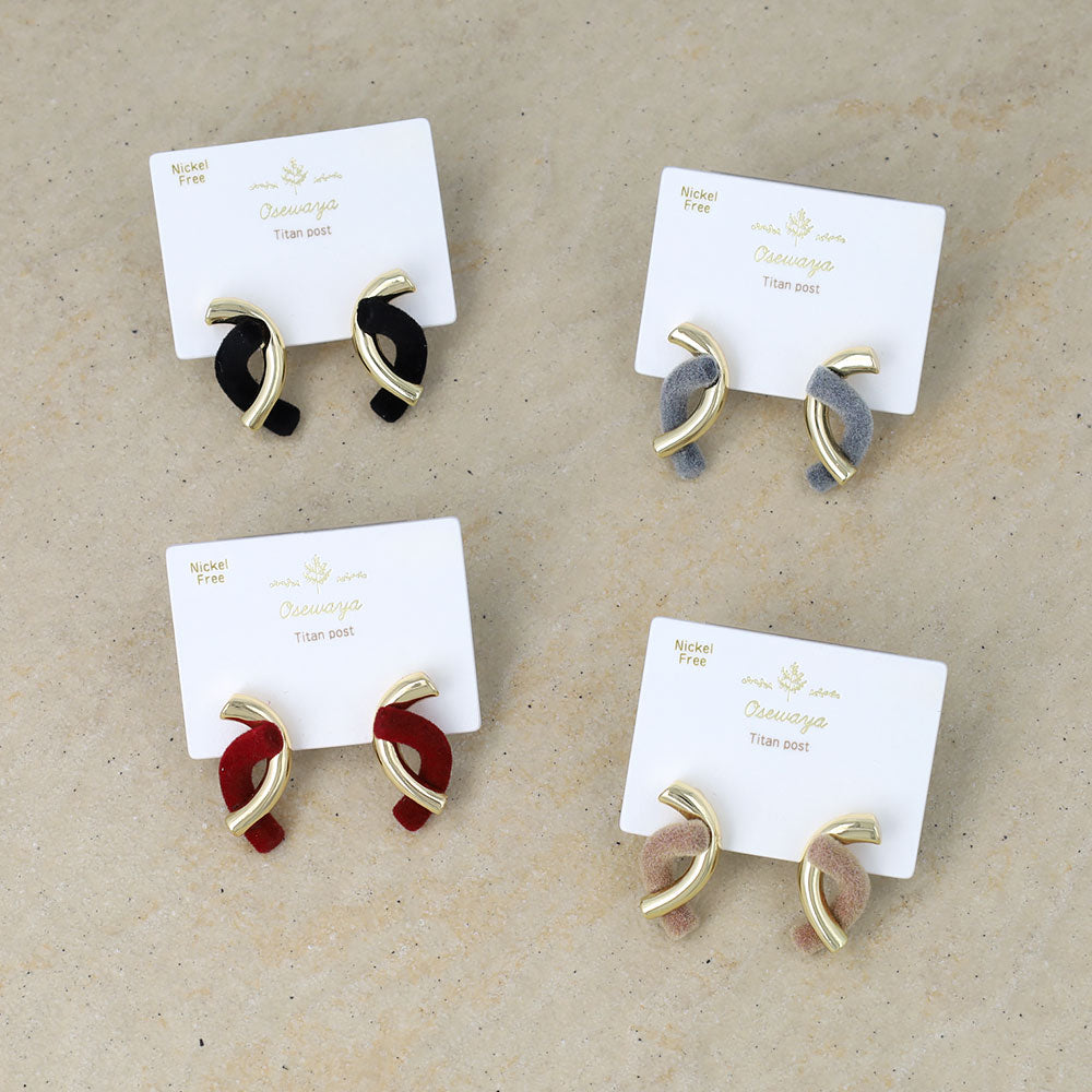 ピアス ニッケルフリー メタル フロッキー カラー カーブ ライン クロス チタンポスト スタッドピアス