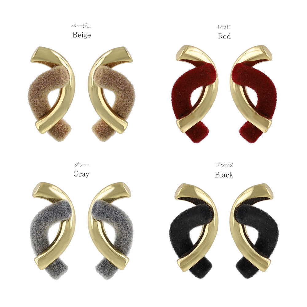pc2089季節感たっぷりなフロッキーxメタルの異素材MIXアイテム。色のワンポイントがコーデの質を上げる、きれいめピアス。ワンポイント使いで華やかさをUP◎