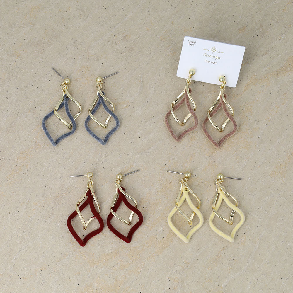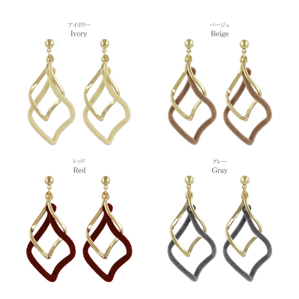 pc2090季節感たっぷりなフロッキーxメタルの異素材MIXアイテム。色のワンポイントがコーデの質を上げる、きれいめピアス。ワンポイント使いで華やかさをUP◎
