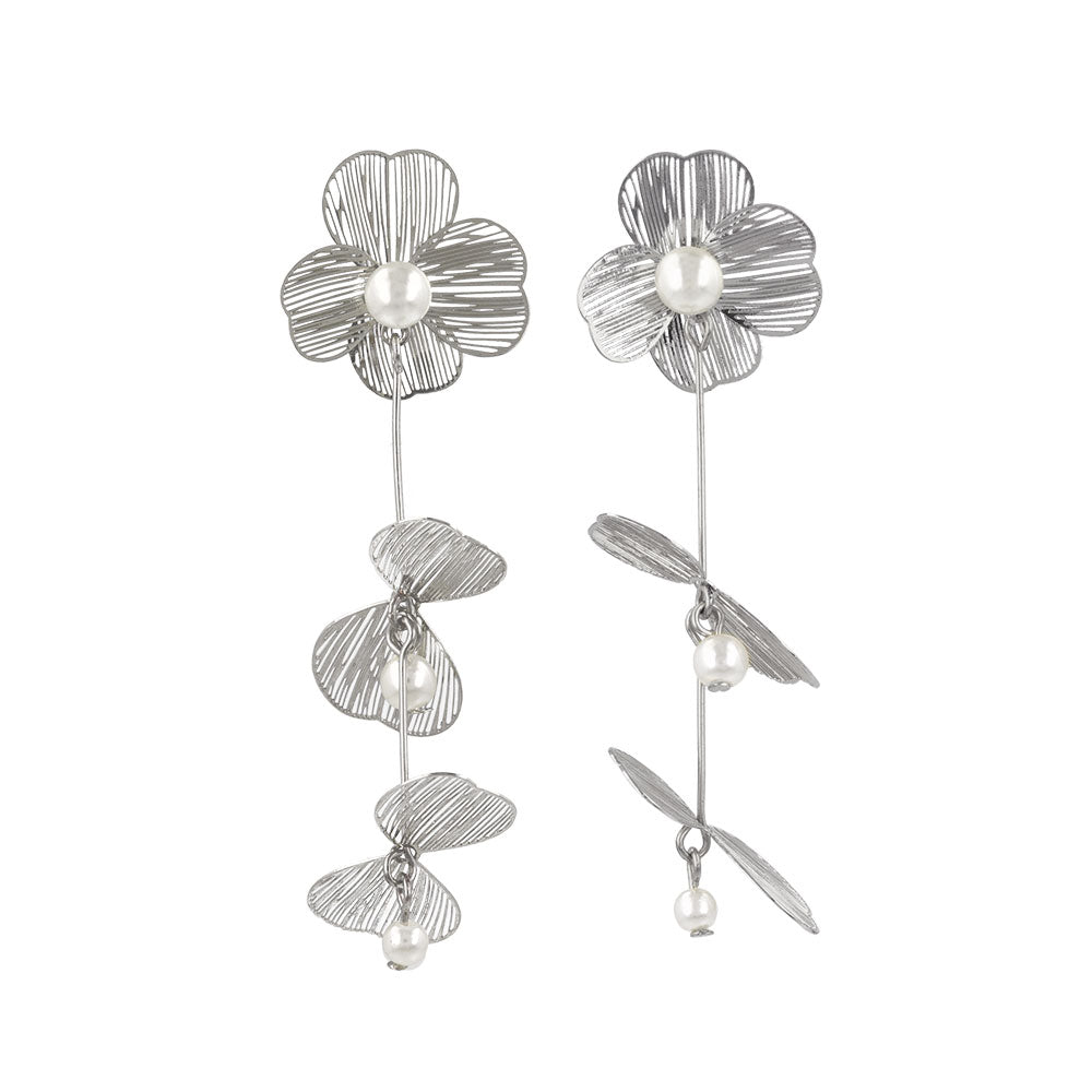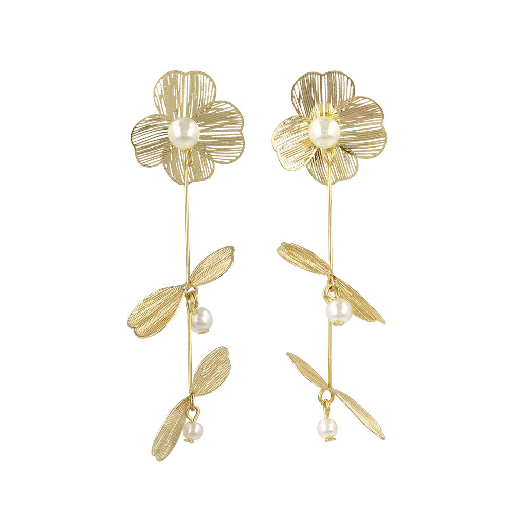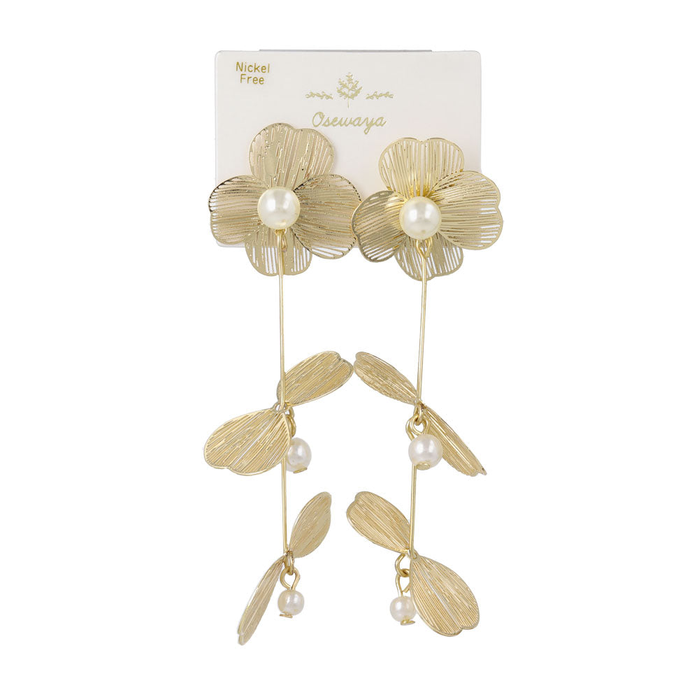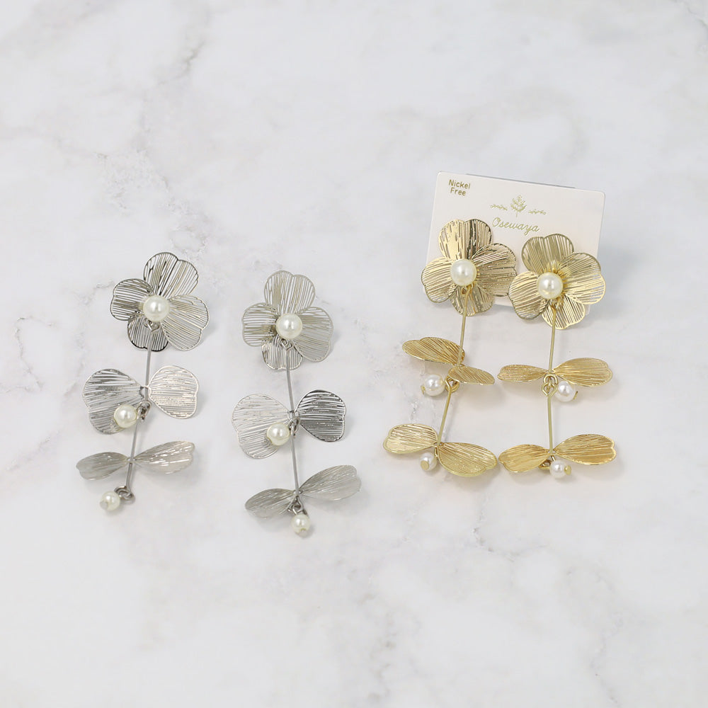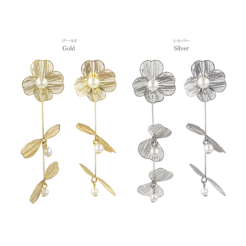 pc2093透かしメタルのフラワーモチーフピアス。長めデザインで耳元を華やかに。
