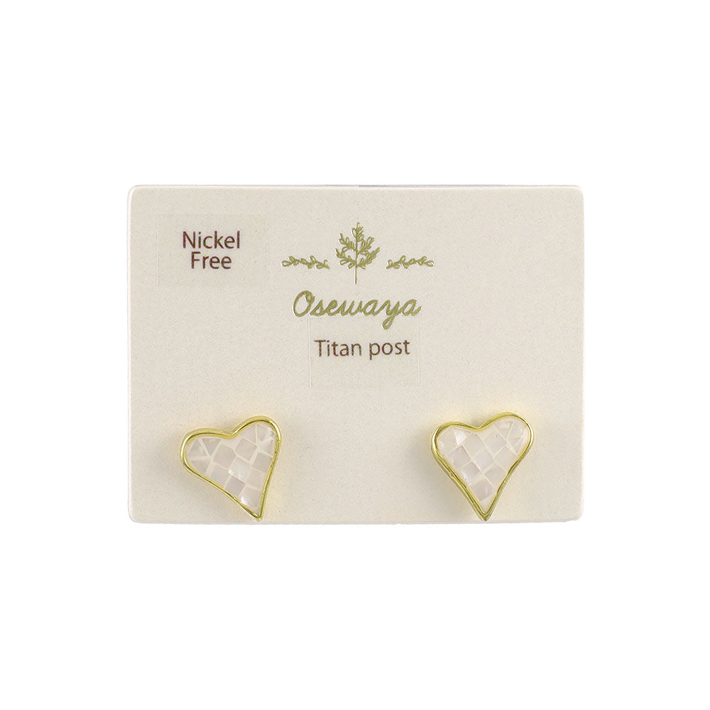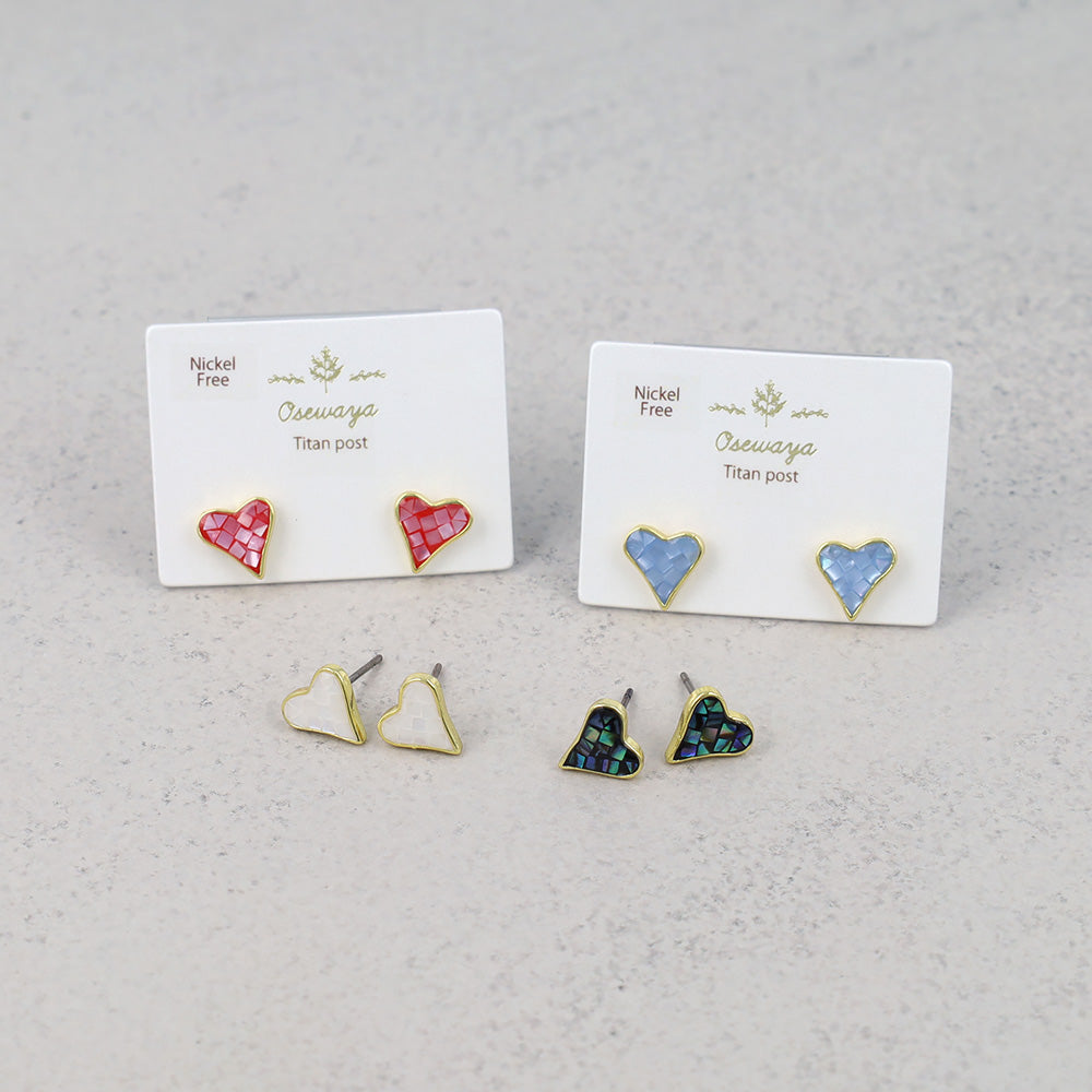 ピアス ニッケルフリー シェル メタル カラー ハート チタンポスト スタッドピアス