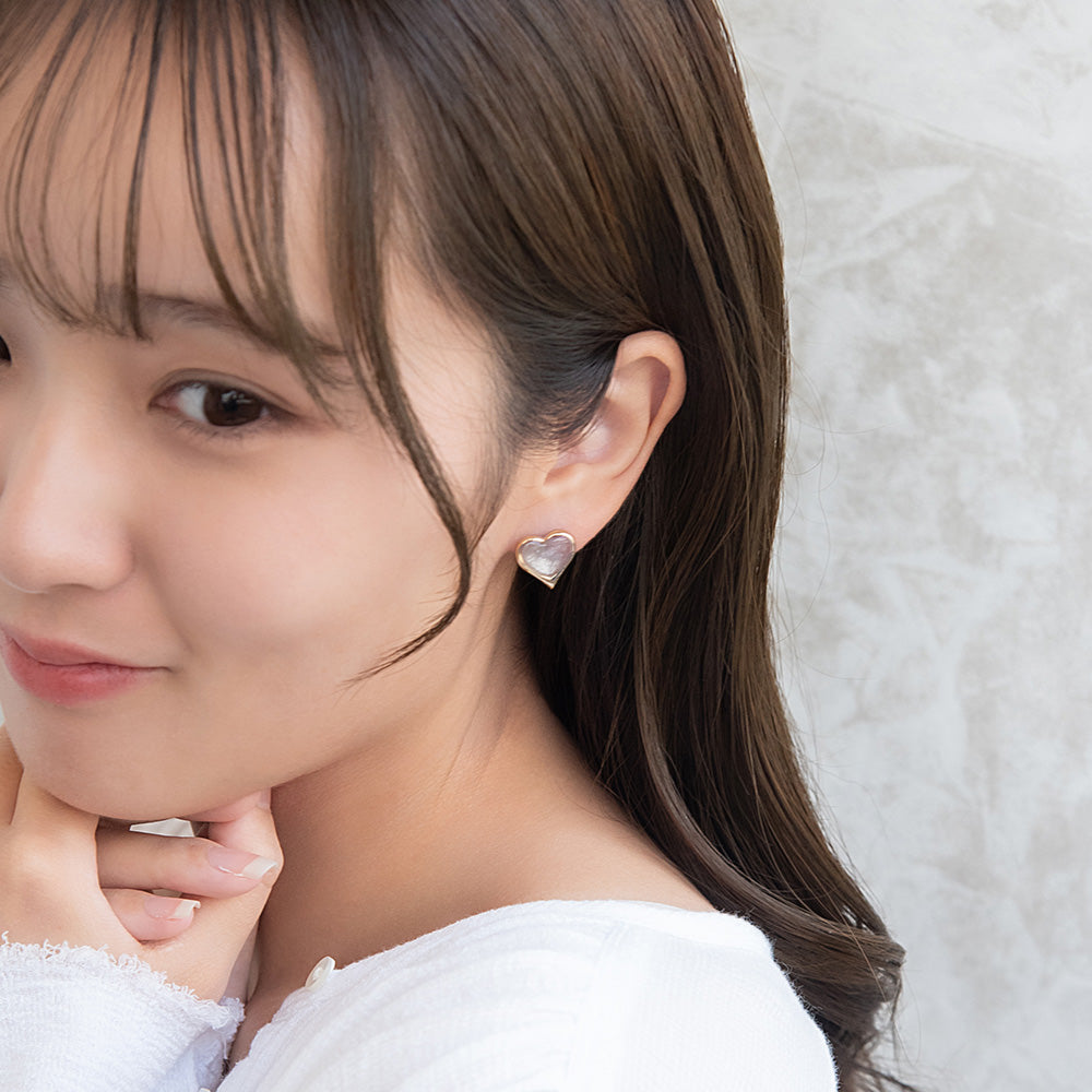 ピアス ニッケルフリー メタルフレーム ラメ くすみカラー ハート チタンポスト スタッドピアス