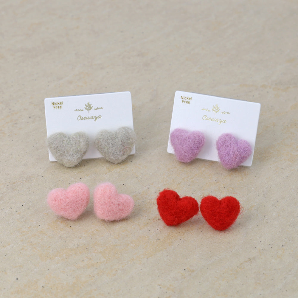 ピアス ニッケルフリー ウール ハート チタンポスト スタッドピアス
