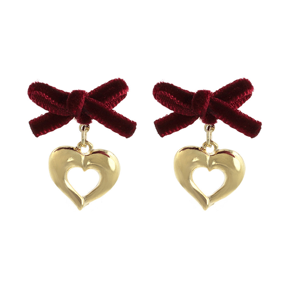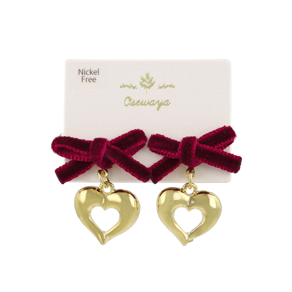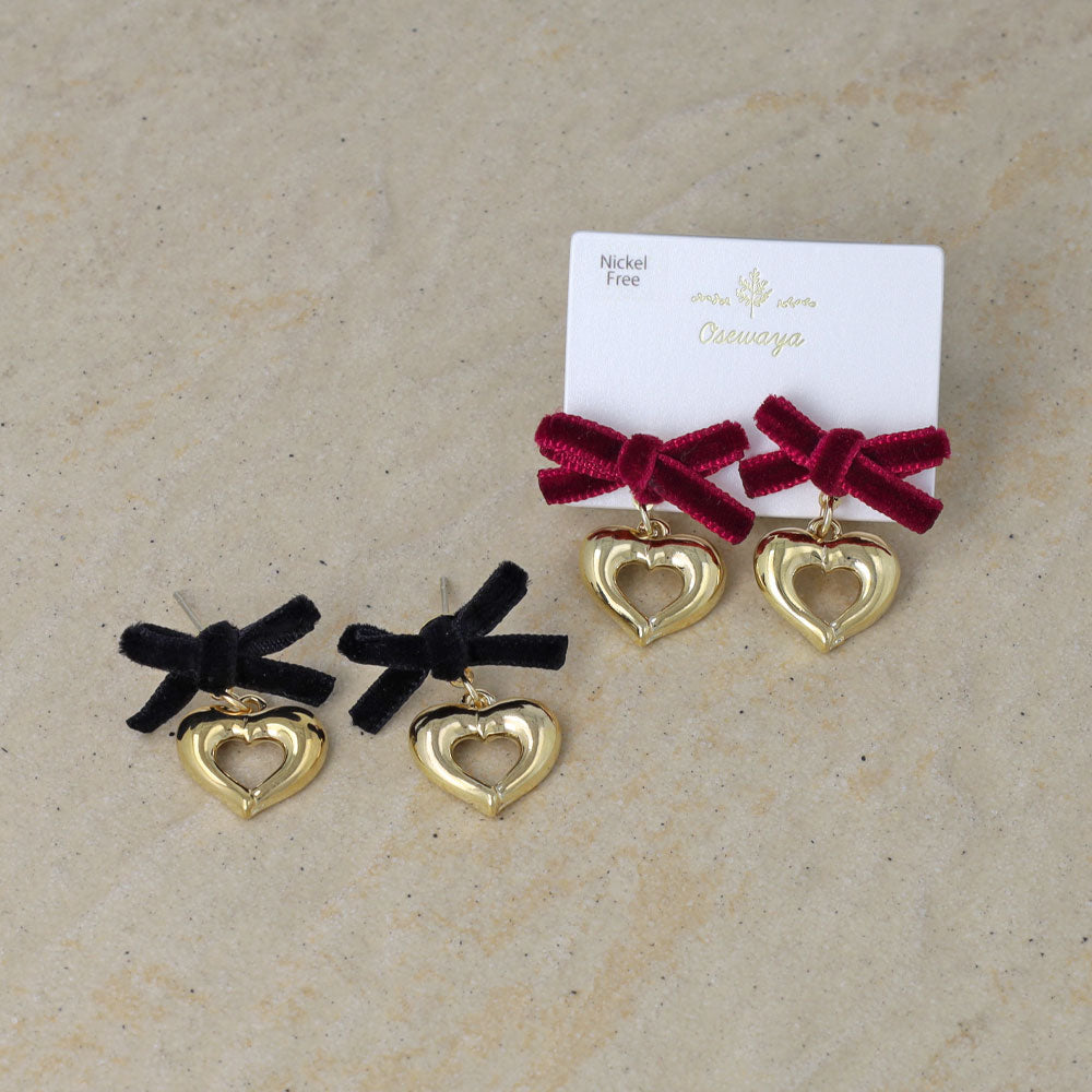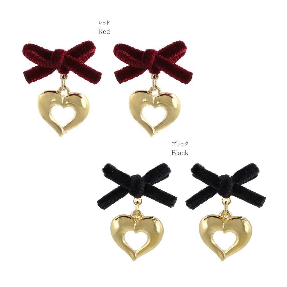 pc2110シーズンムードを高めてくれるベロアリボン×ハートのピアス。