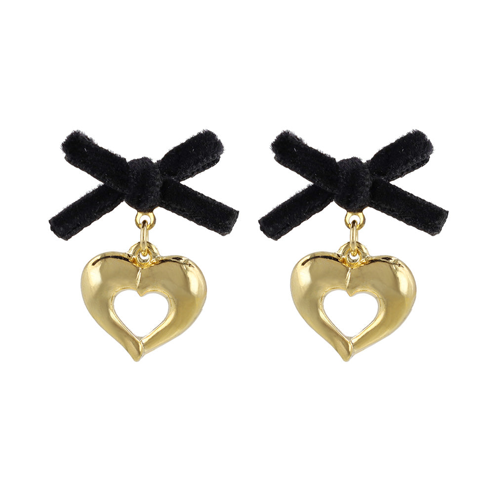 ピアス ニッケルフリー リボン ハート ベロア ステンレスポスト スタッドピアス