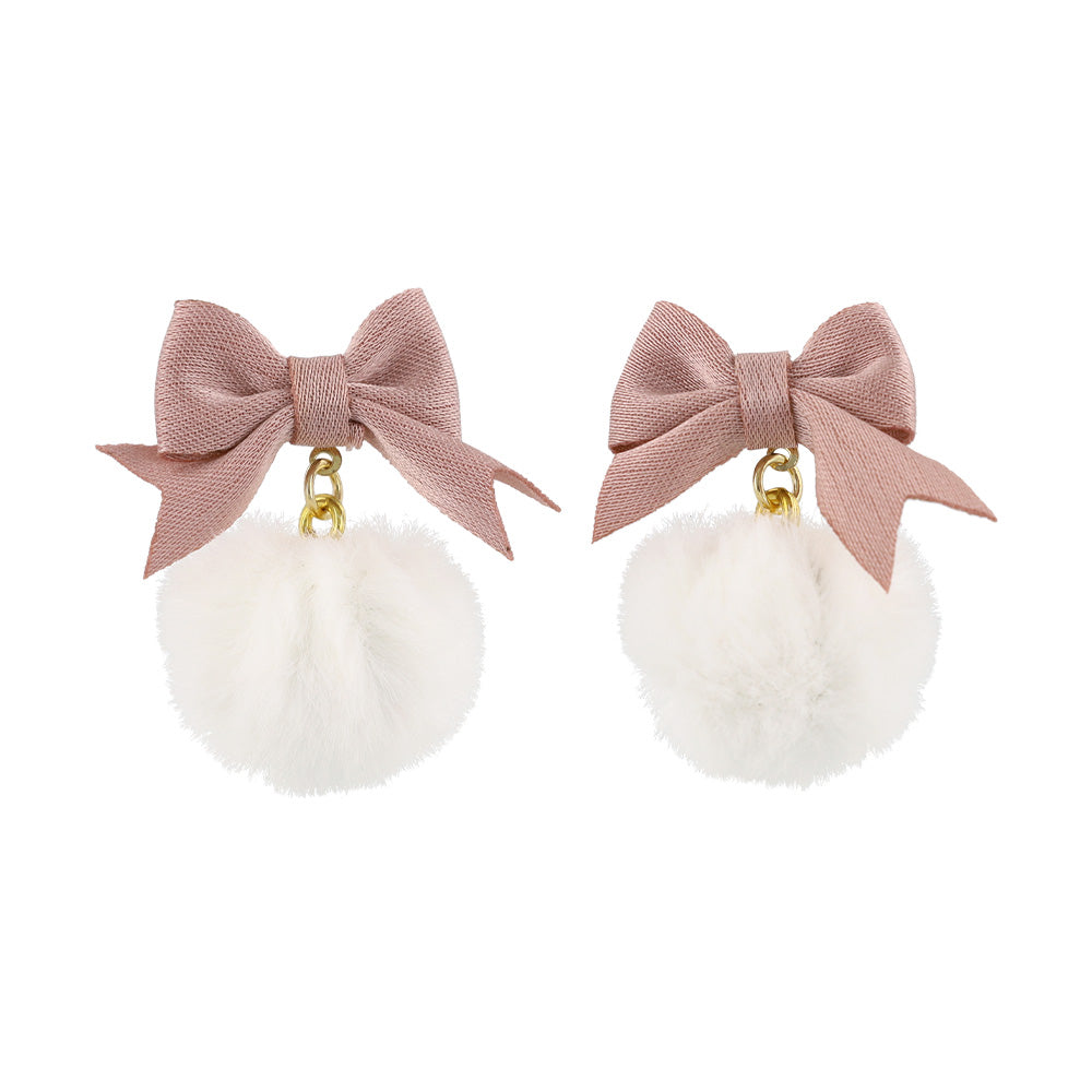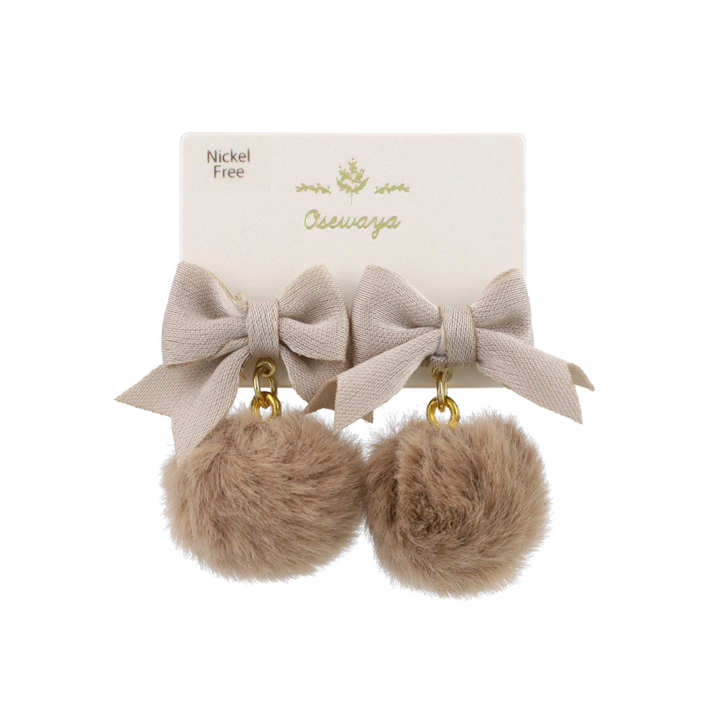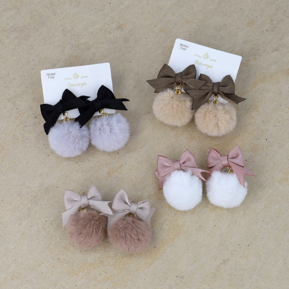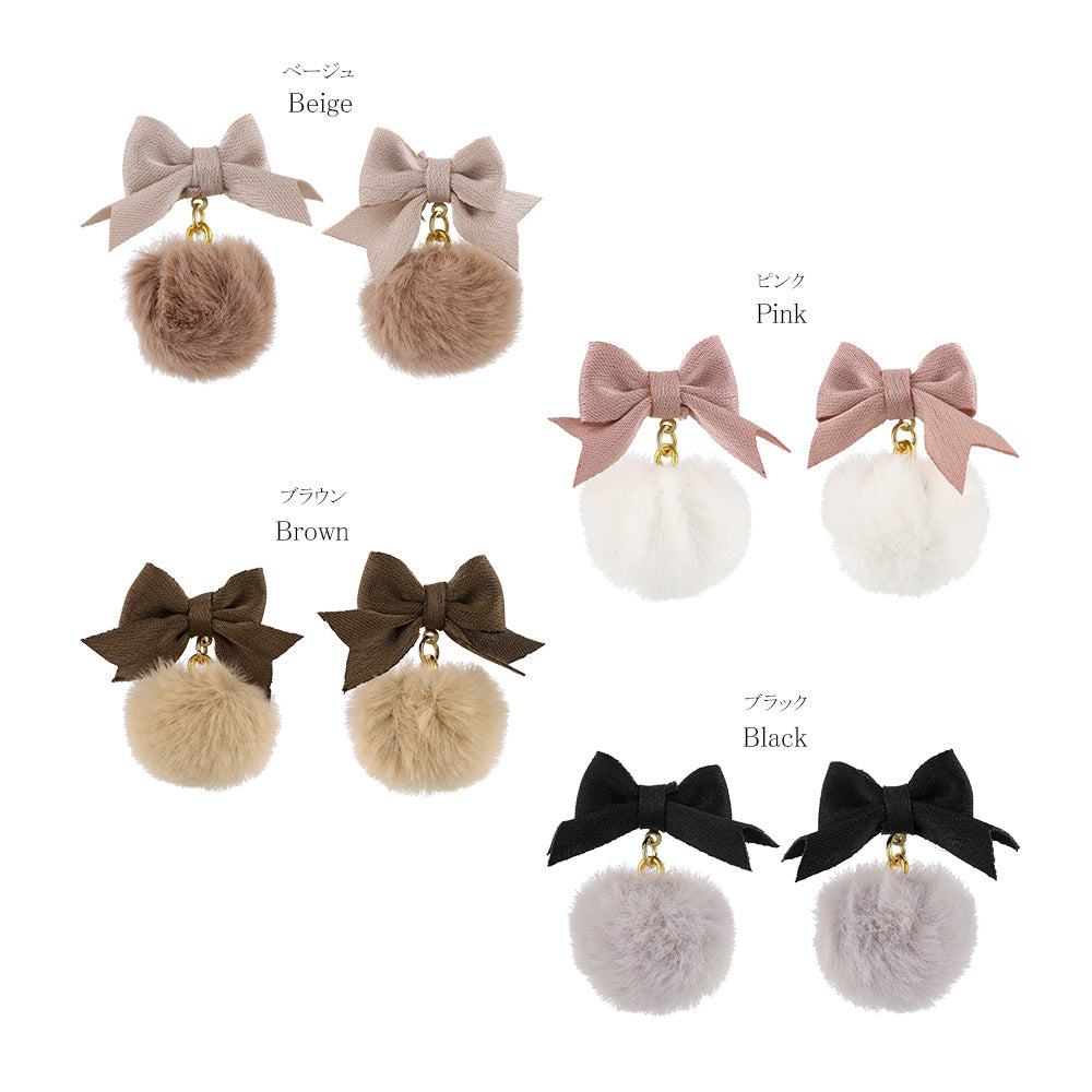 pc2111シーズンムードを高めてくれるファーポンポンのピアス。可愛いリボン付き。