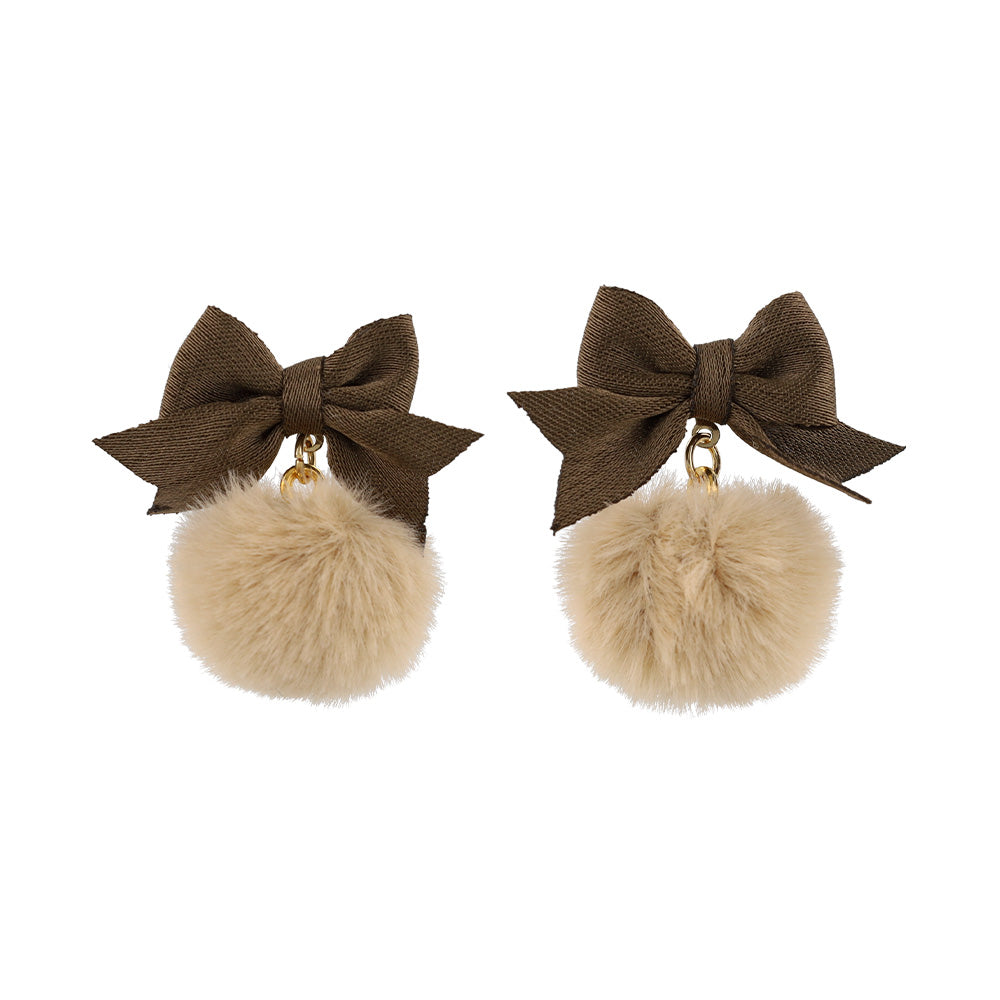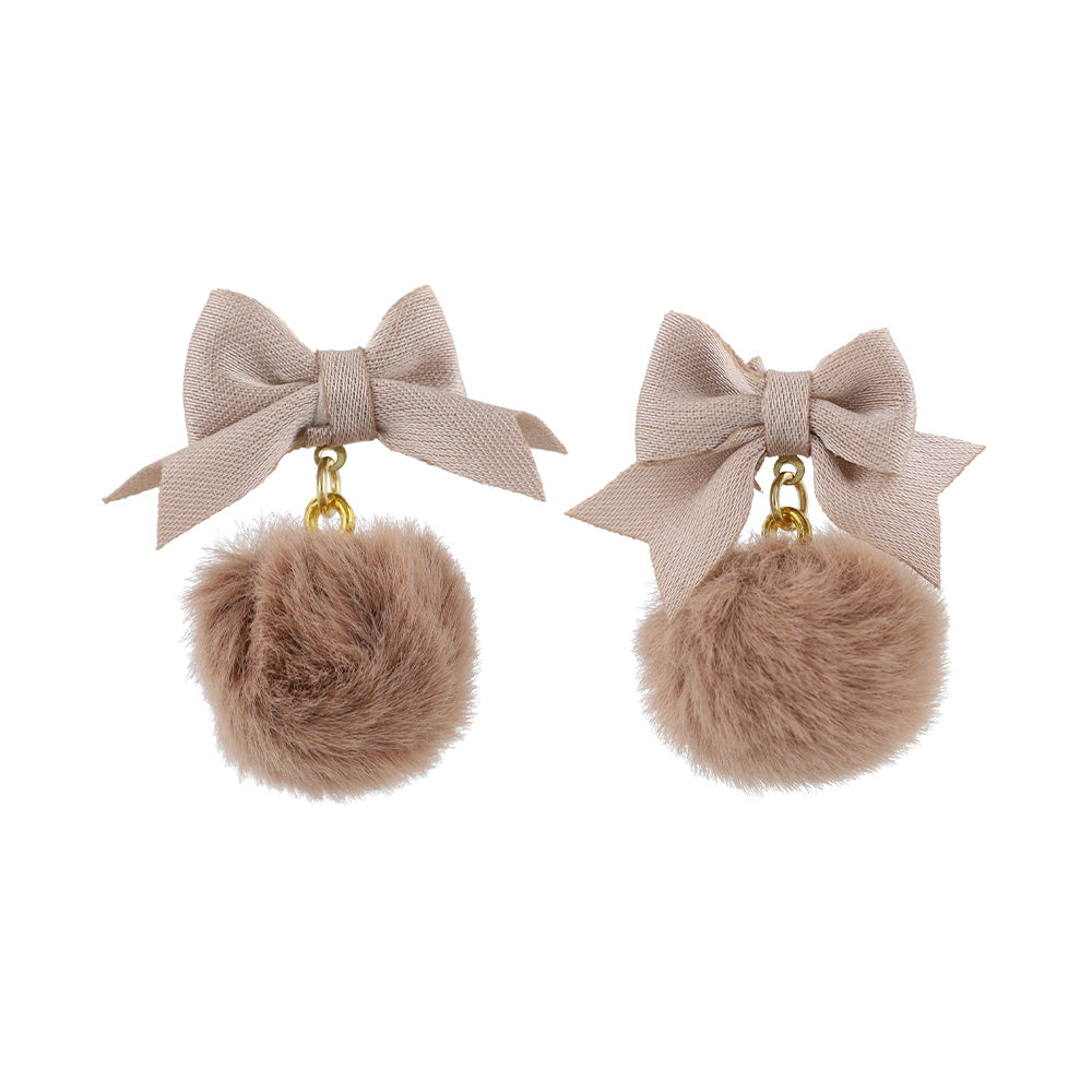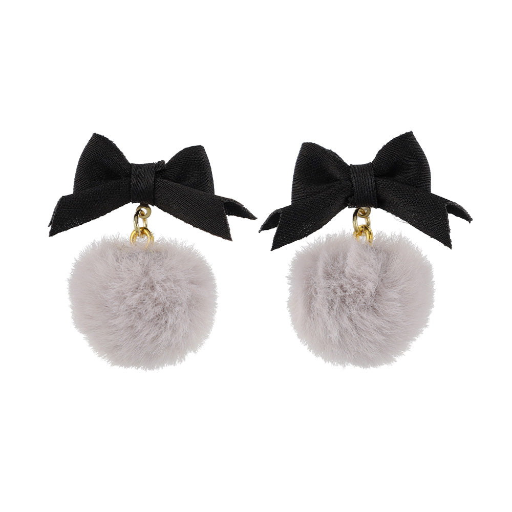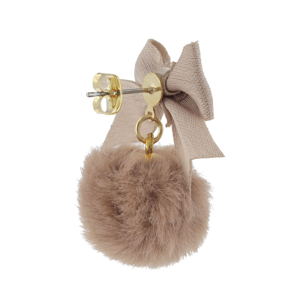 pc2111シーズンムードを高めてくれるファーポンポンのピアス。可愛いリボン付き。