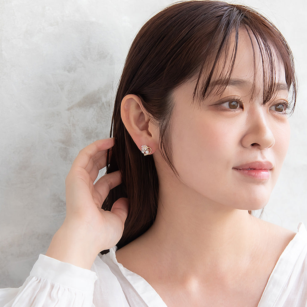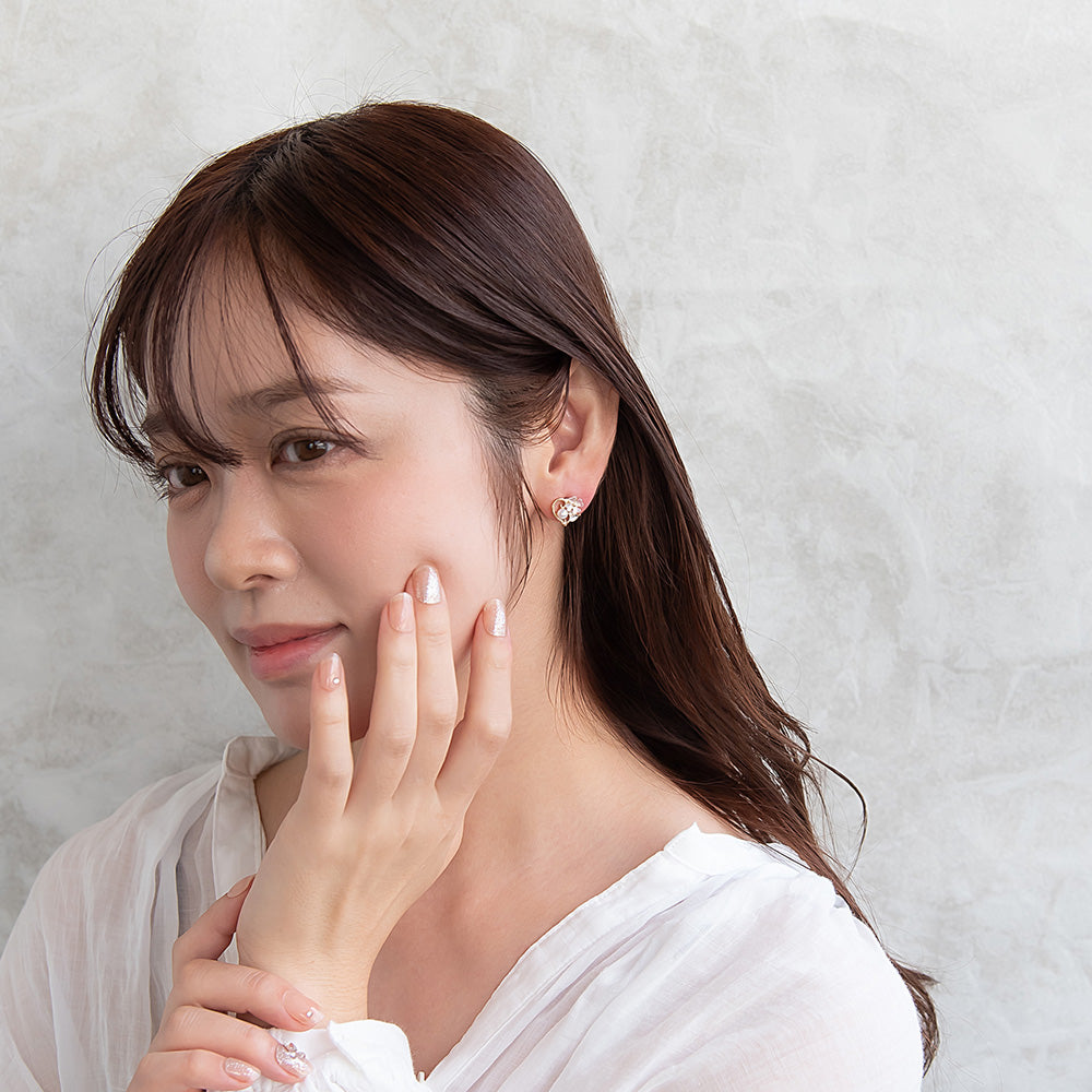 pc2115定番のハートデザインのピアス。肌馴染みの良い淡いカラーリングに程よいサイズ感が◎