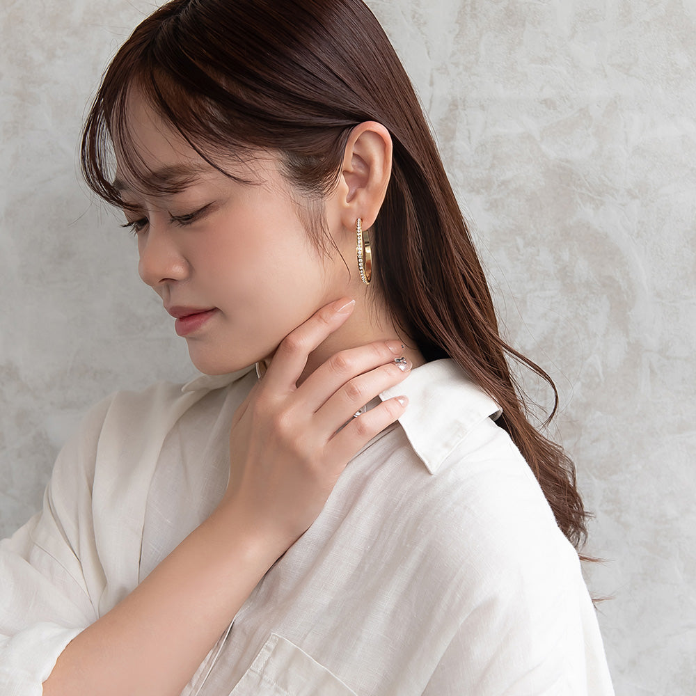 pc2117キュービックジルコニアラインのステンレスピアス。様々なコーディネートに合わせやすいシンプルなデザインです。