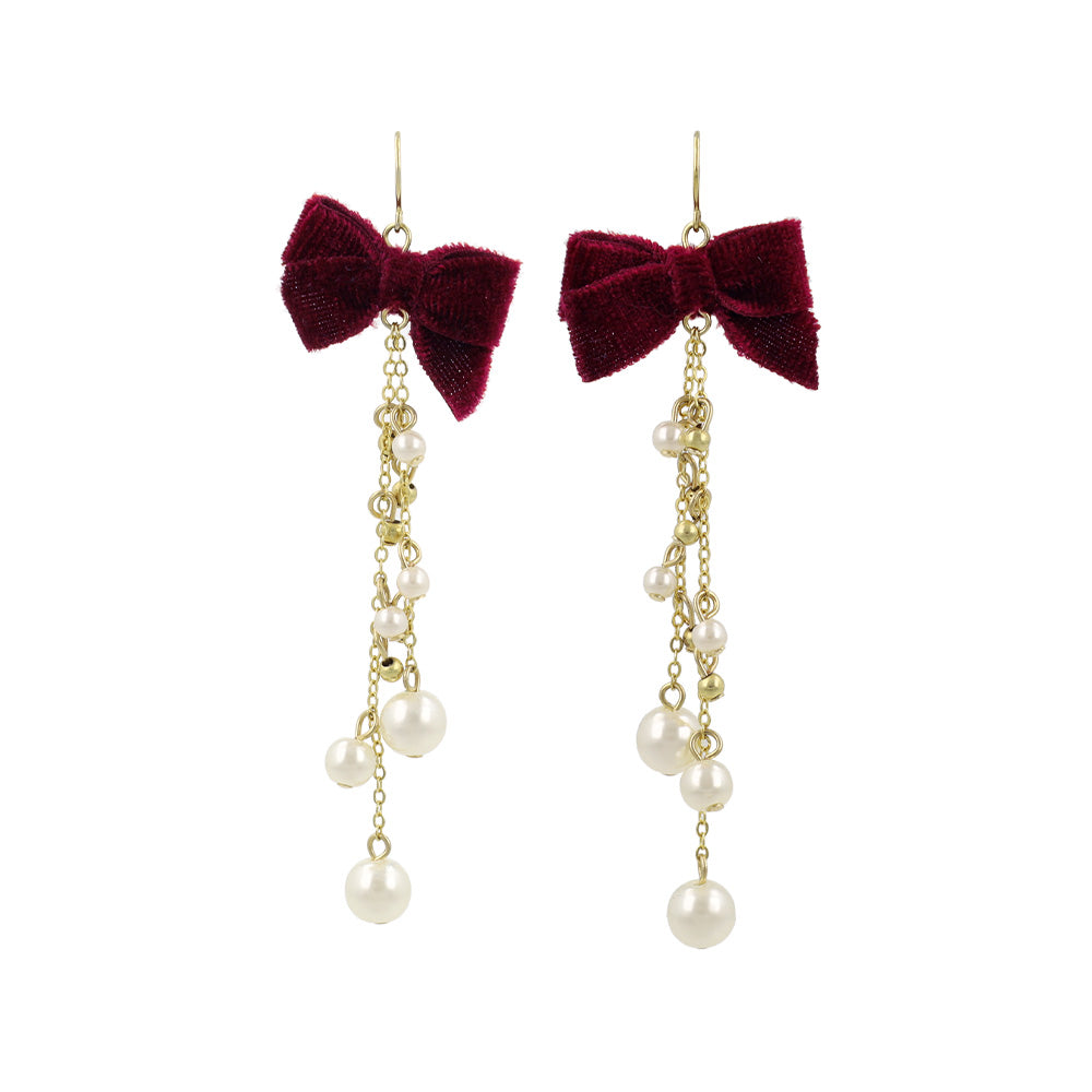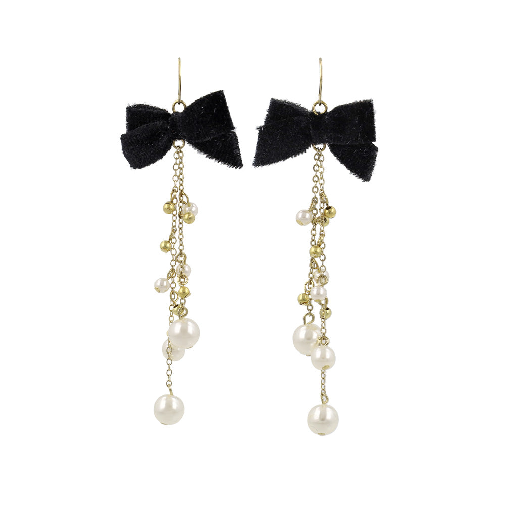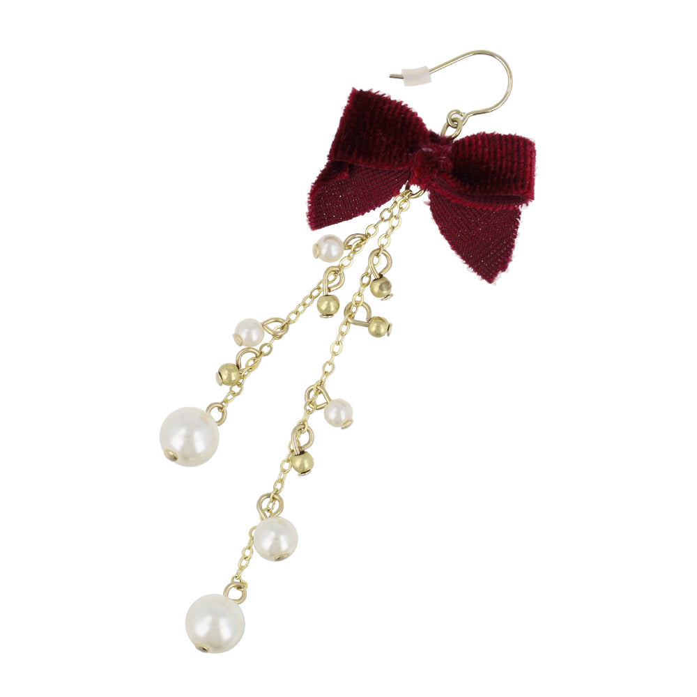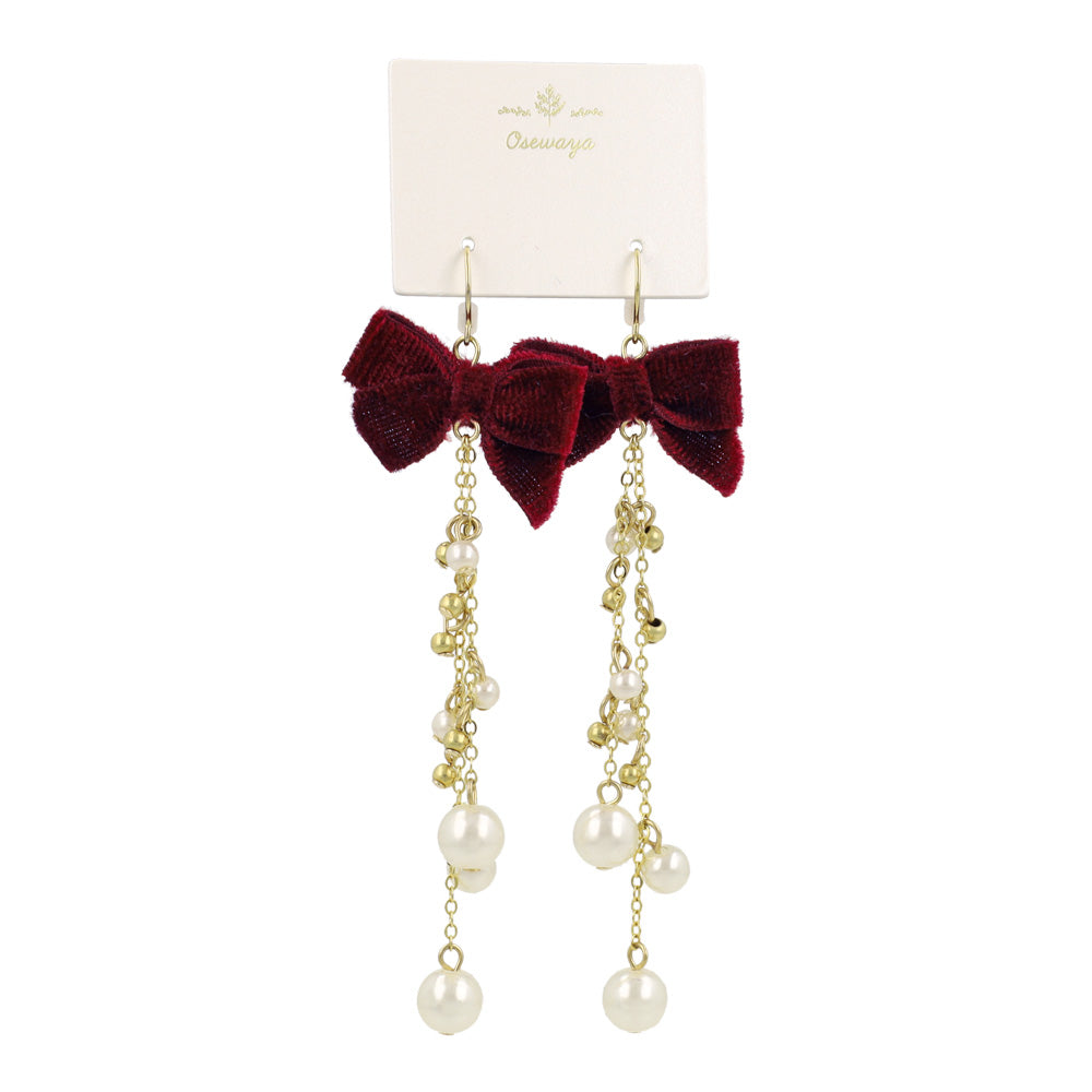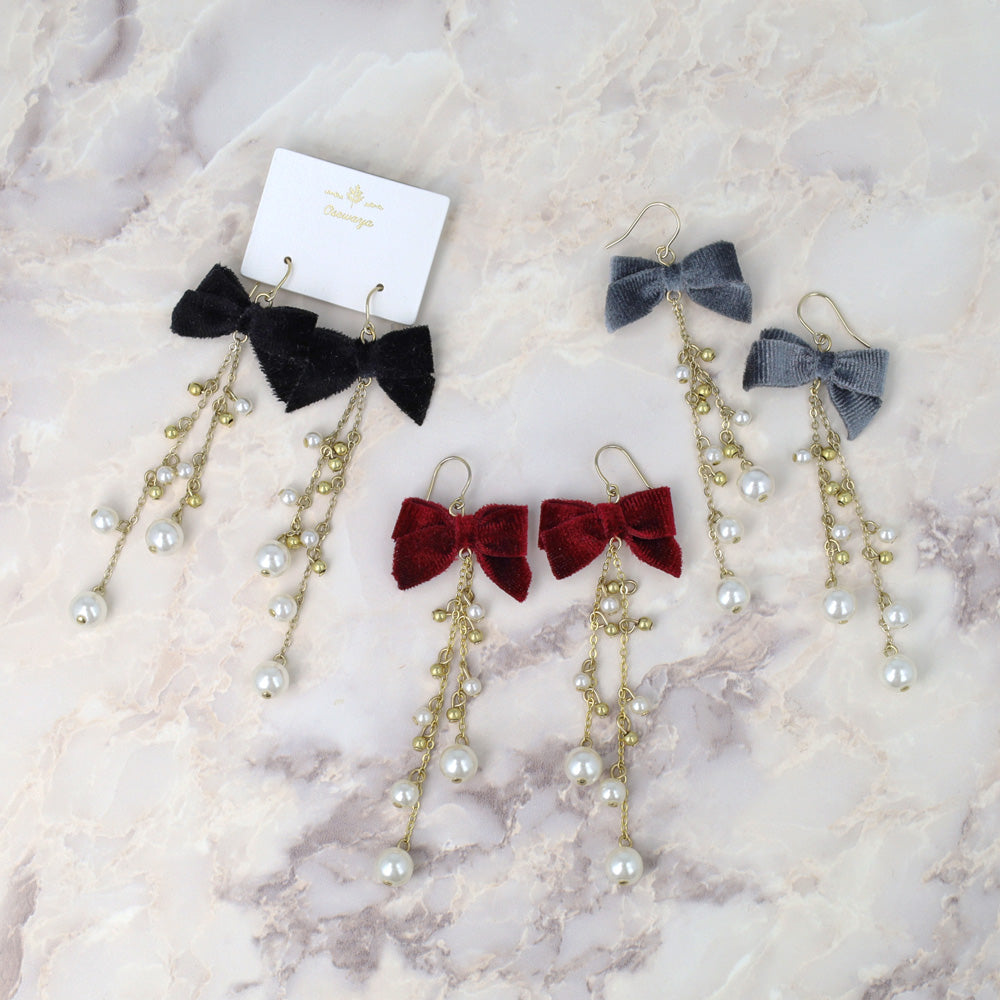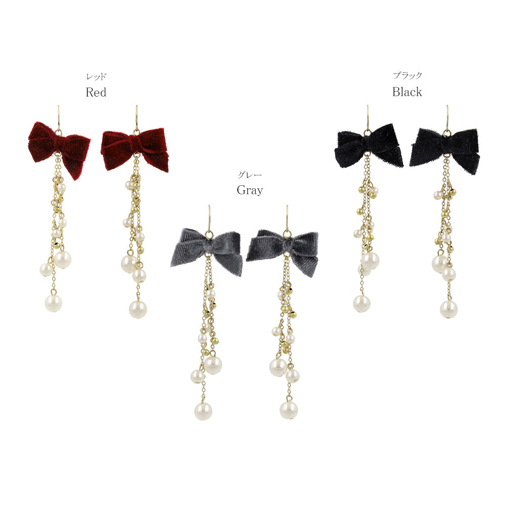 pc2121コーデを彩るアクセサリー。とことん甘~く、かわいい、洒落たバランス感のゆれるロングピアス。上品な光沢のベロアリボンでトレンド感のある華やかさをプラス。プラスワンで可愛さもおしゃれ度もアップ。イベントや推し活コーデに◎クリスマスやパーティーシーンにも◎