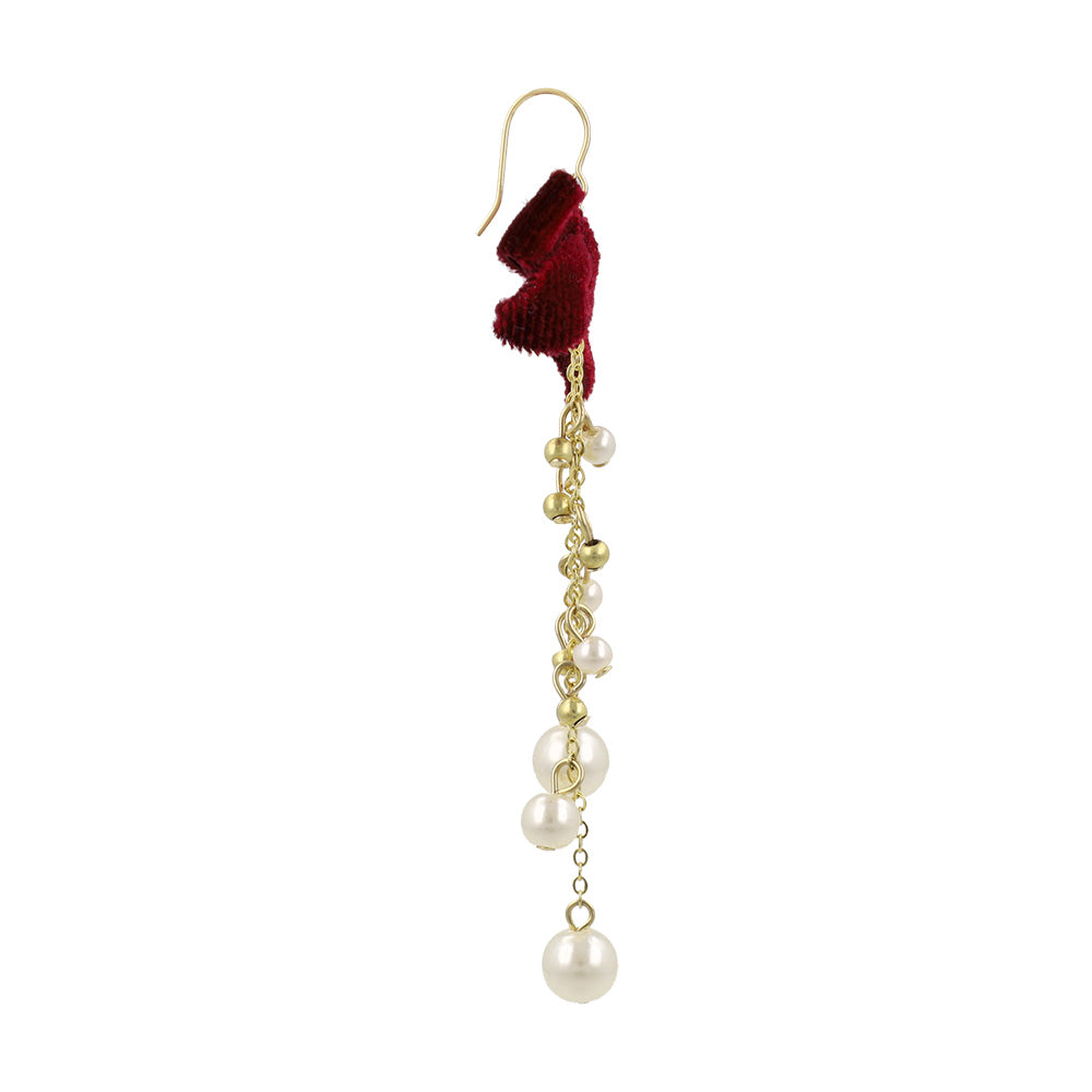 ピアス ベロア リボン パール メタルビーズ ロング チェーン サージカルステンレスポスト フックピアス
