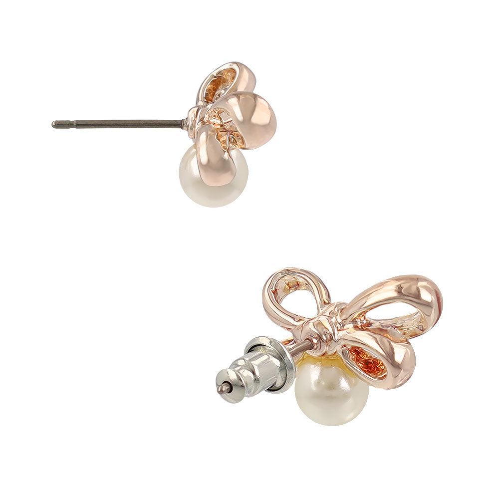 ピアス ニッケルフリー ロゼシルバー リボン チタンポスト スタッドピアス