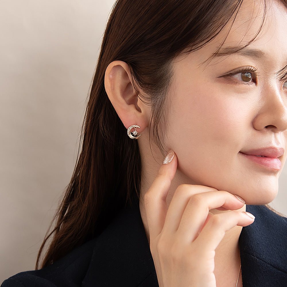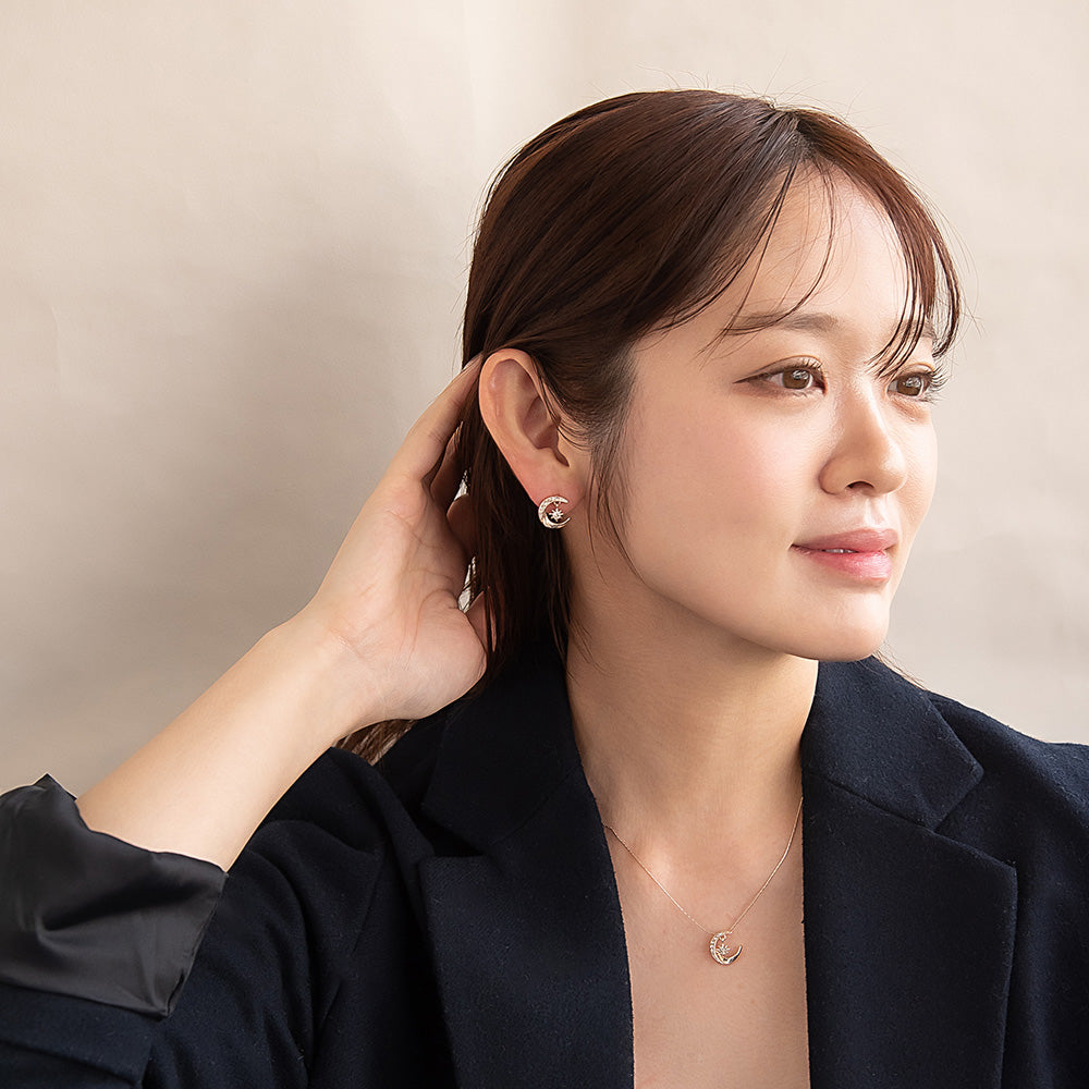 ピアス ニッケルフリー ロゼシルバー ムーン チタンポスト スタッドピアス