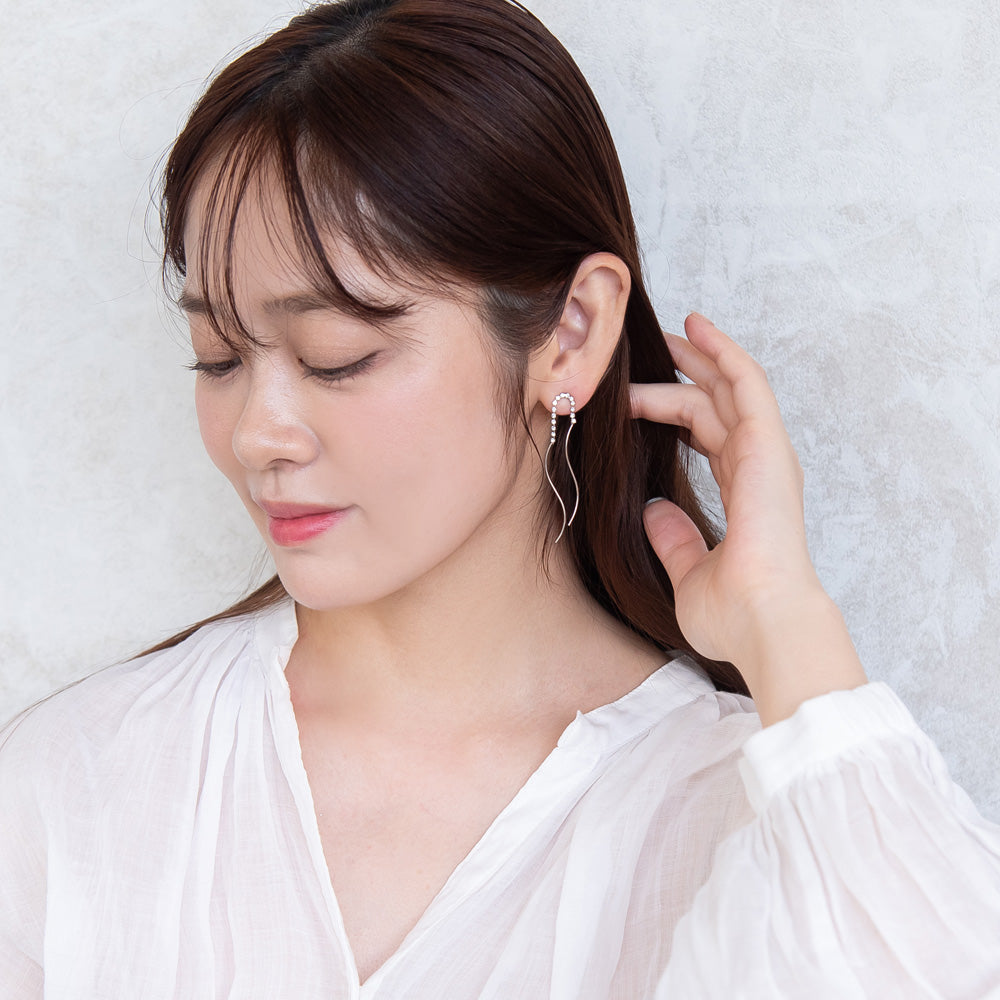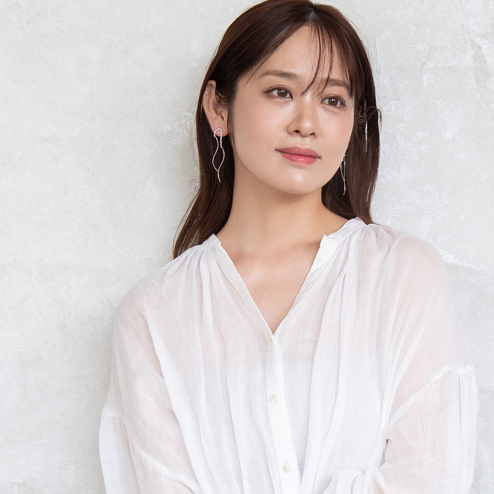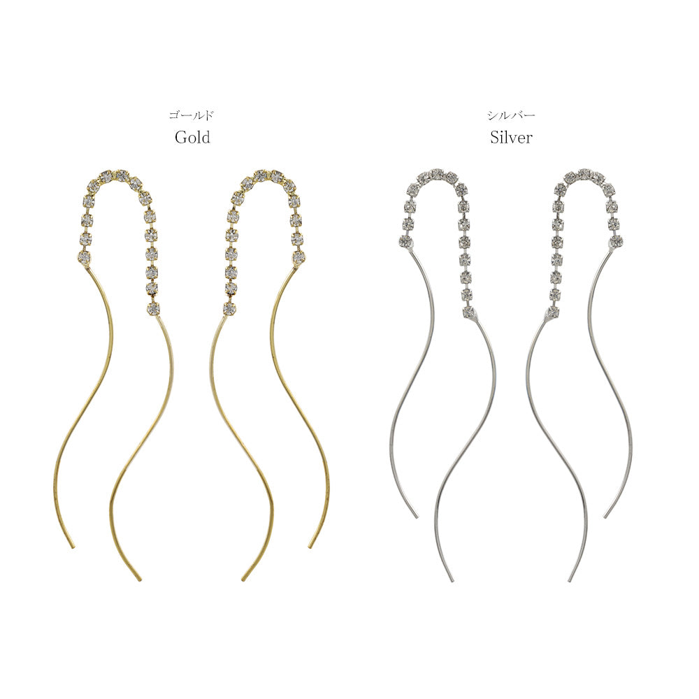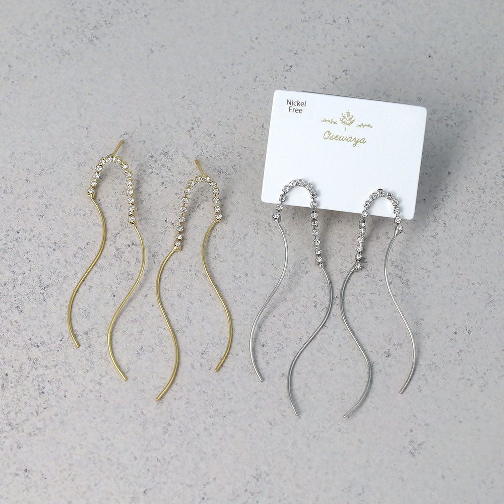 ピアス ニッケルフリー メタル ダブル ウェーブライン ストーン スタッドピアス