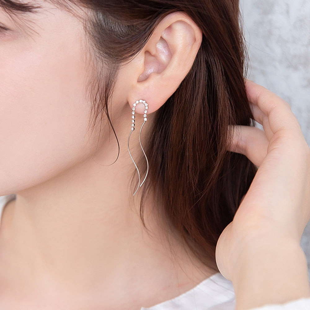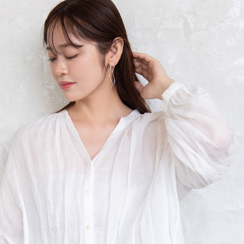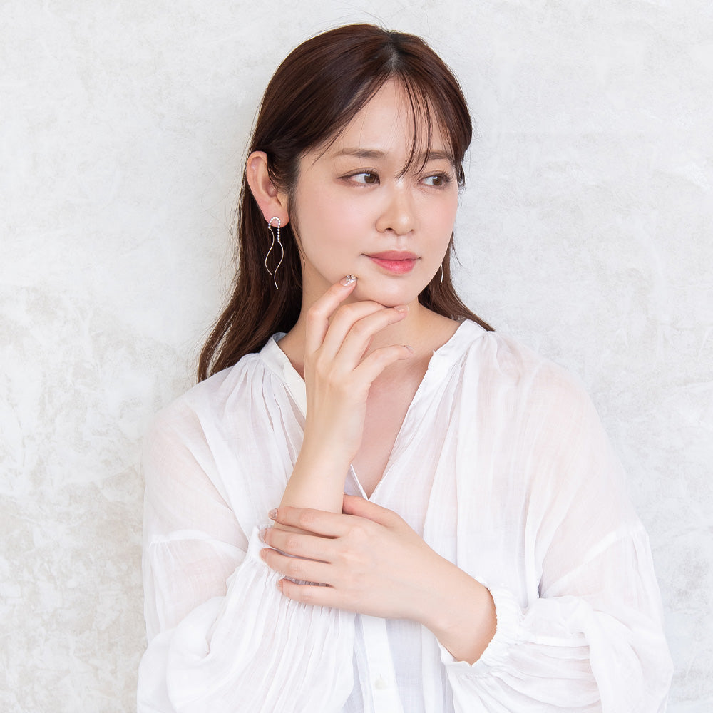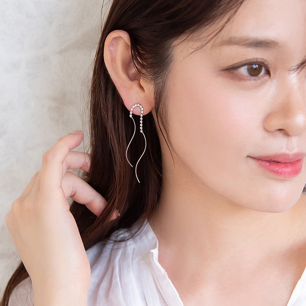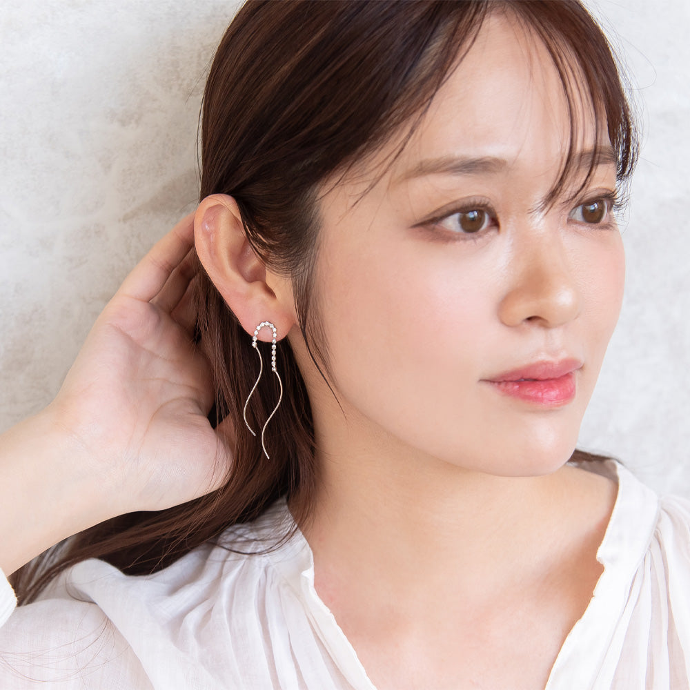 ピアス ニッケルフリー メタル ダブル ウェーブライン ストーン スタッドピアス