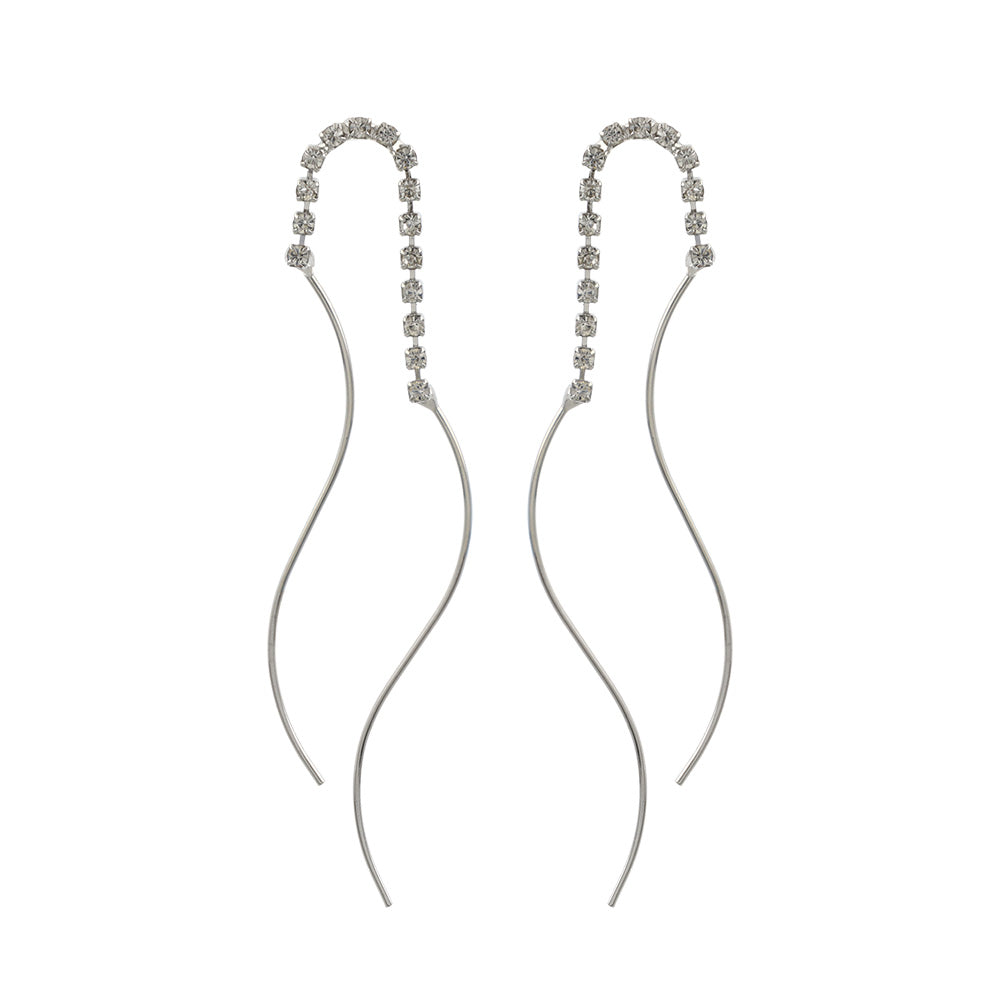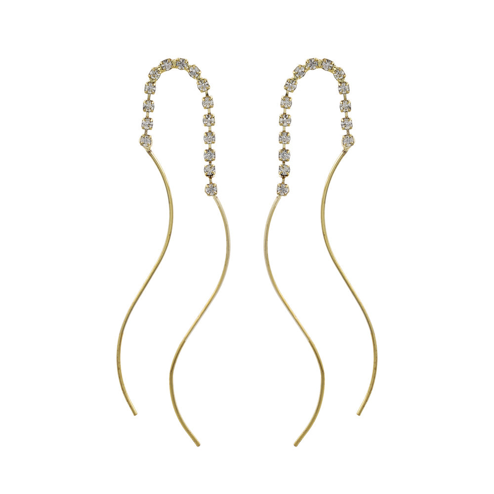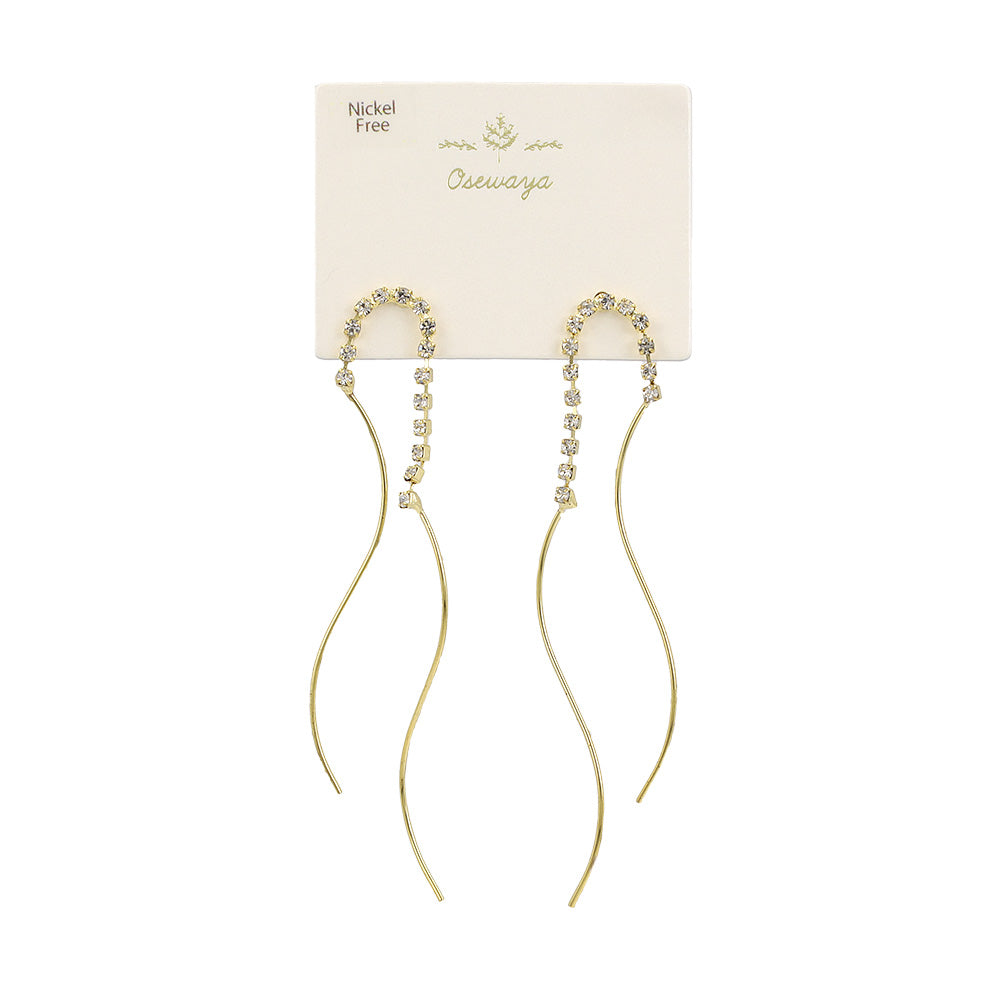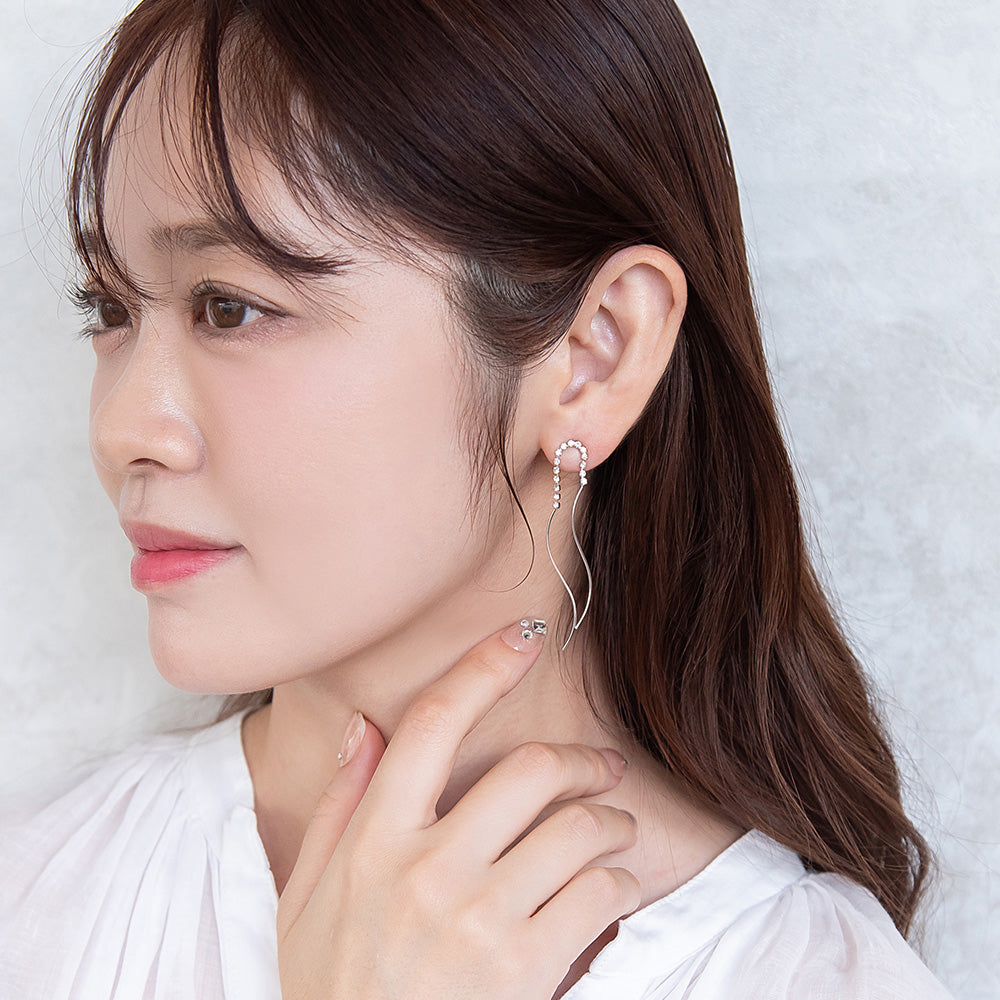 ピアス ニッケルフリー メタル ダブル ウェーブライン ストーン スタッドピアス